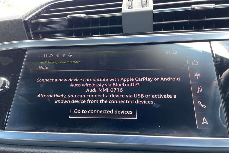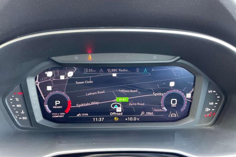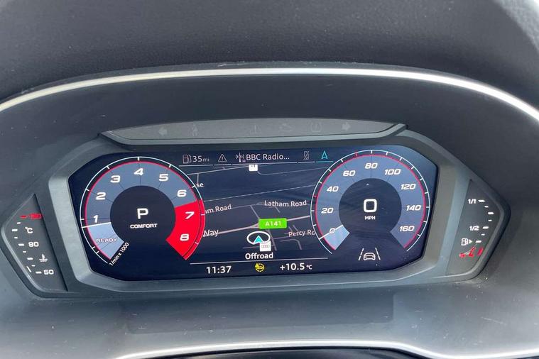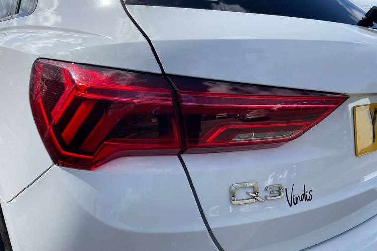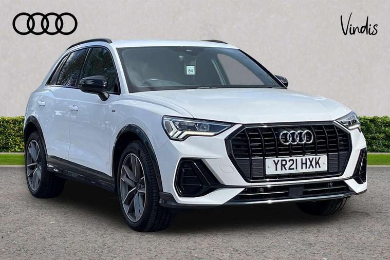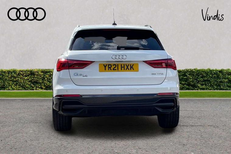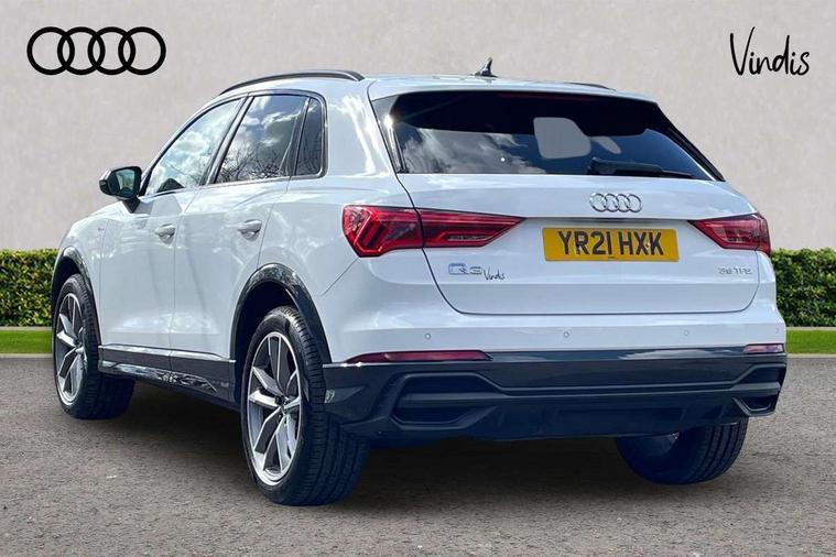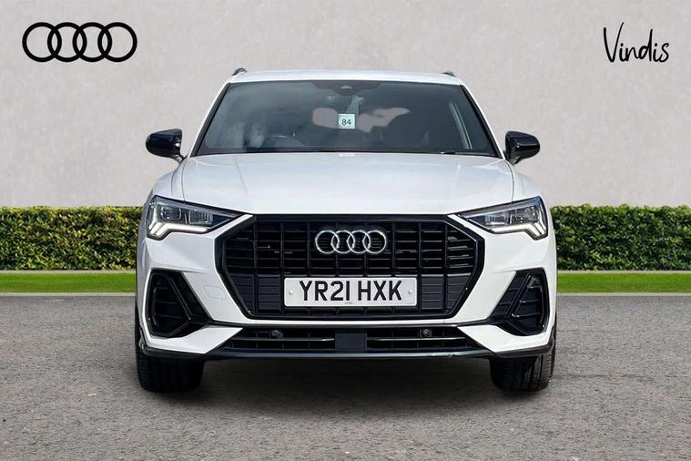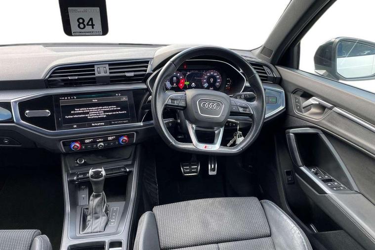 Audi connect safety and service (e-call), Audi drive select, Audi lane departure warning, Audi Virtual Cockpit - 10.25" display, Bluetooth interface, Camera based traffic sign recognition, MMI Navigation Plus with high resolution 10.1 inch touchscreen colour display, Power operated tailgate, Progressive steering, Service interval indicator, Smartphone interface includes wireless Apple carplay/Android Auto, Start stop system with recuperation, Voice control system with natural language interaction, 48V Mild hybrid technology, Sports suspension, 2 USB-C ports with charge and data functions, 6 passive loudspeakers, DAB digital radio module, Acoustic windscreen, Auto dimming frameless rear view mirror, Black roof rails, Electrically folding, adjustable and heated door mirrors with integrated LED side indicators and kerb view function for passenger side, Front and rear electric windows, Front fog lights, High gloss black finish B and C pillars, LED headlights with LED daytime running lights and dynamic rear indicator, LED rear lights, Privacy glass dark tinted rear and rear-side windows (from B-pillar backwards), Rain and light sensors, Rear diffuser strip in matt titanium black, S line bumpers in contrasting Manhattan grey, 12V socket in rear centre console, 40:20:40 folding with manual adjustment for 60:40 forwards/backwards position and backrest angle, Adjustable rear seat bench/backrest with centre armrest and cupholder, Black cloth headlining, Dual zone electronic climate control, Front and rear black floor mats with contrast stitching in rock grey, Front and rear headrests, Front and rear roof module including reading lights, Front centre armrest, Glove compartment lighting, Height and reach adjustable steering wheel, Illuminated door sill trims with S logo, ISOFIX child seat mounting for front passenger with airbag deactivation and outer rear seat including top tether attachment point for outer rear seats, Luggage compartment light, Manual front seats with height adjustment, Perforated leather gearknob, Stainless steel luggage compartment sill finisher, Stainless steel pedals, Black styling pack - Q3, Non smoking pack - Q3, 3x3 point rear seatbelts, 6 airbags - Driver, front passenger, curtain and side windows, Audi pre-sense front with pedestrain and cyclist recognition, Electrically operated child locks on rear doors, Electromechanical parking brake, Electronic stabilisation control including ABS, ASR and EDL, Hill descent control, Hill hold assist, Pre sense basic, Seatbelt monitoring, Tyre pressure warning, Warning triangle and first aid kit, Anti theft alarm, Anti theft wheel bolts, Remote central locking, Detail dashboard around MMI touch colour display in glass look, black with surround in aluminium look, Leatherette door armrest, Piano black inlay, Tool kit, Tyre repair kit,