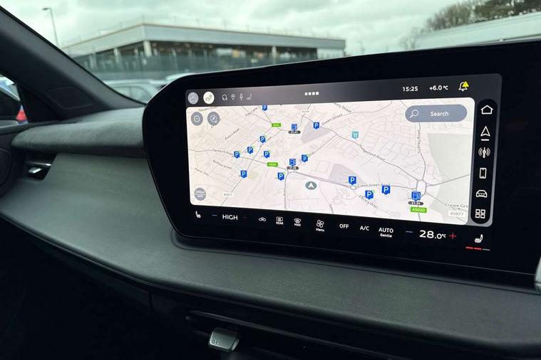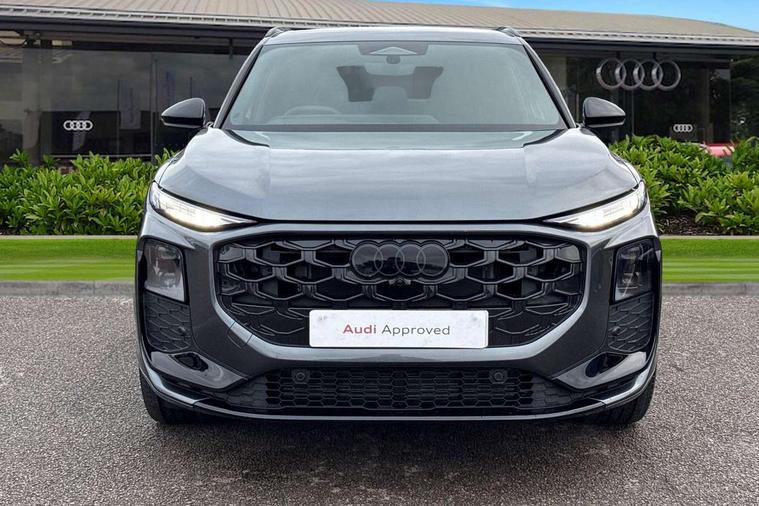 Adaptive cruise control, Audi connect emergency call and service, Audi connect remote and controls, Audi drive select (Balanced/Individual, effeciency, comfort and dynamic), Audi virtual cockpit plus - 11.9" display, Bluetooth interface, Camera based traffic sign recognition, Driver attention and fatigue monitor with driver monitoring, Emergency assist, Front cross traffic assist, Panoramic curved display with 12.8" MMI navigation plus and MMI touch, Park assist plus with parking system and 360 display, Phonebox light with wireless charging, Projection of a black ice warning, Reversing camera, Smartphone interface includes wireless Apple carplay/Android Auto, Start/stop system, Swerve assist and turn assist, Traffic sign based speed limiter, Voice control system with natural language interaction, Petrol Particulate Filter, 2 USB-C ports with charge and data functions, Audi sound system with 10 loudspeakers, subwoofer, 8 channel amplifier with 260 watts, DAB digital radio module, Acoustic glass for front door windows, Acoustic windscreen, Advanced dynamic light scenario of the coming home/leaving home function, Aluminium window trim, Audi Q3 lettering on the B-pillars, Auto dimming door mirrors, Auto dimming rear view mirror, Automatic dynamic headlight range control, Contrasting finish in volcano grey, Cornering light, Digital daytime running lights with a choice of 4 digital light signatures, Digital matrix LED headlights, Dipped beam, Dynamic indicators, Electrically folding, adjustable and heated door mirrors with integrated LED side indicators and kerb view function for passenger side, Full paint finish, High resolution main beam, Illuminated door sills with aluminium inserts at the front with S logo, Intersection light, Lane light with side assist and direction indicator, LED third brake light, Loading sill protector in stainless steel, Manoeuvring light, Motorway light, Orientation light with lane departure warning, Position light, Privacy glass - dark tinted rear window, rear door and side windows, Projection light in the exterior mirrors - Projects a graphic element onto the ground, Q3 badging on the rear, Rain and light sensors, Rear side wing doors, Rear window, rear door windows and rear side windows in clear glass, Rear wiper, Sports bumpers, Turning light, 3 seat bench in 2nd row, 3 spoke heated flat top and bottomed leather multi function sport steering wheel with gear shift paddles and "S" badging, 3-zone deluxe automatic air conditioning, 4 way lumbar support for the front seats - electric with horizontal and vertical adjustment in four directions, Black cloth headlining, Front and rear floor mats, Front and rear headrests, Front centre armrest, Heated front seats, Height and reach adjustable steering wheel, Interior storage compartment, Luggage compartment lid, electrically opening and closing, Manual front seats with height adjustment, Rear seat bench plus with split folded 40:20:40, Single front passenger seat, Stainless steel pedals, Steering wheel operating unit, gloss black, Storage compartment in front centre console, Ambient lighting package pro - Q3, Black styling pack with black door mirrors - Q3, Driver assist pack - Q3, Dynamic pack - Q3, 3x3 point rear seatbelts, Convenience key with safelock, Driver and front passenger airbag with passenger airbag deactivation, Electromechanical parking brake, Electronic stabilisation control including ABS, ASR and EDL, First aid kit with warning triangle and high visibility vests, Front emergency brake assist, Hill hold assist, i - Size child seat mounting on the front passenger side and i - Size and top tether on the outer rear seats, Power operated child locks, Seatbelt monitoring, Tyre pressure loss indicator, Anti theft wheel bolts, Remote central locking, Thatcham approved category 1 anti theft alarm, Anthracite american whitewood natural inlay, Interior elements in dinamica microfibre, Interior trims in aluminium look, Tool kit and Jack,