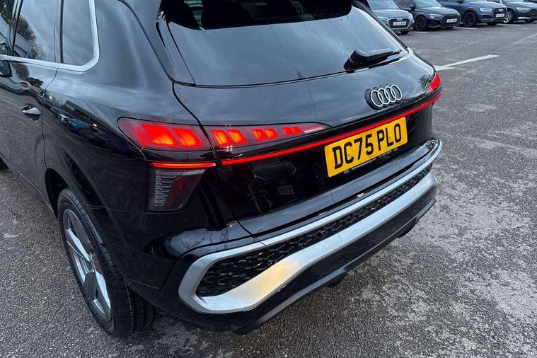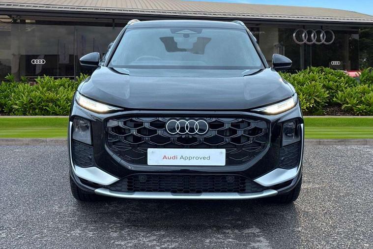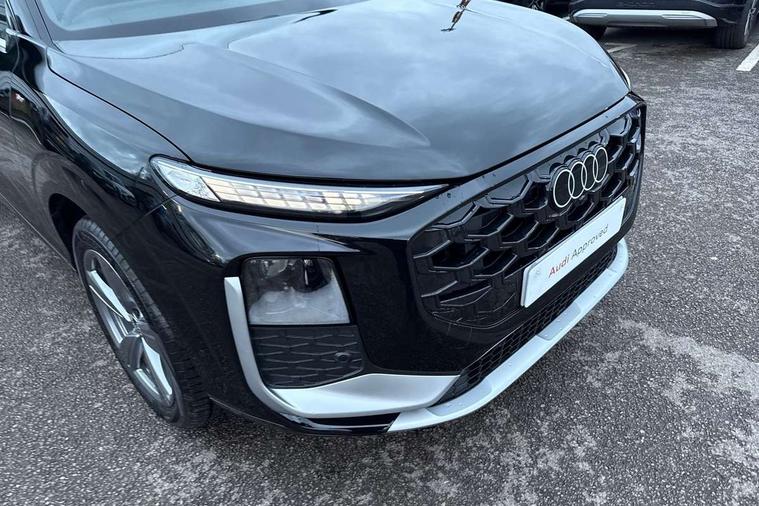 Adaptive cruise control, Audi connect emergency call and service, Audi connect remote and controls, Audi drive select (Balanced/Individual, effeciency, comfort and dynamic), Audi virtual cockpit plus - 11.9" display, Bluetooth interface, Camera based traffic sign recognition, Driver attention and fatigue monitor with driver monitoring, Front cross traffic assist, Lane departure warning with emergency assist, Panoramic curved display with 12.8" MMI navigation plus and MMI touch, Park assist plus with parking system and 360 display, Phonebox light with wireless charging, Reversing camera, Smartphone interface includes wireless Apple carplay/Android Auto, Start/stop system, Swerve assist and turn assist, Traffic sign based speed limiter, Voice control system with natural language interaction, Comfort suspension, Petrol Particulate Filter, 2 USB-C ports with charge and data functions, Audi sound system with 10 loudspeakers, subwoofer, 8 channel amplifier with 260 watts, DAB digital radio module, Acoustic glass for front door windows, Acoustic windscreen, Aluminium roof rails, Aluminium window trim, Audi Q3 lettering on the B-pillars, Auto dimming door mirrors, Auto dimming rear view mirror, Body colour door mirrors, Contrasting finish in volcano grey, Electrically folding, adjustable and heated door mirrors with integrated LED side indicators and kerb view function for passenger side, Full paint finish, Illuminated door sills with aluminium inserts at the front with S logo, LED daytime running lights, LED headlights plus with LED rear lights pro with continous light strip, illuminated Audi rings, rear, LED third brake light, Loading sill protector in stainless steel, Main beam assist, Privacy glass - dark tinted rear window, rear door and side windows, Projection light in the exterior mirrors - Projects a graphic element onto the ground, Q3 badging on the rear, Rain and light sensors, Rear side wing doors, Rear window, rear door windows and rear side windows in clear glass, Rear wiper, Sports bumpers, 3 seat bench in 2nd row, 3 spoke flat top and bottomed leather multi function sport steering wheel with gear shift paddles and "S" badging, 3-zone deluxe automatic air conditioning, 4 way lumbar support for the front seats - electric with horizontal and vertical adjustment in four directions, Black cloth headlining, Front and rear floor mats, Front and rear headrests, Front centre armrest, Heated front seats, Height and reach adjustable steering wheel, Interior storage compartment, Leather/artificial leather upholstery combination with S emblem + front sports seats, Luggage compartment lid, electrically opening and closing, Manual front seats with height adjustment, Rear seat bench plus with split folded 40:20:40, Single front passenger seat, Stainless steel pedals, Steering wheel operating unit, gloss black, Storage compartment in front centre console, Ambient lighting package pro - Q3, S line exterior styling pack - Q3, 3x3 point rear seatbelts, Convenience key with safelock, Driver and front passenger airbag with passenger airbag deactivation, Electromechanical parking brake, Electronic stabilisation control including ABS, ASR and EDL, First aid kit with warning triangle and high visibility vests, Front emergency brake assist, Hill hold assist, i - Size child seat mounting on the front passenger side and i - Size and top tether on the outer rear seats, Power operated child locks, Seatbelt monitoring, Three point automatic belts with belt tensioner and height adjustment, Tyre pressure loss indicator, Anti theft wheel bolts, Remote central locking, Thatcham approved category 1 anti theft alarm, Dark aluminium divergence inlay, Interior elements in dinamica microfibre, Interior trims in aluminium look, Tool kit and Jack,