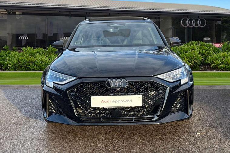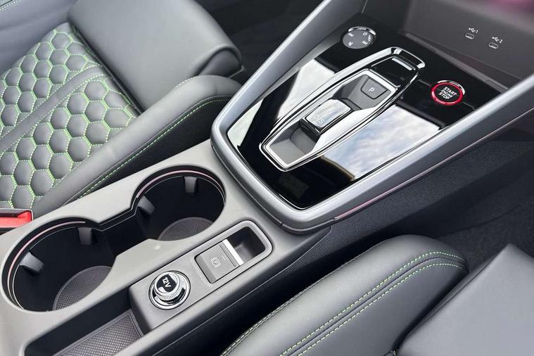 Adjustable speed limiter, Audi drive select comfort, auto, dynamic and efficiency, Audi virtual cockpit plus with RS specific design and 12.3" display with additional graphic display options, Automatic start/stop system with recuperation, Bluetooth interface, Camera based traffic sign recognition, Collision avoidance assistant, Driver attention and fatigue detection, e-Call (emergency call), MMI Navigation Plus with high resolution 10.1" colour touch screen display, Progressive steering, RS specific driving modes - RS Individual, RS Performance and RS Torque rear, Service indicator, Smartphone interface with app store includes wireless Apple carplay, Android auto and Amazon alexa integration, Trip computer, Voice control system with natural language interaction, Adaptive suspension, Increase of top speed to 174 mph, Quattro permanent four wheel drive, Audi Phonebox light with wireless charging, DAB Digital radio, USB ports with charging function in the rear, Audi beam LED projection of RS logo on ground as you exit, Auto dimming frameless rear view mirror, Carbon door mirror housings, Electrically adjustable/heated/folding/auto dimming door mirrors with integrated LED indications + kerb view function for passenger side, Engine compartment cover with carbon trim, Exterior model badging, Front electric windows, Heat insulating glass windscreen, LED 3rd brake light, Light and rain sensors, Privacy glass - dark tinted rear window, rear door and side windows, Rear electric windows, Rear side wing doors, Rear wiper, Roof edge spoiler in carbon, RS sport exhaust system - dual branch with flap control and gloss black oval tailpipe trims, 12V socket and storage compartment in front centre console, 3 seat bench in 2nd row, 3 Spoke flat top and bottomed black leather multi function steering and gear shift paddles, 3-zone deluxe automatic air conditioning, 40/20/40 split folding rear seat bench, Black cloth headlining, Black front and rear floor mats, Front and rear headrests, Front centre armrest, Front door sill trims with RS 3 logo, Heated front seats, Height and reach adjustable steering wheel, Manual boot compartment lid, Rear centre armrest with cupholder, Seat side bolsters, Single front passenger seat, Stainless steel pedals and front footrest in black, Vanadium look - Interior door handles, Door trim, power latching, Air vents, window controls, mirror adjust, rear door lock, Selector lever in centre console, Black Styling plus package - RS3, Extended ambient lighting package Pro with Multi-coloured contour lighting of instrument panel - RS3, RS exterior features pack in carbon and gloss black - RS3, Storage package - RS3 Sportback, 3x3 point rear seat belts, Driver and front passenger airbag with passenger airbag deactivation, Electronic Stabilisation Control (ESC) including ABS, ASR and EDL, First aid kit with warning triangle and 2 safety vests, Hill hold assist, Pre-sense front with pedestrian and cyclist detection, Seatbelt monitoring, Tyre pressure loss indicator, Anti theft alarm, Anti-theft wheel bolts, Electronically operated child locks, Immobiliser, Black dashboard, Inlays in carbon atlas structure, Tyre repair kit,