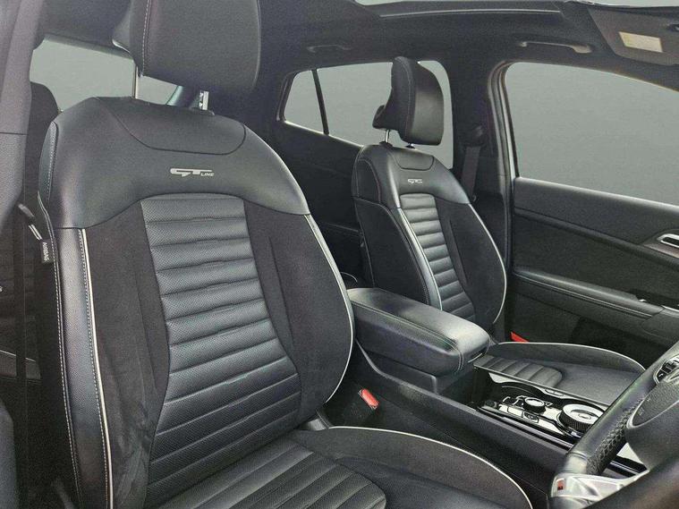 12.3" Display with navigation, 12.3" supervision colour cluster display, 360 degree around view monitor, Apple car play/Android Auto with voice control, Blind spot collision avoidance assist, Blind spot view monitor, Drive mode selector, E-call, Forward collision avoidance assist (FCA) - city/pedestrian/cyclist/junction covering, Front and rear parking sensors, Highway Driving Assist (HDA), Intelligent speed limit assist, Kia Connect (UVO), Lane Following Assist (LFA), Lane keep assist, Low washer fluid warning, Parking collision avoidance assist (PCA), Remote smart parking assist, Reversing camera system integrated into centre fascia screen, Smart cruise control with stop and go functionality, Smart power tailgate, Speed sensitive power steering, Trip computer, Windscreen washer level indicator, Wireless Smartphone charger, Intelligent Stop and Go, Bluetooth audio streaming, DAB Radio with MP3, Harman Kardon premium sound system, Rear USB port, Steering wheel mounted audio controls, USB C type charging ports on centre console, USB C type charging ports on side of front seats, USB port for connection of a media device, All round electric windows with drivers and front passenger auto up/down function, Automatic headlight control system, Automatic window defogger, Backlite glass heated with timer, Body colour and black bumper with silver accents, Body colour exterior door handles, Body colour radiator upper garnish and door garnish, Dual LED adaptive headlamps, Electric panoramic glass sunroof (Electric one touch with safety function), Electrically adjustable/heated/folding door mirrors with LED indicators, Front and rear chrome skid plates, Gloss black door mirrors, Gloss black radiator grille, Gloss black side sill and wheel arch body mouldings, Glossy black roof rack, High beam assist, Interior electrochromic mirror, LED daytime running lights, LED front fog lamps, LED High mounted stop light, LED rear combination lamp, Rain sensing wipers with aero blades, Rear fog lamp, Rear privacy glass, Rear side wing doors, Rear spoiler, Rear wiper, Satin finished beltline, Silver coloured inserts to bumpers, Tinted rear glass, Trailer stability assist, 10 way driver/8 way passenger electrically power adjustable seats, 12V power socket in front centre fascia and luggage compartment, 3 seat bench in 2nd row, 3 x passenger assist grips, 40/20/40 split folding rear seat, All-round height adjustable headrests, Ambient lighting, Black headlining, Centre console storage box, Cupholders in rear armrest, D-Shaped sports leather steering wheel and perforated inserts with GT-Line logo, Door courtesy lamps, Drink holder at centre armrest, Driver and front passenger side sunvisors with illuminated vanity mirrors, Driver seat memory function, Drivers seat power lumbar support, Front and rear door storage, Front seat and rear pockets, Front/rear centre armrests, Gear shift indicator, Glovebox illumination, Heated front and outer rear seats, Heated steering wheel, Interior door lock/unlock function, ISOFIX Child seat top tethers and anchor fixings outer rear seats, LED interior personal lamp, LED lighting in overhead console, Luggage area LED light, Luggage area load cover, Luggage net with hooks, Metal paint interior door handles, Paddle shift controls, Rear cabin light, Rear coat hooks, Single front passenger seat, Sports pedals, Suede leather upholstery, Three zone climate control, Tilt/telescopic adjustable steering wheel, Ventilated front seats, Ventilation ducts to rear compartment, Active front headrests, All round 3-point seatbelts, Anti-lock braking system (ABS), Dual front side airbags, Dual horn, Electronic parking brake, Electronic stability control with downhill brake control, Front passenger airbag cut-off switch, Front seatbelt pretensioners + load limiters, Height adjustable front seatbelts, Hill start assist control (HAC), Impact sensing auto door unlocking, Multi collision brake assist, Rear door child safety locks, Rear seat alert system, Traction control, Twin curtain airbags, Twin front airbags, Tyre pressure monitoring system, Advanced anti-theft system including immobiliser and alarm, Door deadlocks, Engine Start/Stop Button with Smart Entry System, Locking wheel nuts, Speed sensitive auto door locking, Visible vehicle identification number, Aluminium pattern finish centre fascia and door garnish, 18" GT-Line alloy wheels, Michelin tyres, Tyre mobility kit,