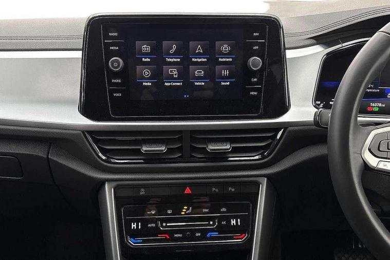 Advanced driver attention and drowsiness monitor, Dynamic road sign display, Emergency call service, Lane keeping system Lane Assist, Mobile phone interface, Modified key software - reduce switch off time for key status change to Long no motion, Online services, Park assist including front and rear parking sensors, Power assisted speed sensitive steering, Rear view camera, Service interval indicator, Tailgate/trunk lid release from outside, Think blue trainer driver tips and journey analysis, Warning sound and light for front seatbelts unfastened, Wireless app connect, Battery regeneration during braking, Front shock absorption, Rear shock absorption chassis with increased ride height, Start/stop function with battery regeneration, DAB Digital radio, Diversity antenna for FM reception, Music playback - MP3, WMA and AAC files, SD card slot, Simultaneous pairing of 2 compatible mobile devices, Title and cover art display, We Connect and We Connect Plus functionality, Auto dimming interior rear view mirror, Automatic hazard lights activation under emergency braking, Automatic headlight control with LED separate daytime running lights with coming/leaving home function, Black roof rails, Body coloured bumpers and radiator grille with chrome trim and front fog lamps with chrome bezel, Body coloured exterior mirror housings and door handles, Electrically adjustable and heated door mirrors, Extended roof spoiler, Exterior mirrors aspherical on driver side, convex on front passenger side, External USB type C socket and charging sockets, Front windscreen wiper with intermittent wipe and 4 position delay, Heated rear window, LED 3rd brake light, LED rear combination lamps, LED rear number plate lights, Power windows with comfort operation and circuit breaker, Privacy glass for rear side windows and rear window, Rain sensor, Rear exhaust tailpipe, Rear fog light on one side and reversing lights on both sides, Rear side wing doors, Rear wash/wipe with intermittent wipe setting, Remote electrically foldable door mirrors, puddle lights and reverse activated passenger's door mirror, 12V power socket in centre console, 3 rear head restraints, 3 seat bench in 2nd row, 4 load lashing points in luggage compartment, Air care climatronic air conditoning system with active combination filter and 2-zone temperature control, Black stitching for floor mats, Ceramique roof liner, Cloth upholstery, Door and side trim panel in cloth, Drawer under drivers seat, Driver/front passenger seat height adjustment, Front centre armrest, Front comfort sports seats, Front cupholders x 2, Front reading light, Front seat back storage pockets, Glove compartment door with light, Instrument lighting, white adjustable panel illumination, Interior ambient lighting and surround lighting, Interior light delay, Isofix child seat preparation, Leather gearshift handle, Load-through provision with cup holder when folded down ('Unsplit rear seat bench, split folding backrest, with centre armrest), Luggage compartment lighting, Lumbar support for driver's and front passengers seat, Non-folding front passenger seat backrest, Single front passenger seat, Storage compartment in left and right luggage area, Storage compartment in rear doors, Storage compartments in driver and front passenger doors, Sunvisors with illuminated vanity mirrors, Variable boot floor, height adjustable and removable, Driver assistance pack without proactive passenger protection - T-Roc Life/Match, 3 point height adj front seatbelts + pretensioners, 3 point seatbelts in outer rear with ECE label, ABS, Child locks on rear doors, City emergency braking and pedestrian monitoring, Driver and front passenger airbag with front passenger airbag deactivation, Driver and front passenger safety-optimised head restraints, Drivers seatbelt reminder, Electronic parking brake, Electronic Stability Control (ESC) inc EDL (Electronic Differential Lock) and ASR (Traction Control), Front and rear passengers curtain airbag system including front side airbags, Front disc brakes, Hill start assist, Predictive pedestrian protection, Rear disc brakes, Two tone horn, Tyre pressure loss indicator, Volkswagen roadside assistance, Alarm with interior protection, Keyless locking and starting system keyless access with safelock, Pewter matt decorative inserts for intrument panel, centre console and door panels at the front, Trims for alloy wheels,