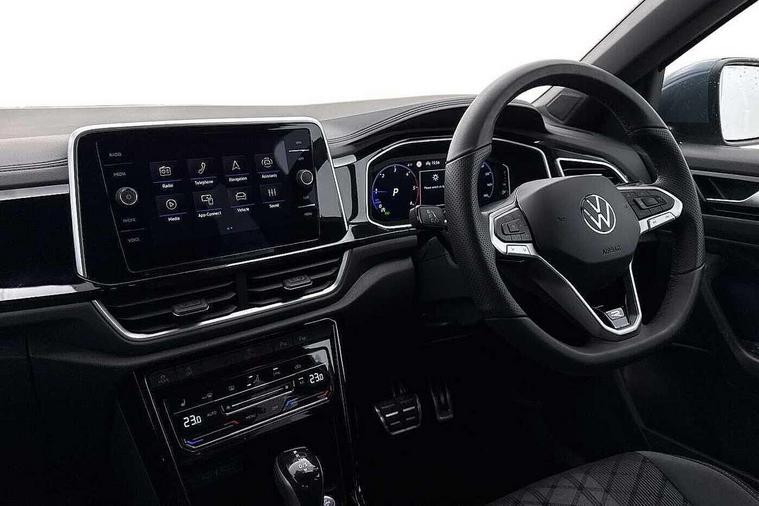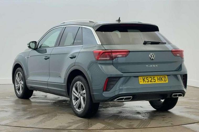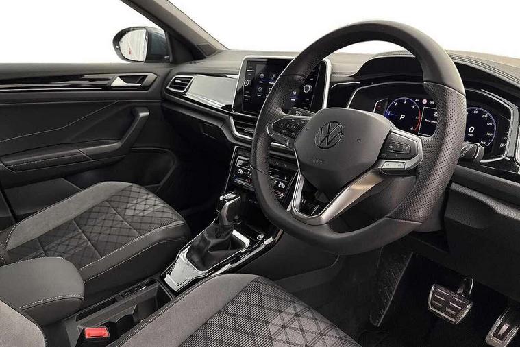 10.25" Digital cockpit pro, Advanced driver attention and drowsiness monitor, Dynamic road sign display, Emergency call service, Lane keeping system Lane Assist, Mobile phone interface, Modified key software - reduce switch off time for key status change to Long no motion, Online services, Park assist including front and rear parking sensors, Service interval indicator, Tailgate/trunk lid release from outside, Think blue trainer driver tips and journey analysis, Warning sound and light for front seatbelts unfastened, Wireless app connect, Battery regeneration during braking, Start/stop function with battery regeneration, DAB Digital radio, Diversity antenna for FM reception, Front and rear 6 speakers, Music playback - MP3, WMA and AAC files, Premium USB cable in choice of either Apple or Android smartphone compatibility, SD card slot, Simultaneous pairing of 2 compatible mobile devices, Title and cover art display, We Connect and We Connect Plus functionality, Auto dimming interior rear view mirror, Automatic hazard lights activation under emergency braking, Automatic headlight control with LED separate daytime running lights with coming/leaving home function, Body coloured exterior mirror housings and door handles, Electrically adjustable and heated door mirrors, Extended roof spoiler, Exterior mirrors aspherical on driver side, convex on front passenger side, External USB type C socket and charging sockets, Front windscreen wiper with intermittent wipe and 4 position delay, Heated rear window, LED 3rd brake light, LED rear combination lamps, LED rear number plate lights, Power windows with comfort operation and circuit breaker, Privacy glass for rear side windows and rear window, R-Line design body coloured bumpers, Rain sensor, Rear exhaust tailpipe, Rear fog light on one side and reversing lights on both sides, Rear side wing doors, Rear wash/wipe with intermittent wipe setting, Remote electrically foldable door mirrors, puddle lights and reverse activated passenger's door mirror, 12V power socket in centre console, 3 rear head restraints, 3 seat bench in 2nd row, 4 load lashing points in luggage compartment, Air care climatronic air conditoning system with active combination filter and 2-zone temperature control, Black roof lining, Chrome plated decorative trims, Chrome plated radiator grille inserts, air vent surrounds and light switch surrounds, Door and side trim panel with leatherette insert, Front + rear carpet mats, Front centre armrest, Front cupholders x 2, Front footwell illumination, Front reading light, Front scuff plates with R Line logo, Front seat back storage pockets, Glove compartment door with light, Instrument lighting, white adjustable panel illumination, Interior ambient lighting and surround lighting, Interior light delay, Isofix child seat preparation, Leather gearshift handle, Load-through provision with cup holder when folded down ('Unsplit rear seat bench, split folding backrest, with centre armrest), Luggage compartment lighting, Single front passenger seat, Stainless steel pedals, Storage compartment in left and right luggage area, Storage compartment in rear doors, Storage compartments in driver and front passenger doors, Sunvisors with illuminated vanity mirrors, Variable boot floor, height adjustable and removable, Driver assistance pack without proactive passenger protection - T-Roc, 3 point height adj front seatbelts + pretensioners, 3 point seatbelts in outer rear with ECE label, ABS, Child locks on rear doors, City emergency braking and pedestrian monitoring, Driver and front passenger airbag with front passenger airbag deactivation, Driver and front passenger safety-optimised head restraints, Drivers seatbelt reminder, Electronic parking brake, Electronic Stability Control (ESC) inc EDL (Electronic Differential Lock) and ASR (Traction Control), Front and rear passengers curtain airbag system including front side airbags, Hill start assist, Predictive pedestrian protection, Rear disc brakes, Two tone horn, Tyre pressure loss indicator, Volkswagen roadside assistance, Piano black decorative inserts in dashboard and front door trim panels, Trims for alloy wheels,