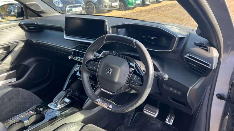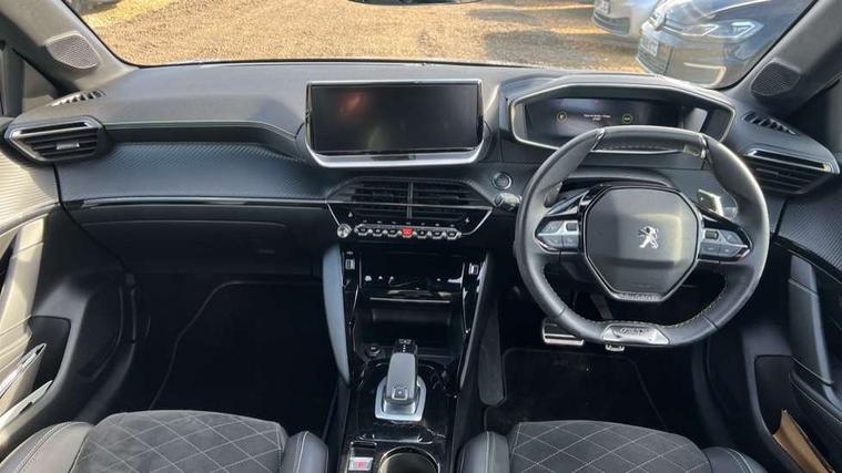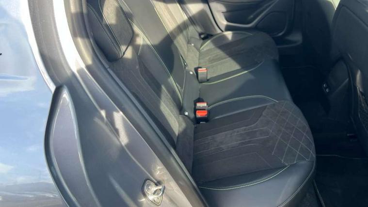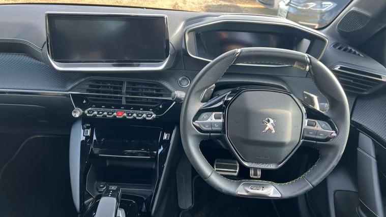 10" Capacitive colour touchscreen with connected 3D navigation, Blind spot monitoring, Bluetooth telephone facility, Driver attention warning, Exterior temperature indicator with ice warning, Mirror screen with mirror link, apple carplay and android auto, Multi function trip computer, PEUGEOT i-Cockpit with compact steering wheel, PEUGEOT i-Cockpit with configurable 3D headup instrument panel, PEUGEOT SOS and assistance, Push button start, Smart phone docking station, Speed limit recognition and recommendation, Visio park assist 180 with colour reversing camera + front and rear parking sensor, 2 front USB socket with USB-C, 2x USB sockets in rear, 6 speakers radio with mp3 compatible, DAB Digital radio, Voice recognition for radio, navigation and telephony features, 2 X Rear number plate lights, 3rd brake light, Automatic hazard light activation upon heavy brake application, Automatic lights, Automatic windscreen wipers, Body coloured exterior door handles, Dark tinted rear side and tailgate windows, Diamond Black roof, Electric front windows + one touch + anti-pinch, Electric rear windows with one touch/anti-pinch, Electrically adjustable, heated and power folding door mirrors, Extended diamond black rear spoiler, Follow me home headlights, Frameless electrochrome interior rear view mirror, Full LED headlights with smartbeam assist, Gloss black finish on B pillar, Gloss black rear cluster connecting strip, Gloss black wheel arch extensions, Gloss black window surround, GT model designation badging on C pillar, GT model designation badging on tailgate, Headlights left on audible warning, LED daytime running lights with 3 claw headlight with distinctive tooth design, LED side indicator lights integrated into door mirrors, Model designation badges front and rear, Nera black door mirror shells, Peugeot scuff plates, Radiator grille - Dark chrome chequered and gloss black edge trim, Rear bumper with gloss black finish, Rear full LED 3D peugeot signature claw effect lights with daylight function, Rear lower bumper diffuser effect trim in gloss black, Rear reversing lights, Rear side wing doors, Rear windscreen wiper triggered automatically in reverse gear, Roof mounted aerial with fin design, Tailgate with heated rear windscreen and wiper blade, 1/3 to 2/3 split folding rear seats, 12V socket, 3 seat bench in 2nd row, 8 Colour personalisable ambient lighting, Aluminium pedals and foot rest, Automatic air conditioning, Automatic gear lever in full grain leather and satin chrome, Driver and front passenger seat manual adjustment in longitudinal and back rest angle, Driver and front passenger seat mechanical height adjustment, Driver and front passenger sport seats, Electric power steering with reach and rake adjustable steering column, Front and rear carpet mats in black with lime green stitch detail, Front centre armrest with storage compartment, Front heated seats x 2, Front LED interior light with 2 reading spotlights and rear interior light with timer, High centre console with 2 cup holders, ISOFIX child seat mounting points on passenger seat, Lime green contrast stitching to armrest, front centre console, door panels and dashboard facia, Map pockets on the backs of the front seats, Mistral full grain perforated leather steering wheel with aikinite stitch detail and satin chrome 'GT' emblem, Piano keys gloss black plated toggle switches to access main functions of the vehicle, Piano keys gloss black plated toggle switches to access touchscreen functions, Roof lining - Mistral black, Seatbelt unfastened on the move audible and visual alert for front and rear seats, Single front passenger seat, Drive assist pack plus - 208, 3 rear 3 point seatbelts, ABS (Anti-lock Braking System) with EBD (Electronic Brakeforce Distribution) and EBA (Emergency Braking Assistance), Active safety brake with night function/cyclists/pedestrians, Adaptive driver and front passenger airbags with passenger airbag deactivation function, Child locking functionality on rear doors, Driver/front passenger side airbags, Electric parking brake, ESP with Hill Assist, Front and rear curtain airbags, Front and rear disc brakes, Front optimised safety headrests and 3 x rear retractable headrests with height adjustable, Front three point retractable seatbelts with force limiters, Tyre pressure sensor, Acoustic vehicle alert system (AVAS), Automatic door locking when moving off, Deadlock, Electronic code immobiliser, Peugeot Open and Go System, Thatcham cat. 1 alarm with anti lift sensor, Carbon effect Dashboard, front and rear door panel finish, 17" Bronx two-tone alloy wheels, Space saver spare wheel,