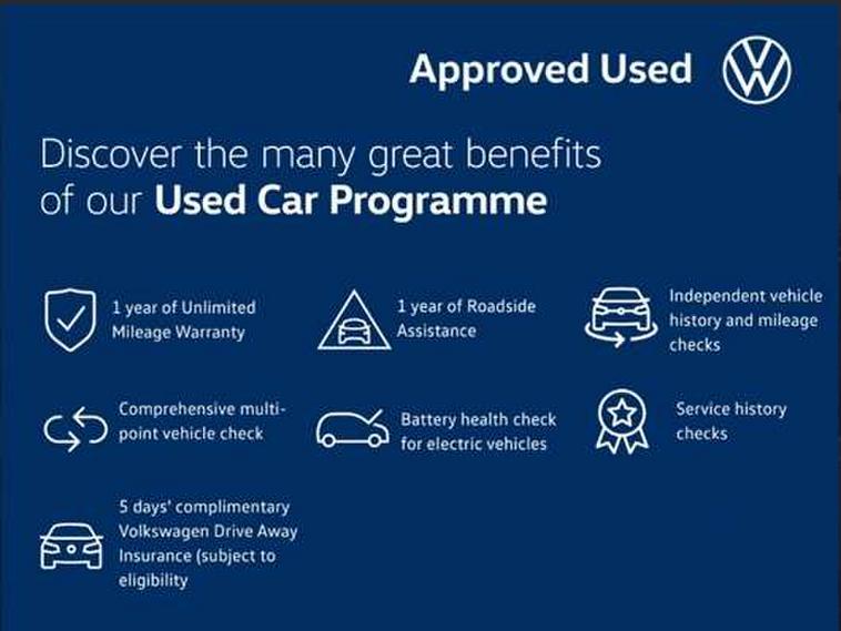 Digital clock, Driver alert system, Emergency call service, Multifunction computer plus, Power assisted speed sensitive steering, Speedo and rev counter, electronic odometer, trip, service interval display and fuel gauge, Start/stop system, Volkswagen connect, Warning buzzer and light for front seatbelts unfastened, Wireless app connect, Battery regeneration during braking, Galvanished body, DAB digital audio broadcast, Diversity antenna for FM reception, Black grille with chrome surround, Black radiator grille with chrome louvres, Body colour bumpers, Body colour door handles, Body colour rear spoiler, Body coloured side sills, Electric front windows, Front windscreen washers and wipers with 4 speed intermittent delay, Heated rear window with auto timer, High level 3rd brake light, Internally adjustable door mirrors, LED daytime running lights, LED rear number plate lights, Rear electric windows, Rear windscreen washer and wiper with interval delay, reverse activated, 2 bag hooks in luggage compartment, 2 front and 2 rear reading lights, 2 front cupholders and 12 V socket with cover, 3 rear head restraints, 4 grab handles, 60/40 split folding rear seat, Centre console storage with open storage compartment, Chrome interior door handles, Driver and front passenger seat height adjustment, Driver and front passenger sunvisors with illuminated vanity mirrors, Dust/pollen filter, Folding rear seat backrest, Front head restraints, Front seat backrest storage pockets, Gear lever gaiter in black trim surround, Glovebox, Handbrake grip button in chrome effect, Height/reach adjustable steering column, Instrument lighting, adjustable panel illumination, Interior light with delay, Isofix Preparation 2 Rear child seats, Leather gear knob and handbrake grip, Leather multifunction steering wheel, Luggage compartment cover, removable, Luggage compartment lighting, Luggage compartment with variable load floor, Storage compartment in front doors, Storage compartment in rear doors, Storage compartment under front seats, Sunglasses holder, 3 point height adj front seatbelts + pretensioners, 3x3 point rear seatbelts, ABS, Automatic post collision braking, Driver/front passenger airbag, Drivers and front passengers safety optimised head restraints, ESP with EDL + ASR, Front and rear passenger curtain airbags, Front disc brakes and rear drum brakes, Front passenger airbag deactivation, Front seat side impact airbags, HBA (Hydraulic Brake Assist), Hill hold control, Single tone horn, Tyre pressure monitoring system, Alarm with interior protection and deactivation via infotainment system, Electronic engine immobiliser, Remote central locking with 2 remote folding keys, Air vents in High gloss black, Limestone grey decorative inserts,