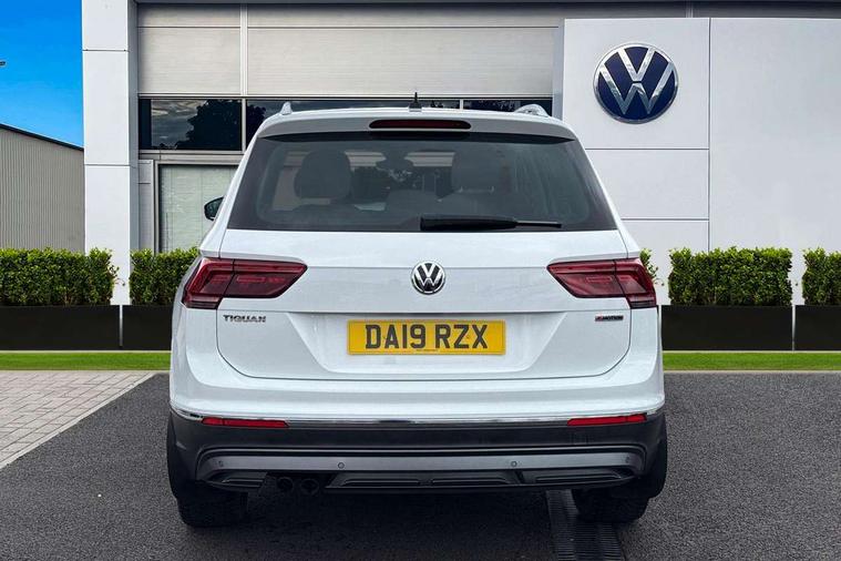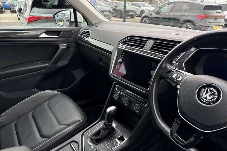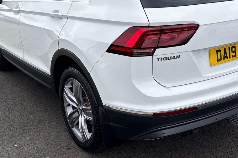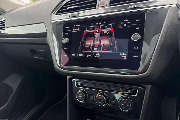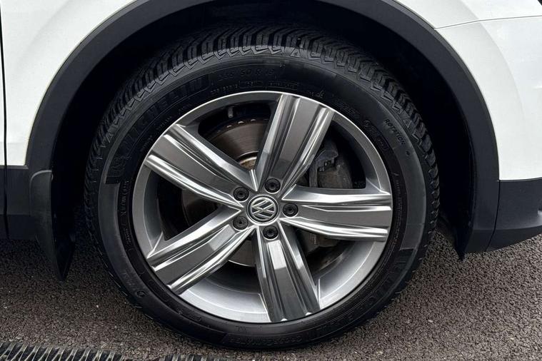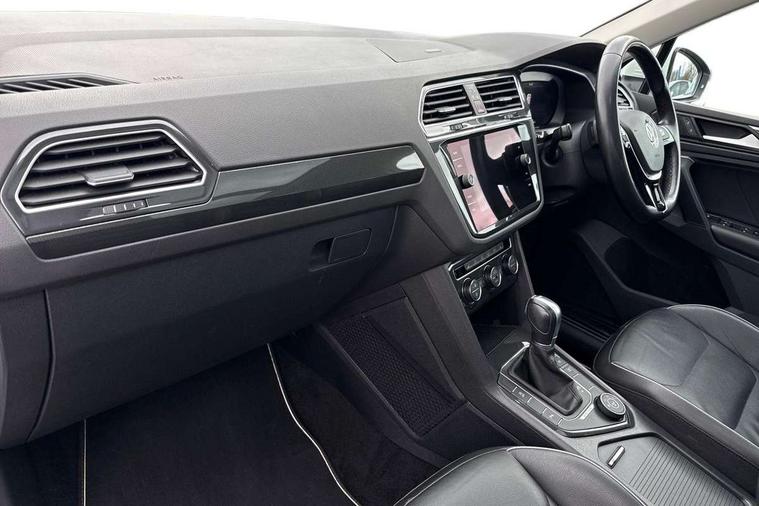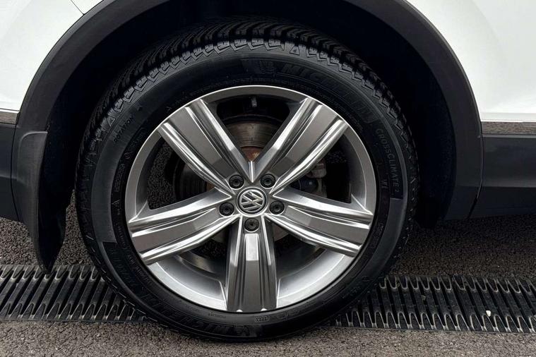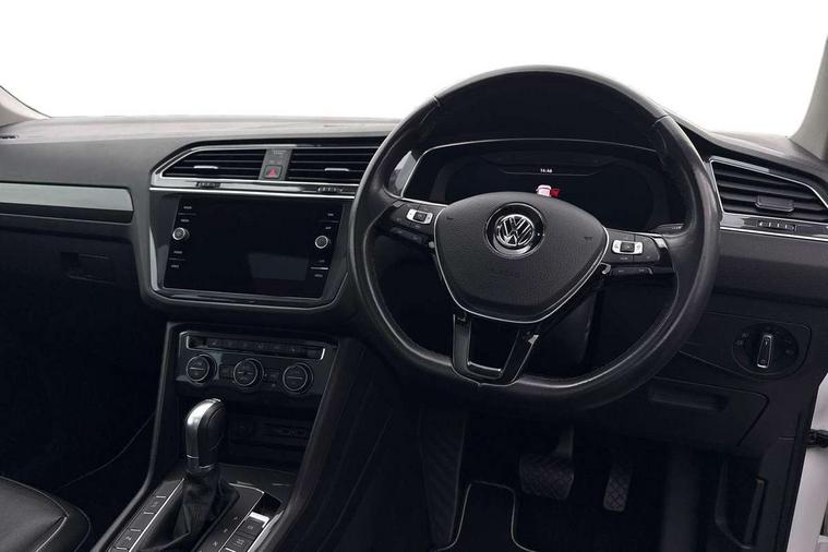 Active information display, Adaptive cruise control, App-Connect, Bluetooth phone integration system, Car-Net Security and Service, Coasting function, Drive mode selector, Driver alert system, Driver profile selection, Fatigue detection system, Front assist, radar sensor controlled distance monitor, city emergency braking + predictive pedestrian protection, Fully electric tailgate + keyless entry and start, Instrument cluster, Lane assist, Low washer fluid warning light, Outside temperature display, Service interval indicator, Speed limiter, Start/Stop function, Warning sound and light for doors and tailgate open, Battery regeneration during braking, Diesel particulate filter, Misfuel prevention device, 2x USB sockets in front, 4 X 20 watt output, Aux-in socket, DAB Digital radio, Dynamic navigation based on TMC+, Music playback - MP3, WMA and AAC files, SD card slot, Simultaneous pairing of 2 compatible mobile devices, SMS Functionality, Three route options - Fast, Short, Eco, Title and cover art display, Volkswagen media control, 3D effect cherry red LED rear tail lights, Auto dimming interior mirror, Automatic activation of hazard warning lights, Black door protector with chrome inserts, Body colour door handles, Body colour door mirrors, Body coloured bumpers, Chrome side body trim, Chrome side window surrounds, Chrome trimmed radiator grille, Coming/leaving home lighting function, Door mirror puddle lights, Door sill protector, Dusk sensor + auto driving lights, Electric panoramic sunroof with sunblind, Electrically heated and foldable door mirrors, door mirror puddle lights and reverse activated kerb view adjustment on passenger's door mirror, Front air intake with chrome strip, Front and rear electric windows, Heated rear window, Heated windscreen washer jets, High level 3rd brake light, LED headlights with dynamic light assist daytime running lights and cornering front fog lights, LED rear number plate lights, Rain sensor windscreen wipers, Rear tinted windows from B pillar back, Rear windscreen washer and wiper with interval delay, Silver anodised roof rails, Silver rear diffuser trim, Twin trapezoid chrome exhaust pipes, Windscreen wipers/ intermittent wipe + 4 position delay, 12V socket in centre console storage area, 12V socket in luggage compartment, 12V socket on rear of front centre armrest, 2 cup holders in front, 2 head restraints in 3rd row, 2 individual 3rd row seats, 3 head restraints in 2nd row, 3 single seats foldable in 2nd row, 3 zone climate control, 4 load lashing points, Assymetric split folding rear bench seat and backrest with centre armrest, Bag hook in luggage compartment, Driver + front passenger lumbar support, Foldable front passenger seat backrest, Front + rear carpet mats, Front centre armrest with storage compartment, longitudinal and height adjustable and two rear air vents, Front seatback folding tables, Height/reach adjust steering wheel, Illuminated driver/passenger vanity mirrors, Illuminated scuff plates, Instrument lighting white adjustable panel illumination, Interior light with delay, Isofix Preparation 2 Rear child seats, Load through provision with 2 cupholders when folded, Lockable cooled glovebox, Luggage compartment lighting, Luggage compartment side storage, Map pockets on front seats, Passenger seat height adjuster, Rear cupholders, Removable luggage cover, Sliding/reclining rear seats, Storage compartment in driver's door, Storage compartment in passenger's door, Storage tray on dashboard, Sunglasses storage, Variable boot floor, Ambient lighting pack - Tiguan, 3 point seatbelts on all seats, ABS+EBD+Brake assist, Active bonnet, Active pedestrian safety system, Curtain airbags, Driver/Front Passenger airbags, Driver/Passenger whiplash optimised head restraints, Drivers knee airbag, Electronic parking brake with auto hold, ESC with EDL, ASR, EDTC and trailer stabilisation function, First aid kit, Front and rear brake disc, Front seat side impact airbags, Front side airbags, Front ventilated brake discs, Head airbag system, Height adjustable front 3 point seatbelts + pretensioners, Hill hold control, Passenger airbag deactivate switch, Passenger knee airbag, Pre crash system, Rear side airbags, Rigid safety cell with front and rear crumple zones, Seatbelt warning lamp and buzzer, Two tone horn, Volkswagen roadside assistance, Warning sound and light for front seat belts if unfastened, Warning triangle, Alarm with interior protection, Electronic engine immobiliser, Remote central locking with 2 remote folding keys, Chrome door trim inserts, Dark grey decorative inserts in dash and door panel, Piano black interior trim, Steel space saver spare wheel,