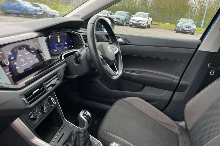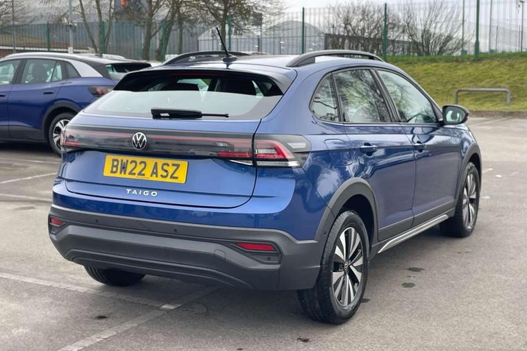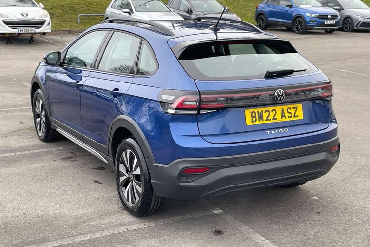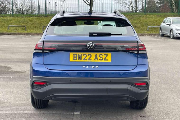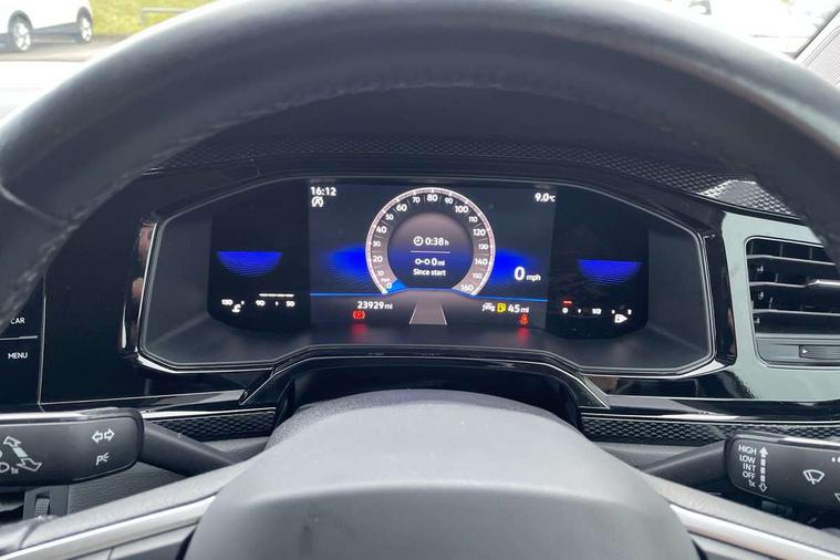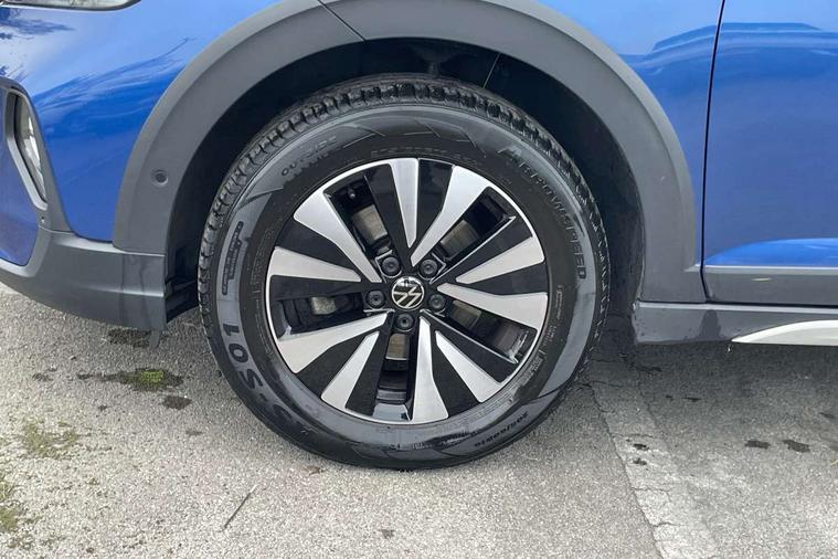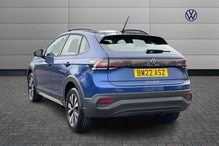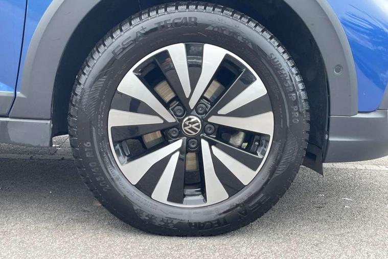 App-Connect including App-Connect Wireless, Driver alert system, e-Call (emergency call), Power Steering, Travel assist including emergency assist, Washer fluid level indicator, Wireless Charging including Bluetooth, Start-stop system with battery regeneration (recuperation - energy recovery during braking), Digital radio reception (DAB+), Diversity antenna for FM reception, WeConnect plus, Aspherical driver's exterior mirror, Auto headlights, Body coloured bumpers, Body coloured exterior mirror housings and door handles, Electric windows, External USB type C socket and charging sockets, Front fog lamps with cornering function, Headlight range control, Heat insulating glass windscreen, LED headlamps, LED rear combination lamp, LED third brake light, Left convex exterior mirror, Power folding adjustable/heated exterior mirrors and front passenger exterior mirror lowering function, Rear fog light on one side, reversing light on both sides, Rear side wing doors, Rear wash/wipe with intermittent wipe setting, 'Slash/ Austin' Cloth upholstery, 12V socket in centre console, 2 front reading lights, 3 rear head restraints, 3 seat bench in 2nd row, Ambient lighting with logo projection, Black carpets, Child seat anchor for child seat system i-Size, 2x top tether, and child seat anchor in front on front passenger side, Door and side trim panels in titan black, Driver and front passenger seat height adjustment, Front centre armrest, Handbrake lever handle in leather, Height and reach adjustable steering wheel, Leather trimmed gear knob, Leather wrapped multifunction steering wheel, Luggage compartment floor, Luggage compartment light, Lumbar support for driver's and front passengers seat, Seat covers in titanium black, Single front passenger seat, Split folding backrest with centre armrest and unsplit rear seat bench, Storage compartment under front seats, Sun visors with illuminated vanity mirrors, Chrome Package - Taigo, Drivers assistance pack - Taigo, Light and Sight pack including High beam assist - Taigo, 2 x 3-point seatbelts/outer rear seats with ECE label, 3-point seat belts in front with pretensioner and height adjustment, 3-point seatbelt for centre rear seat, Driver and front passenger airbags with front passenger airbag de-activation, front side and curtain airbags, Driver and front passenger safety-optimised head restraints, Electronic stability control, Extended and predictive pedestrian/ cyclist protection, Front and rear disc brakes, Front curtain and side airbags with center airbag, Hill start assist, Manual rear child locks, Single tone horn, Tyre pressure loss indicator, Anti-theft alarm system with interior monitoring, backup horn, and towing protection, Anti-theft wheel bolts, Lava stone black gloss/matt decorative inserts in dash and front door panels, Low rolling resistance tyres,