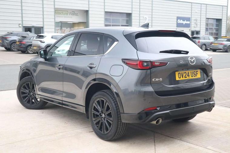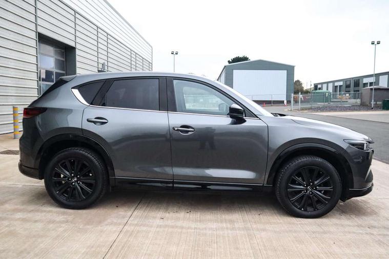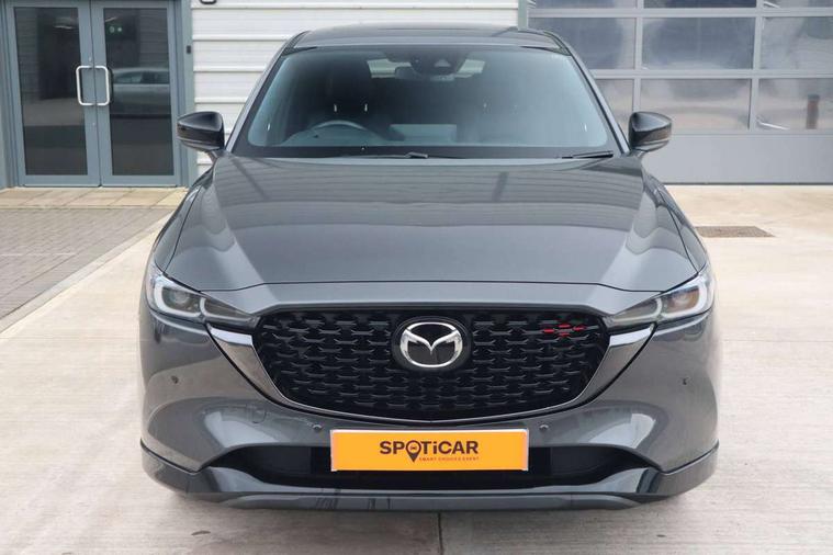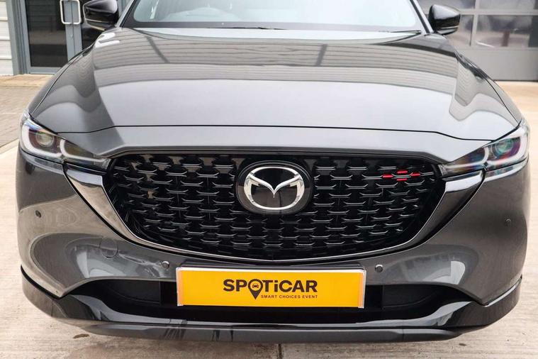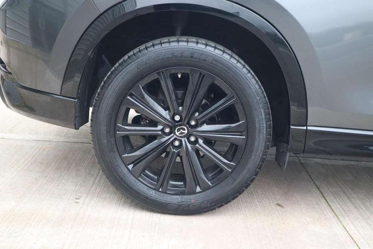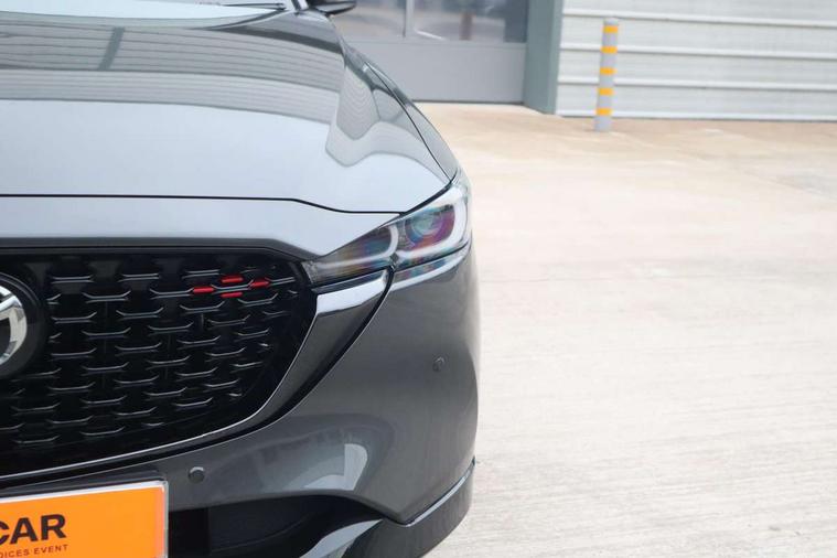 10.25" display with Mazda Connect infotainment, 7" colour TFT display, Advanced blind spot monitoring, Bluetooth connectivity with voice control, Collision prevention assist, Connected services, Cruising Traffic Support, Electric power steering, Emergency stop signalling system, Engine start/stop button, Forward collision warning, Front and rear parking sensors, Integrated navigation system, Intelligent speed assist, Lane departure warning system, Lane keep assist, Power liftgate, Qi wireless phone charging, Radar cruise control, Rear cross traffic alert, Reversing camera, Service indicator, Traffic sign recognition (TSR), Trip computer, Windscreen projected colour active driving display (HUD) with memory, Wireless apple car play/android Auto, Cylinder Deactivation, i-stop, AM/FM radio, Bluetooth audio streaming, Bose premium sound system with 10 speakers, DAB Digital radio, Multimedia Commander including separate volume dial, Steering wheel mounted audio controls, Adaptive front lighting system, Auto dimming rear view mirror, Automatic headlights, Black honeycomb door trim decoration panel, Black honeycomb interior decoration panel, Body colour roof spoiler, Coming/leaving home lighting function, Door mirror integrated indicators, Dual large chrome tailpipes, Dusk sensitive headlamps, Electric front/rear windows with one touch auto up/down, Front grille in gloss black finish, Front grille in gloss black with red accent + gloss black signature wing, Gloss black B and C pillars garnish, Gloss black door mirrors, Gloss black front and rear lower bumper mouldings, Gloss black tire arch and side mouldings, High beam assist, Intermittent rear wash/wipe, LED auto levelling, LED daytime running lights, LED front fog lights, LED Headlights, LED third brake light, Power folding and heated door mirrors, Power tilt/slide sunroof, Privacy glass (rear side windows only), Rain sensing front wipers, Rear side wing doors, Red front grille accent, Red stitching and accents on door trim, knee pad, console lid, steering wheel, shift boots, Scuff plates, Shark fin antenna, Signature LED rear combination lights, Variable intermittent front wash/wipe, Windscreen wiper de-icer, 12v electrical power outlet, 3 seat bench in 2nd row, 3 stage heated front seats, 40:20:40 Karakuri fold-flat seat system, 6 way electric adjustable passenger seat, 8 way electric driver seat with lumbar support + memory, Black roof lining, Cargo room flat floor board with waterproof undertray, Driver seat power slide, recline and height adjustment, Driver, Front passenger and two rear grab handles with coat hooks, Driver/passenger front seatback pockets, Driver/passenger sunvisors + illuminated vanity mirrors (drivers with ticket holder), Dual zone climate control, Folding centre armrest with 2 cup holders, Front and rear door pockets, Front centre storage with two cupholders, Front passenger seat power slide, recline and height adjustment, Gear shift indicator, Heated steering wheel, Humidity sensor, Illuminated glovebox, Interior dome light with integral spotlight, ISOFIX child seat anchorage points attached on outer rear seats, Karakuri tonneau cover, Leather upholstery, Leather wrapped steering wheel and gear knob, Luggage compartment LED lighting, Luggage compartment power outlet, Rear air vents, Rear headrests, Rear seat recline, Roof mounted sunglasses holder, Single front passenger seat, Three height adjustable head restraints, Tilt/height adjustable steering wheel, USB Connectivity (2x front Type-C, 2x rear Type-B), White interior LED illumination lighting, 3 point front seatbelts with pre-tensioners, 3 rear 3 point seatbelts, ABS, Advanced Smart City Brake Support - SCBS, Child locks on rear doors, Driver and front passenger side airbags, DSTC-Dynamic Stability and Traction Control, Dual front airbags, Electronic brake force distribution, Electronic parking brake with auto hold, ESP, Front and rear curtain airbags, Front passenger airbag deactivation, G-Vectoring control, Hill hold assist, Seatbelt reminder front and rear, Single stage passenger airbags, Smart brake support with forward obstruction warning, Tyre pressure monitoring system, Automatic door locking when moving off, Deadlock, Immobiliser, Power door locks, Remote central locking, Smart keyless entry, Thatcham Cat.1 alarm, 19" Black alloy wheels, Tyre repair kit,