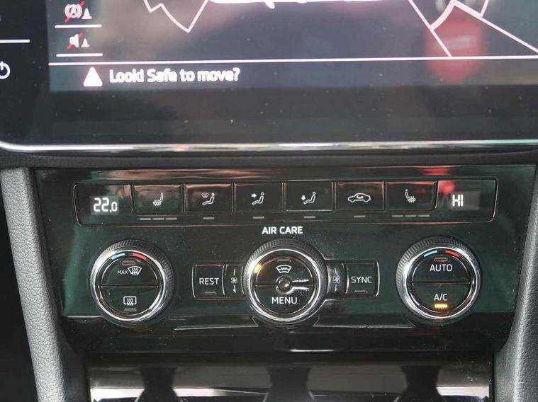 Adaptive cruise control, Apple car play/Android Auto, CareConnect and Emergency Call, Columbus colour 9.2" touch screen satellite navigation system, Radio/MP3/aux-in/USB, DVD, SD card and Wi-fi, Drive mode selector, Dynamic steering response (DSR), Electro-mechanical PAS, External temperature gauge, Fatigue detection system, Front assistant collision mitigation, Lane change assist and blind spot monitor, Mirror link, Multifunction colour trip computer, Park assist (inc front/rear parking sensors), Power boot opening and closing, Remote fuel cap release, Service interval indicator, SmartLink, Speed warning indicator, Voice control system, Diesel particulate filter, Dynamic chassis control, XDS electronic differential lock, Canton sound system, DAB Digital radio, Aero wiper + intermittent function, Auto dimming rear view mirror, Bi-Xenon headlights with AFS + integrated headlight washers + LED daytime running lights, Body colour bumpers, Body colour door mirrors and handles, Chrome plated radiator grille, Cornering front fog lights, Electrically adjustable/heated/folding door mirrors with puddle lights/Integrated indicators and memory function, Front and rear electric windows, Heated windscreen, LED brake lights, Privacy glass, Rain sensor, Rear wiper, Silver roof rails, 12v power point in centre console, 12V power point in luggage area, 3 rear height adjustable headrests, 3 Spoke leather multi function steering wheel, Boot net, Electric front seats including lumbar adjustment + memory + auto dimming door mirrors, Front armrest with storage box, Front/rear floor mats, Heated front and rear seats, Height/reach adjust steering wheel, Height/tilt adjustable front headrests, Illuminated air conditioned glovebox, Isofix on 2nd row rear seats, Leather gearknob and handbrake lever, Leather upholstery, Luggage compartment lighting, Rear centre armrest with cupholders, Removable LED light in boot, Split folding rear seats, Sunglasses storage, Ticket holder, Tri zone climate control, Virtual pedal for boot opening, LED package plus - Superb, LED rear pack - superb, 3 point height adj front seatbelts + pretensioners, 3 rear 3 point seatbelts + pretensioners, ABS + EDL + ASR + MSR + ESC, Cornering brake control (CBC), Curtain airbags, Door open warning, Driver and passenger seatbelts with warning light, Driver/Front Passenger airbags, Driver/front passenger side airbags, Drivers knee airbag, Electronic parking brake, Hill hold control, Hydraulic Brake Assist (HBA), Multi-Collision braking, Passenger airbag deactivate switch, Rear door child safety locks, Tyre pressure monitor, Anti theft alarm with interior monitor and tilt sensor, Anti-theft wheel bolts, Immobiliser, Keyless entry and start, Remote central locking with SAFE system, Piano black inserts,