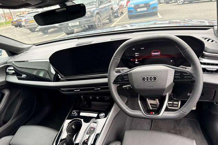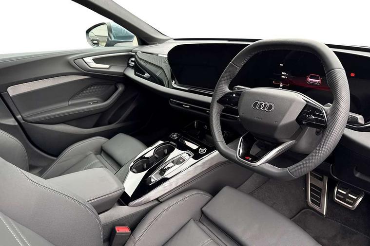 Adaptive cruise control, Advanced driver attention and fatigue montior, Audi application store, Audi assistant, Audi connect emergency call and service, Audi drive select, Audi virtual cockpit plus with 11.9" OLED colour display, Automatic start/stop system with coasting functionality, Camera based traffic sign recognition, Intersection assist, Lane departure warning, MMI navigation plus with high resolution 14.5" OLED touchscreen colour display, Park assist plus, Parking system plus with 360 display, Progressive steering with servotronic, Rear view camera, Smartphone interface, Swerve assist and turn assist, Traffic sign based speed limiter, Sports suspension lowered by 20mm, 2 USB-C ports in both the front and rear, Audi sound system impressive sound with 8 loudspeakers including centre speaker and subwoofer, 6-channel amplifier with a total output of 180 watts, DAB digital radio reception, Smartphone compartment with wireless charging, Aluminium window trims, Auto dimming rear view mirror, Body colour door mirrors, Door mirrors - electrically adjustable, heated, folding and auto dimming on both sides, Front and rear electric windows, Front door sill trims with aluminium inlays, illuminated with 'S' logo, High beam assist, LED headlights Plus incl. digital daytime running lights, turning light, all-weather light, motorway light, manouevring light and intersection light, LED rear lights pro incl. dynamic rear indicators and illuminated light strip with animated coming and leaving home function, LED third brake light, Privacy glass, Rear and side windows with heat insulating glass, Rear boot, Rear side wing doors, S Line badges on the front wings, S line bumpers, radiator grille and diffuser in phantom black and diffuser insert in matt anthracite, White rhombus logo projection light in exterior mirrors, Windscreen with acoustic glazing, 3 rear headrests, 3 seat rear bench, 3 spoke leather steering wheel with multi-function buttons with touch control, flattened on top and bottom, with S badging and contrast stitching, 3-zone automatic climate control, 40:20:40 split folding rear seat bench with centre armrest and cup holders, Comfort front centre armrest, Front and rear floor mats, Front seats with manual adjustment for position and 4-way electric lumbar support, Front sport seats with integrated headrest and S embossed logo, Headlining in black cloth, Heated front seats, i-Size child seat mounting on the front passenger side and outer rear seats, i-Size and top tether on the outer rear seats, Luggage compartment lid, electrically opening and closing, Manual steering column height and depth adjustment, Single front passenger seat, Stainless steel pedals and footrest, Steering wheel grips in perforated leather and shift paddles, Ambient lighting package plus - A5, 3x3 point rear seat belts, Driver airbag, Electric child safety locks, First aid kit with warning triangle and vests, Front emergency brake assist, Front passenger airbag, Front passenger airbag deactivation, Front side airbags with head airbag system and front interaction airbag, Hill hold assist, Seat belt monitoring with rear seat occupant reminder, Tyre pressure loss indicator, Anti theft alarm, Anti-theft wheel bolts, Keyless Go, Accent surfaces and control buttons in gloss black, Black dashboard with contrast stitching, Inlays in matt brushed aluminium with linear embossing, anthracite, Softwrap in leatherette with contrast stitching, Upper and lower interior elements in leatherette, Tyre repair kit,