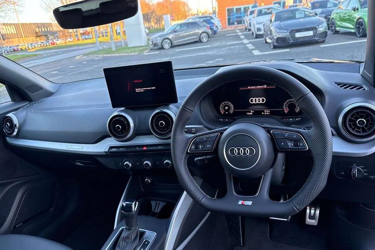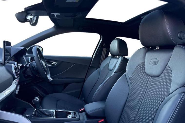 3D map display, Audi connect navigation and infotainment includes innovative services, Audi connect remote and control connects your vehicle to your smartphone, Audi drive select: S tronic - power steering assistance + engine + gearshift (modes: comfort, auto, dynamic, efficiency, individual), Audi smartphone interface - Apple carplay/Android Auto, USB connect, 2xSDXC card readers, voice control for navi, telephone, music and 3rd party apps, Audi virtual cockpit, Automatic start/stop system with recuperation, Bluetooth interface includes bluetooth audio streaming, Camera based traffic sign recognition, Cruise control, Distraction and Fatigue warning, E-call, Jukebox hard drive memory for music (10GB), Lane departure warning, MMI navigation plus with 8.8" touchscreen, Natural voice recognition, Power operated tailgate, Progressive steering, Rear parking sensors, Sport suspension, 6 passive loudspeakers, DAB Digital radio, USB type C port, Audi beam, Auto dimming rear view mirror, Black window trims, Bumper in full body colour paint finish, Electrically adjustable, folding, auto dimming and heated door mirrors with integrated LED side indicators, Front windscreen with grey tinted sunband, LED daytime running lights, LED headlights with dipped beam, high beam, position lights, indicators, LED rear lights, LED third brake light, Privacy glass - dark tinted rear and rear side windows from B-pillar backwards, Rear side wing doors, Rear wiper, Variable front intermittent wipers, Wheel arch trims in manhattan grey, 12V socket in front, 3 seat bench in 2nd row, 3 spoke flat bottomed multi-function leather sport steering wheel with gear shift paddles with S logo, 4-way electric lumbar support for front seats including manual seat height adjustment for both front seats, 60/40 split folding rear seat bench, Black carpets, Black cloth headlining, Front and rear head restraints, Front centre armrest, Front sport seats, Front/rear floor mats, Height/reach adjust steering wheel, Illuminated door sill trims with S logo, ISOFIX child seat mounting in front passenger and rear outer seats, Manual air conditioning, Single front passenger seat, Stainless steel pedals, Black styling pack - Q2, 3x3 point rear seatbelts, 6 airbags - Front, curtain and front side airbags, Electromechanical parking brake, Electronic stabilisation control including ABS, ASR and EDL, Front passenger airbag deactivation, Hill hold assist, Pre-sense front with pedestrian recognition, Seatbelt monitoring, Tyre pressure warning light with visual and acoustic warning, Warning triangle and first aid kit, Anti theft wheel bolts, Electronically operated child locks, Remote central door locking, Thatcham category 1 alarm, Aluminium interior element, Black dashboard, Gloss black centre console, Matt brushed aluminium trim inlays, Tool kit,