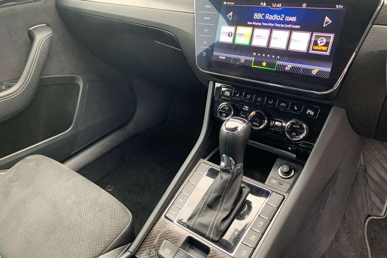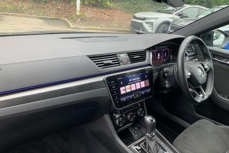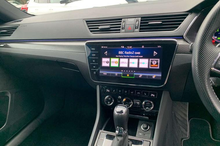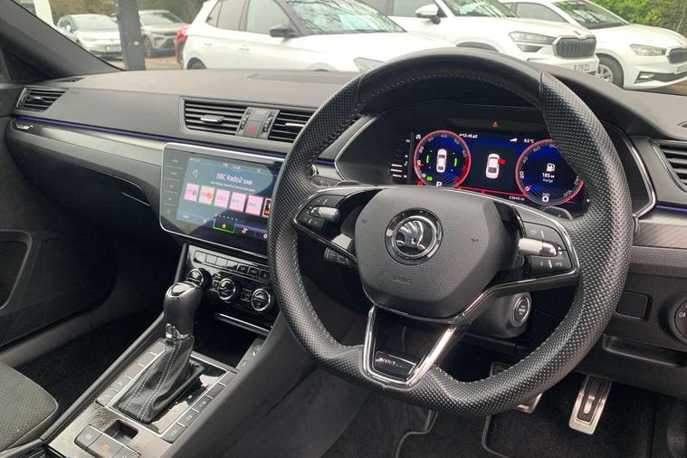 Bluetooth system, CareConnect and Emergency Call, Columbus HDD satellite 3D map navigation with 9.2" colour touch screen, web radio, integrated Wi-Fi, Driver fatigue sensor, Front assist with pedestrian protection, Progressive dynamic steering, Stop/start engine system and energy recovery, Virtual cockpit, Voice control system, Wireless smartlink apple carplay, SmartLink+ android auto, XDS+, 2 USB ports, Bolero radio with 8" touchscreen display, DAB Digital radio, 3rd brake light, Aero front windscreen wipers with intermittent function, Auto dimming rear view mirror, Black rear badge, Body colour door handles, Cornering front fog lights, Electrically adjustable heated and folding door mirrors with memory function, Front and rear electric windows, Full matrix LED headlights with AFS LED DRL integrated with headlight washer LED rear lights(High function), dynamic indicators and lighting animation, Gloss black exterior door mirrors with sports styling including front grill, side strip and window surrounds, Gloss black grille surround with gloss black rib elements, Gloss black rear spoiler (roof), Gloss black strip between rear lights, Light assistant (coming/leaving home/tunnel light), Privacy glass, Rain sensor, Rear exhaust diffuser styling elements, Rear side wing doors, Sportline badging, 12v power point in centre console, 3 seat bench in 2nd row, Black roof headlining, Black textile floor mats, Carbon optic interior elements, Electric auxiliary air heater, Front and rear footwell illumination, Front armrest with storage box, Height adjustable front and rear head restraints, Ice scraper, Illuminated and cooled glovebox, Interior lights with control switches, Isofix child seat fittings on outer rear seats, LED front and rear reading lights, Microsuede/leather upholstery with silver diamond stitching sports seats, One umbrella compartments in driver door with one umbrella in drivers door, Overhead glasses storage compartment, Rear centre armrest with cupholders, Removable parcel shelf, Single front passenger seat, Split folding rear seats, Storage compartment with cover in luggage compartment side panels, Ticket holder on A Pillar, LED package plus - Superb, 3 rear seatbelts, 7 airbags - Front, front side, curtain, driver's knee airbag with front passenger deactivation switch, Driver and passenger seatbelts with warning light, Electronic parking brake, ESC including ABS, EBV, MSR, ASR, EDS, HBA, DSR, RBS, CBC, multi-collision brake (MKB) and Auto hold, Hill start assist, Power operated child lock in rear doors, Tyre pressure monitor, Alarm with interior monitoring tilt sensor and back up horn, Electronic engine immobiliser, Keyless entry and start/stop, Remote central locking with SAFE system, Third remote key,