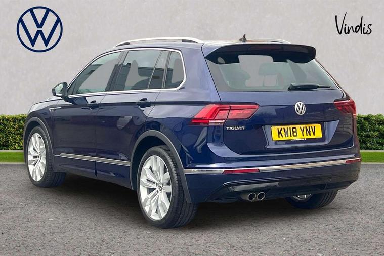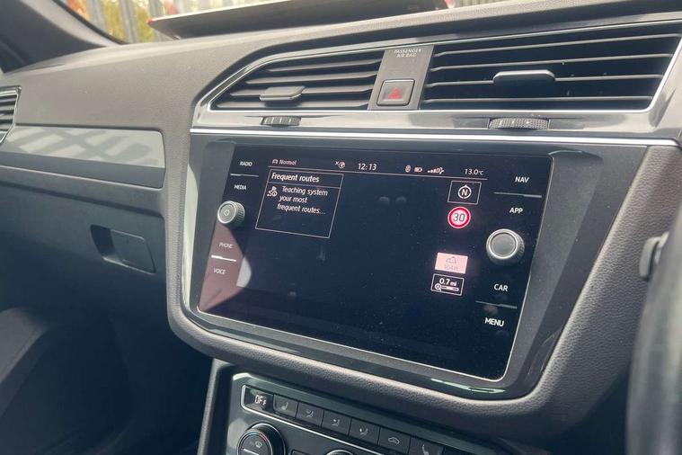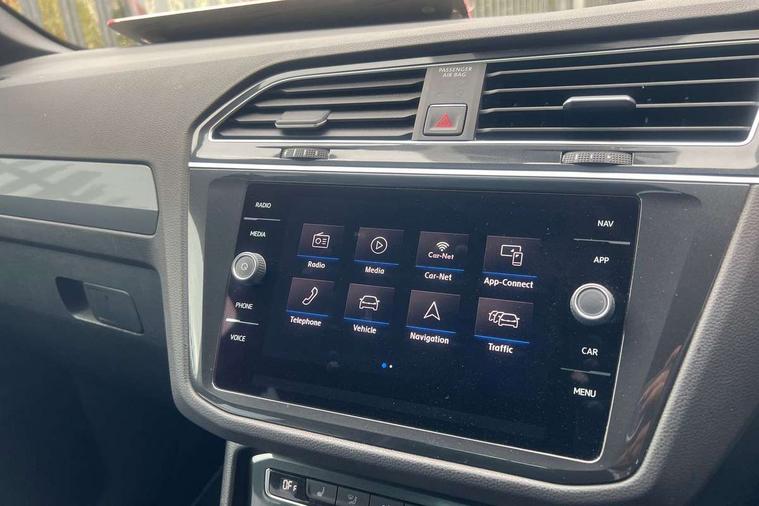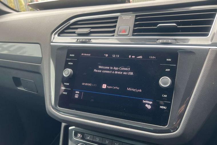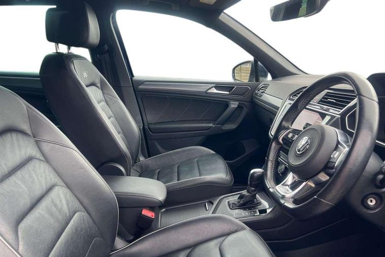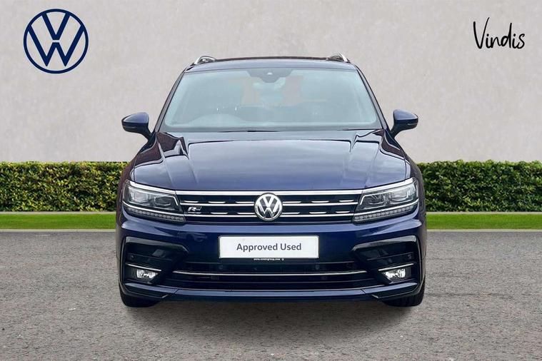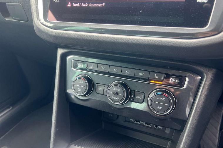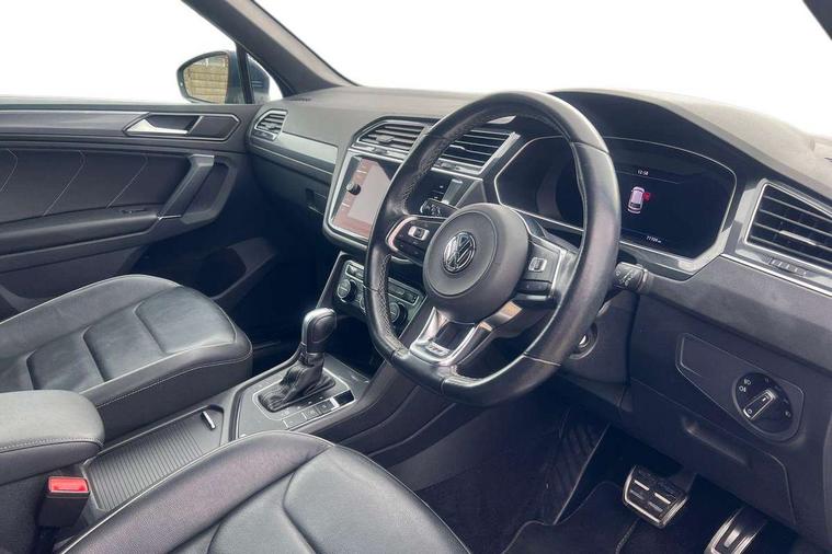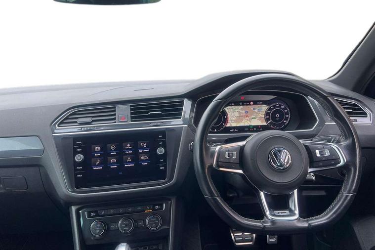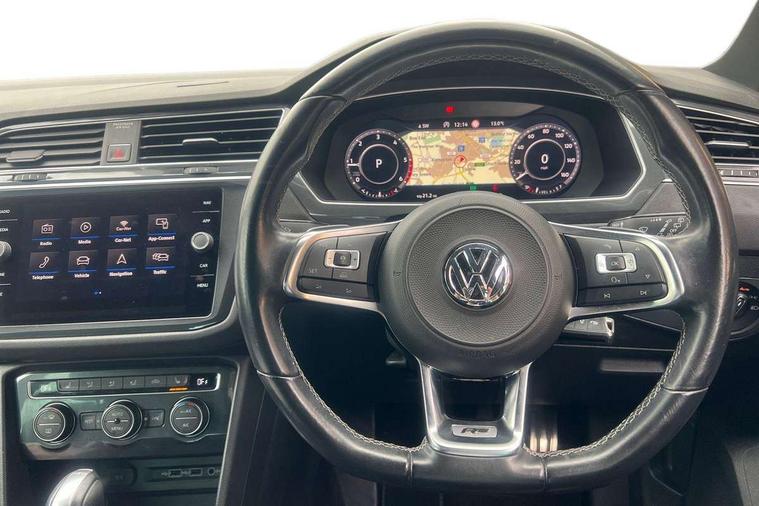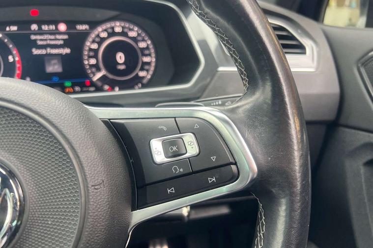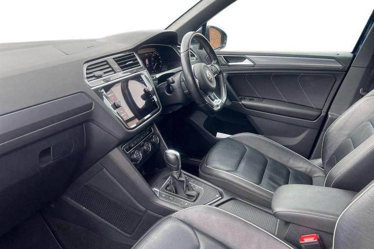 Active information display, Adaptive cruise control, App-Connect, Bluetooth phone integration system, Distance control assist, Driver profile selection, Fatigue detection system, Instrument cluster, Lane assist, Low washer fluid warning light, Outside temperature display, Progressive power assisted steering, Service interval indicator, Speed limiter, Warning lights, Diesel particulate filter, XDS electronic differential lock, 2x USB sockets in front, Aux-in socket, DAB Digital radio, MP3 compatible single CD player, SD card slot, Auto dimming interior mirror, Automatic activation of hazard warning lights, Body colour door handles, Body colour door mirrors, Body colour rear spoiler, Body colour side skirt, Body coloured bumpers, Chrome side window surrounds, Chrome trimmed radiator grille, Coming/leaving home lighting function, Dusk sensor + auto driving lights, Electric folding door mirrors, Electric heated + adjustable door mirrors, Electric panoramic sunroof with sunblind, Front and rear electric windows, Heated rear window, LED headlights with dynamic light assist daytime running lights and cornering front fog lights, LED rear lights, Piano black rear diffuser, R Line body kit, Rain sensor windscreen wipers, Rear windscreen washer and wiper with interval delay, Silver roof rails, Silver under body guard, Tinted windows (B pillar backwards), Windscreen wipers/ intermittent wipe + 4 position delay, 12V Accessory socket in centre console, 3 rear headrests, 3 zone climate control, 4 load lashing points, 40:20:40 split folding rear seats, Bag hook in luggage compartment, Black headlining, Driver + front passenger lumbar support, Foldable passenger seatback, Front + rear carpet mats, Front centre armrest with 12v socket, Front centre armrest with storage + rear 2 air vents + cupholders, Front seatback folding tables, Height/reach adjust steering wheel, Illuminated driver/passenger vanity mirrors, Illuminated scuff plates, Interior light with delay, Isofix Preparation 2 Rear child seats, Leather gear knob, Leather multifunction steering wheel with paddle shift, Load through provision with 2 cupholders when folded, Lockable cooled glovebox, Luggage compartment lighting, Luggage compartment side storage, Map pockets on front seats, Passenger seat height adjuster, Rear cupholders, Removable luggage cover, Sliding/reclining rear seats, Stainless steel pedals, Storage compartment in driver's door, Storage compartment in passenger's door, Storage compartment in rear doors, Storage tray on dashboard, Sunglasses storage, Variable boot floor, Ambient lighting pack - Tiguan, 3 rear 3 point seatbelts, ABS+EBD+Brake assist, Active bonnet, Active pedestrian safety system, Curtain airbags, Driver/Front Passenger airbags, Driver/Passenger whiplash optimised head restraints, Drivers knee airbag, DTC - Drag torque control, Electronic parking brake with auto hold, ESP with EDL + ASR, First aid kit, Front assist including city emergency braking, Front side airbags, Head airbag system, Height adjustable front 3 point seatbelts + pretensioners, Hill hold control, Passenger airbag deactivate switch, Passenger knee airbag, Pre crash system, Rear side airbags, Seatbelt warning lamp and buzzer, Two tone horn, Warning triangle, Alarm with interior protection, Electronic engine immobiliser, Remote central locking with 2 remote folding keys, Aluminium decorative inserts, Chrome door trim inserts, 20" Suzuka alloy wheels + anti theft wheel bolts, Steel space saver spare wheel,