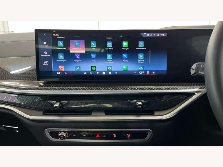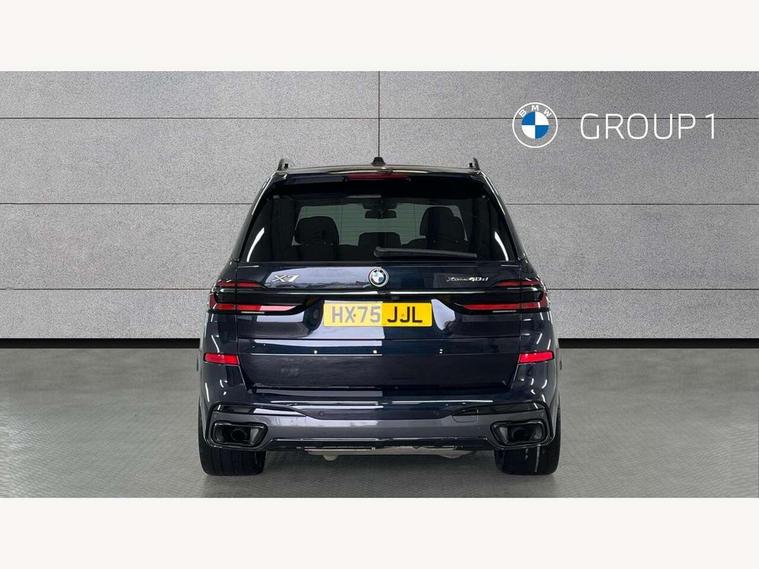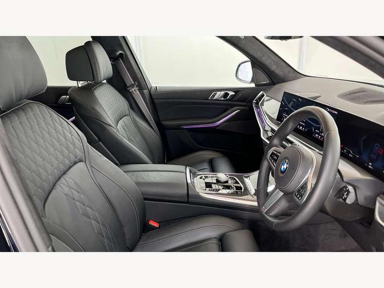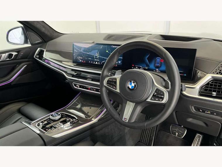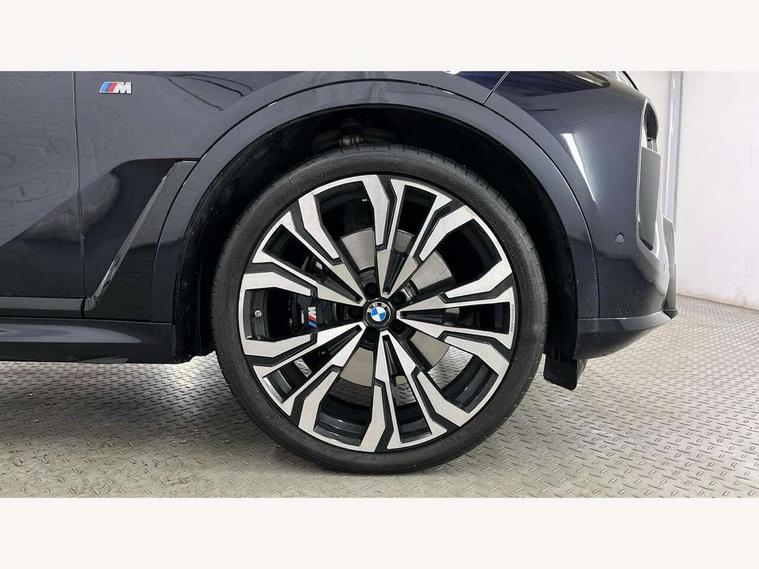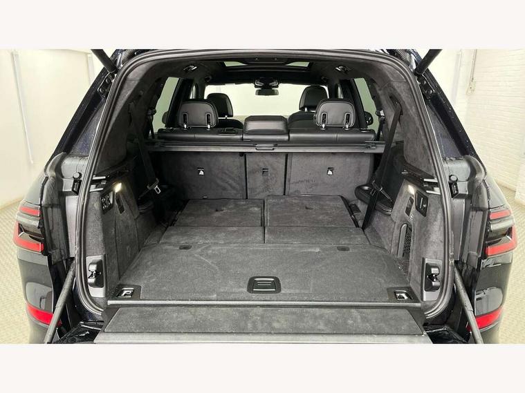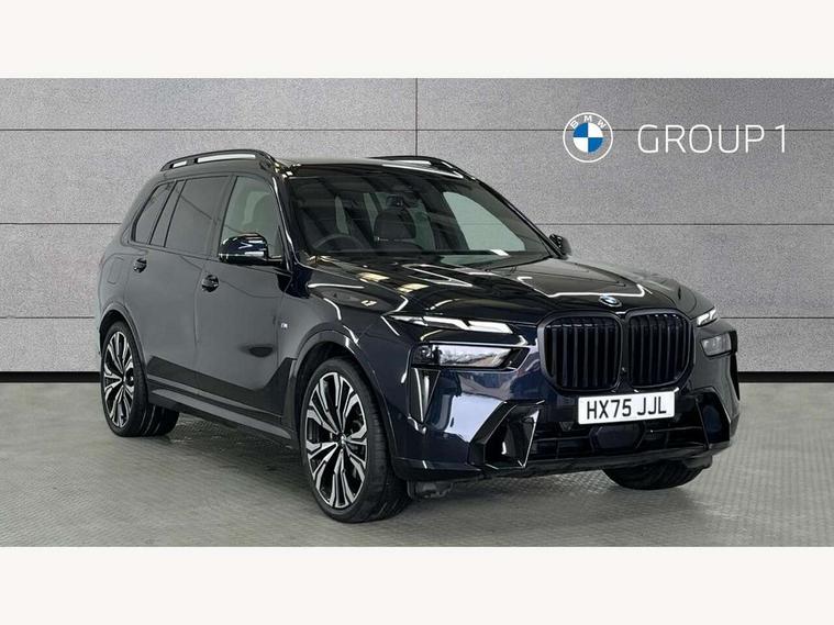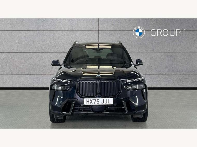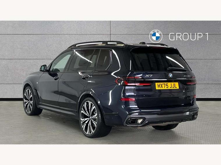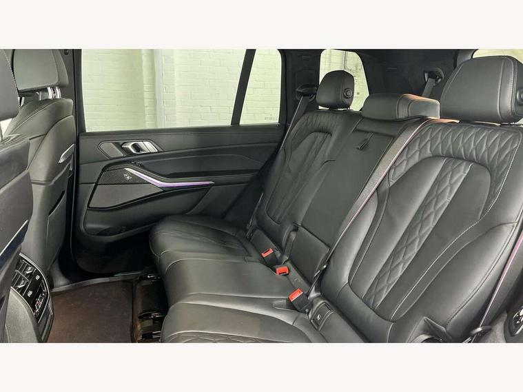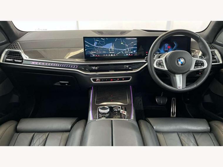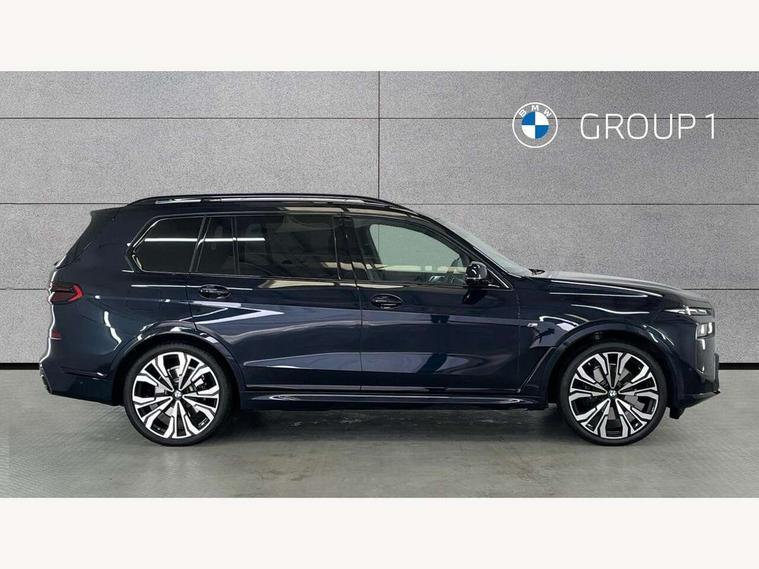 2 rear USB-C ports, Attentiveness assist, Automatic start/stop function, Automatic tailgate operation, BMW ConnectedDrive online services, BMW Drive recorder, BMW gesture control, BMW Teleservices, Brake pad wear indicator in front and rear, Condition based service, Integrated owner's handbook, Live Cockpit Professional with head up display including 12.3" instrument cluster and 14.9" central display, Parking assistant pro including reversing assistant, PDC, lateral parking aid, reversing assist camera, parking drive off monitoring, 48V Mild hybrid technology, 8 speed automatic with steptronic transmission including automatic hold function and gearshift paddles on the steering wheel, Drive experience switch with comfort mode + ECO PRO + sport mode, Permanent all wheel drive, 2x Front USB (1x USB-C, 1x USB-A), DAB radio, Personal eSim, Acoustic glazing, Adaptive air flap control bars in high gloss black, Air breather and door claddings in high gloss chrome, Body coloured wheel arches, Dynamic brake lights with LED technology, Electrically adjustable and heated aspheric folding side mirrors with auto dimming, electric fold in function, automatic parking function, Exterior and central air inlets in front bumper painted pearl chrome, Follow me home headlight function, Frameless interior mirror, Front and rear electric windows, Heated windscreen washer nozzles, High beam assist, High gloss black shadow line roof rails, High gloss black shadowline trim in side/window frame, window recess cover, window guide, B and C pillar, mirror triangle, mirror base, mirror frame, Integrated turn indicators (door), LED daytime running lights, LED rear lights, LED third brake light in rear spoiler, Rain sensor with automatic headlight activation and windscreen wiper control, Rear side wing doors, Sump guard front and rear painted in silver, Trailer stabilisation logic, 12V - Power sockets with 2x centre console and 1x luggage compartment, 2 seat bench in 3rd row, 2x cupholders in front, rear centre armrest and two in third row seats, 3 seat bench in 2nd row, 3 spoke M leather multifunction steering wheel, 40:20:40 split folding rear seat backrests, Ambient lighting strip in the instrument panel with illuminated, Armrest in front centre console, Compartment in front of cupholder, Driver and front passenger sunvisors with illuminated vanity mirrors and ticket holder, Electrical steering column with adjustable height and length with activation and control on the steering column, Entry sills with illuminated M inscription, Fold down flush into floor of luggage compartment 50:50, Front and rear colour co-ordinated with all standard carpet colours, Front and rear door pockets, Front and rear side armrests integrated into door trim, Front seat back pockets, Grab handles, Height adjustable front headrests, Height adjustable rear headrests, Lockable glove compartment, Nano filter, Single front passenger seat, Soft close doors, Storage tray and compartment with lid in centre console, Wireless charging tray, Additional storage compartment pack - X7, Ambient light interior pack - X7, Connected Package Professional - X7, Interior lighting pack - X7, Luggage compartment pack - X7, M aerodynamics pack - X7, M Sport pack - X7, 3 point seatbelts on all seats, front pyrotechnic belt tensioners, stopper and belt force limiters, front and outer rear seats, Acoustic protection for pedestrians, Active protection, Airbag - Front driver and passenger, side airbags and Head airbags, Anti lock braking system (ABS) with cornering brake control, BMW emergency call, Child seat ISOFIX attachment rear outer seats in 2nd row and both seats in 3rd row includes top tether, Comfort access system with digital key plus, Comfort cushion seats for outer seats in 2nd row, Crash sensor inclu activation of airbags, interior light, safety battery terminal clamp, hazard warn flasher, unlock doors, deactivation of fuel pump, DSC - Dynamic Stability Control, Dynamic Traction Control - DTC, Electromechanical parking brake with automatic drive away release and auto hold function, Front and rear brake discs with interior ventilation, Hill descent control, Integrated braking system, Manual child lock in rear doors, PC iBrake PostCrash approach control warning with light braking function, Tyre pressure monitoring system, Tyre pressure sensors, Variable torque distribution, Warning triangle and first aid kit, Alarm, Central locking including 2 vehicle keys with integrated emergency key, Engine immobiliser, Locking wheel bolts, Galvanic embellisher for controls,