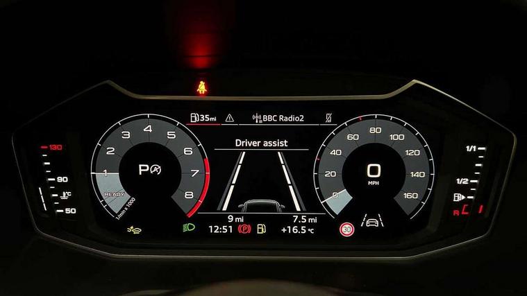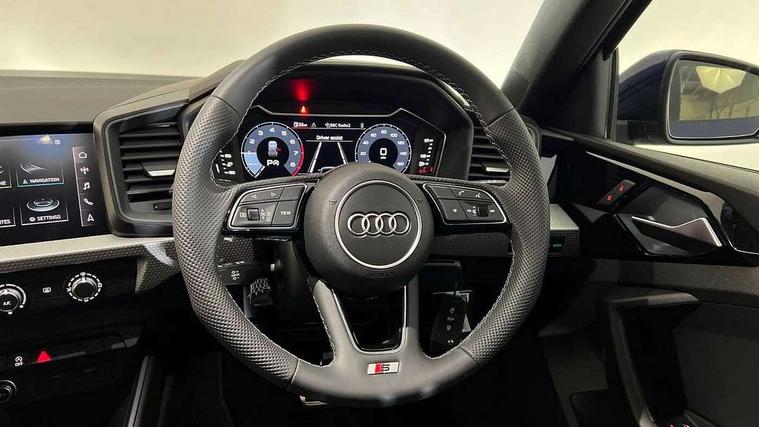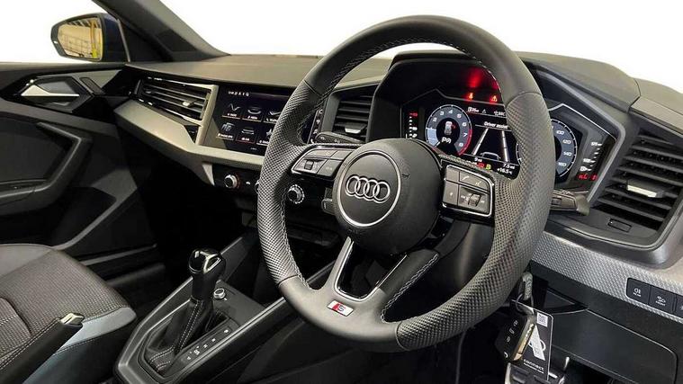 10.25" Digital instrument cluster display classis style instrument dials + speed, odometer, time, outside temperature, telephone menu + fuel level warning, Advanced driver attention and drowsiness monitor, Audi connect emergency call and service, Audi drive select, Audi remote connect and control, Bluetooth interface, Camera based traffic sign recognition, Cruise control, Driver's information system, Electromechanical power steering, Lane departure warning system, Rear parking sensor, Service interval indicator, Smartphone interface, Speed limiter, Start stop system with recuperation, Voice control system, Washer fluid level indicator, Sports suspension, 2 x USB type C connection points, 6 loudspeakers, DAB Digital radio, MMI radio plus with 10.1" colour MMI display screen and MMI touch, Auto dimming rear view mirror, Body coloured door mirrors, Door sill trims with aluminium inlays and S line logo in front, Electric front and rear windows, Electrically adjustable, heated, folding door mirrors with integrated LED side indicator, Front side air inlets in grained matt black and C frame in anthracite black, Headlight cleaning system, Heat insulating glass windscreen and side windows, Heated rear windscreen, High level LED brake light, LED daytime running lights, LED headlights with range control LED rear lights + dynamic rear indicators, Light and rain sensors, Privacy glass, Radiator grille and rear diffuser in matt anthracite black, Radiator protective grille frame in matt aluminium silver, Rear fog lights, Rear side wing doors, Rear wiper, Side front spoiler lips in grained matt black, 12V socket in centre console with two cup holders, 3 rear seats with headrests, 3 seat bench in 2nd row, 3 spoke leather multi-function plus steering wheel features S badging and grips in perforated leather with contrast stitching, 40:60 Split folding rear seat or fully collapsed, Black carpets, Black cloth headlining, Front and rear velour black floor mats with contrast stitching in fine silver, Front head restraints, Front passenger seat, Height and reach adjustable steering wheel, Interior lighting includes roof module, front and rear reading lights and right luggage compartment lighting, ISOFIX child seat mounting for front passenger and outer rear seats including top tether attachment point of outer rear seats, Leather gear knob with aluminium trim, Leather handbrake grip, Manual air conditioning, Manual height adjustable for driver and front passenger seat, Manually adjustable lumbar support in front seats, Stainless steel pedals, Ambient lighting package - A1, Luggage compartment pack - A1, S line exterior styling pack - A1 Sportback, 3x3 point rear seatbelts, Audi pre-sense front with pedestrain and cyclist recognition, Brake assist function, Driver and front passenger airbag with front side and head airbags, Electronic Stability Control including ABS, EBD, ASR and EDL, Front passenger airbag deactivation switch, Hill hold assist, Manual rear child locks, Seatbelt height adjustment for front seats, Seatbelt monitoring, Tyre pressure loss indicator, Warning triangle and first aid kit, Anti theft alarm, Anti theft wheel bolts, Immobiliser, Remote control key with safelock, Aluminium trim for control switches, air vents and digital instrument cluster, Black dashboard, Silver grey inlays polygon structure in diamond paint finish, Structured grey accent surfaces insert of air vents, interior door handle recesses and centre console in quartz paint finish,