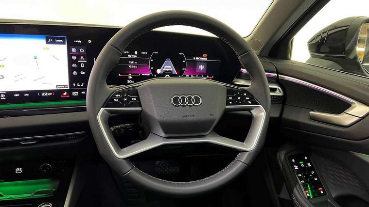 Adaptive cruise control, Attention and drowsiness detection with driver observation, Audi application store, Audi assistant, Audi connect emergency call and service, Audi drive select, Audi virtual cockpit plus with 11.9" OLED colour display, Automatic start/stop system with coasting functionality, Camera based traffic sign recognition, Convenience key, Intersection assist, Lane departure warning, MMI navigation plus with high resolution 14.5" OLED touchscreen colour display, Park assist plus, Parking system plus with 360 display, Progressive steering with servotronic, Rear view camera, Side assist and exit warning, rear cross-traffic assist and rear turn assist, Smartphone interface, Swerve assist and turn assist, Traffic sign based speed limiter, Comfort suspension, Audi sound system impressive sound with 8 loudspeakers including centre speaker and subwoofer, 6-channel amplifier with a total output of 180 watts, DAB digital radio reception, Smartphone compartment with wireless charging, Aluminium window trims, Auto dimming rear view mirror, Body colour door handles, Body colour door mirrors, Clear glass windows, Door mirrors - electrically adjustable, heated, folding and auto dimming on both sides, Front and rear electric windows, Front door sill trims with aluminium inlays, High beam assist, LED headlights Plus incl. digital daytime running lights, turning light, all-weather light, motorway light, manouevring light and intersection light, LED rear lights pro incl. dynamic rear indicators and illuminated light strip with animated coming and leaving home function, LED third brake light, Rear and side windows with heat insulating glass, Rear boot, Rear side wing doors, Sport bumpers, radiator grille and diffuser in scandium grey and diffuser insert in matt selenite silver, White rhombus logo projection light in exterior mirrors, Windscreen with acoustic glazing, 3 rear headrests, 3 seat rear bench, 3-zone automatic climate control, 40:20:40 split folding rear seat bench with centre armrest and cup holders, Comfort front centre armrest, Expedition cloth upholstery, Front and rear floor mats, Front seats with manual adjustment for position and 4-way electric lumbar support, Front sport seats with integrated head restraints, Heated front seats, i-Size child seat mounting on the front passenger side and outer rear seats, i-Size and top tether on the outer rear seats, Increased charging capacity for USB ports 2X100 Watts in rear, 2X60 Watts in front, Luggage compartment lid, electrically opening and closing, Manual steering column height and depth adjustment, Rock grey cloth headlining, Single front passenger seat, Twin spoke leather steering wheel with multi-function buttons with touch control, shift paddles and trim in chrome look, Interior lighting in white package pro - A5, 3x3 point rear seat belts, Driver airbag, Electric child safety locks, First aid kit with warning triangle and vests, Front emergency brake assist, Front passenger airbag, Front passenger airbag deactivation, Front side airbags with head airbag system and front interaction airbag, Hill hold assist, Seat belt monitoring with rear seat occupant reminder, Tyre pressure loss indicator, Anti theft alarm, Anti-theft wheel bolts, Digital key, Keyless Go, Accent surfaces and control buttons in matt black, Black dashboard with contrast stitching, Inlays in laser structure, black, Softwrap in impressum cloth, Tyre repair kit,