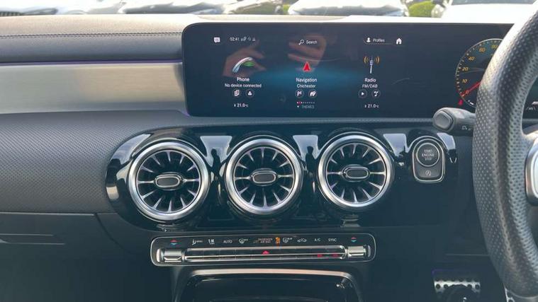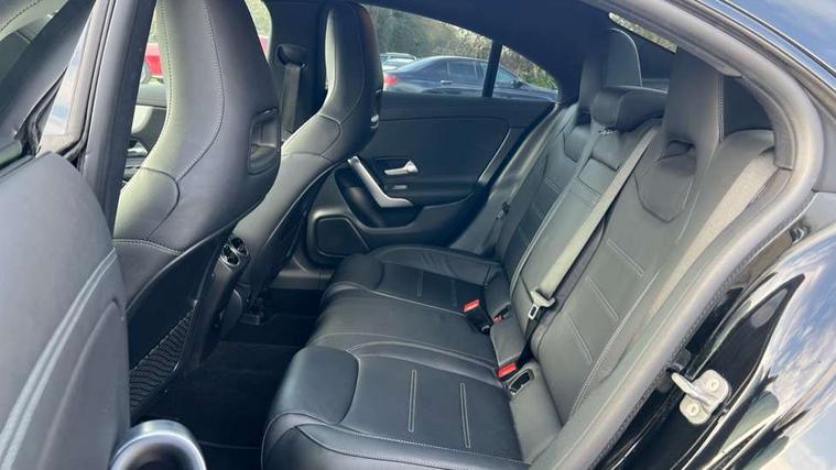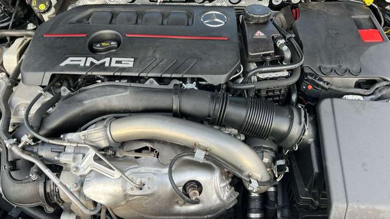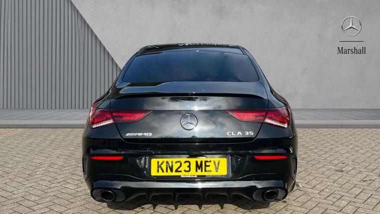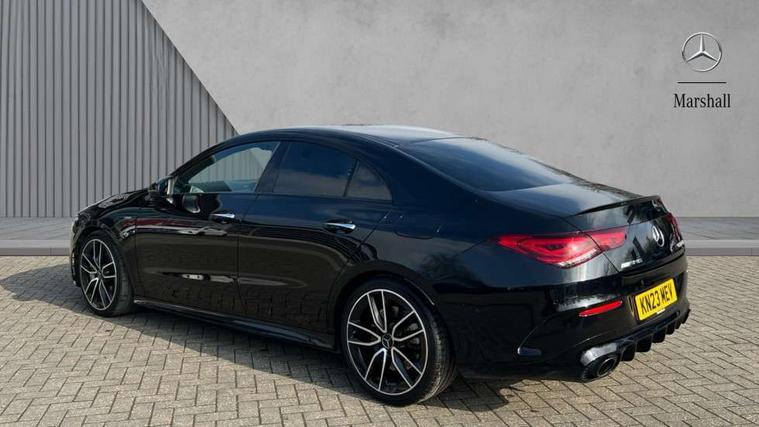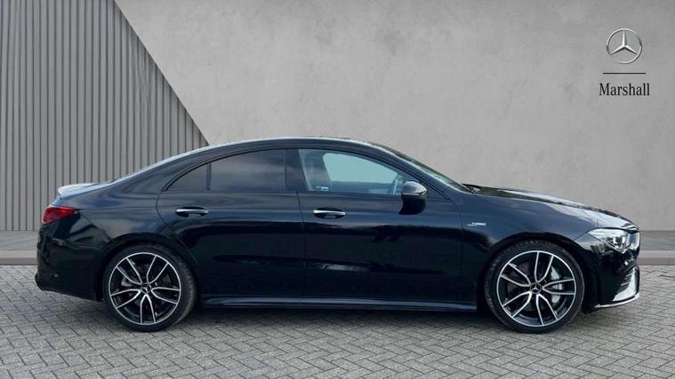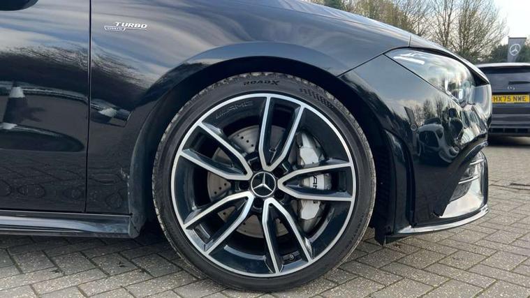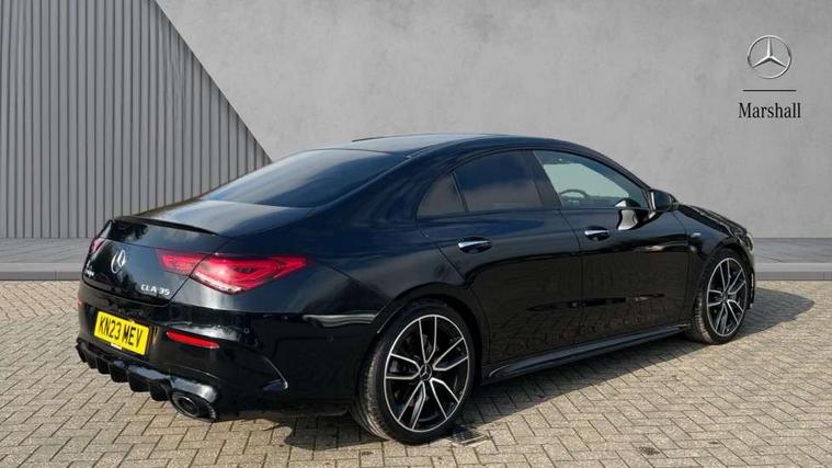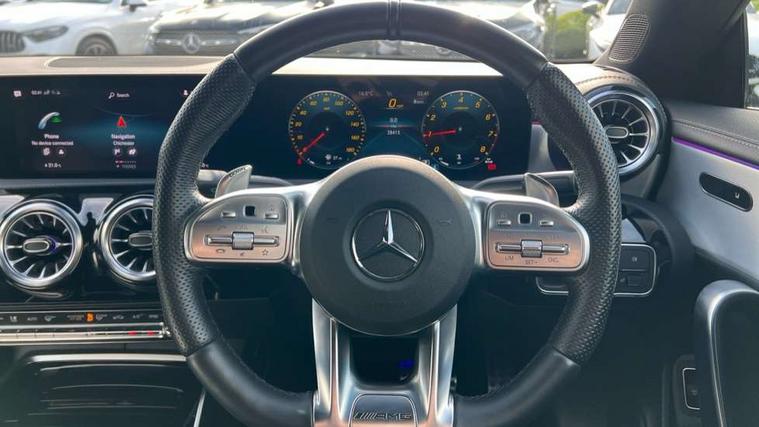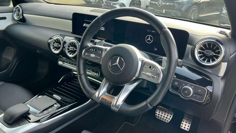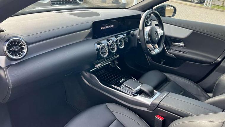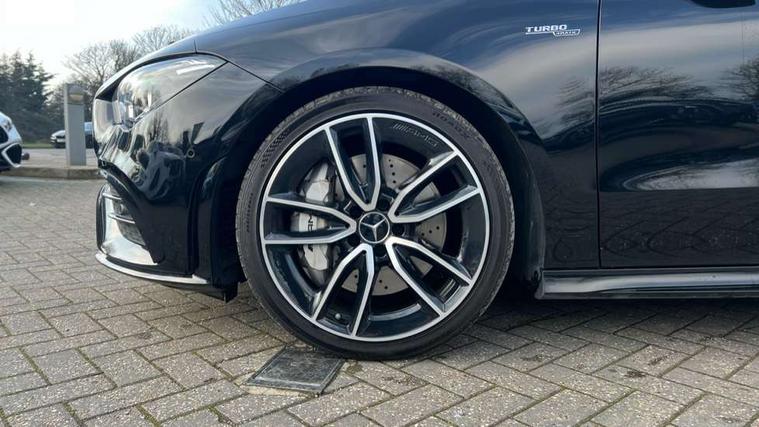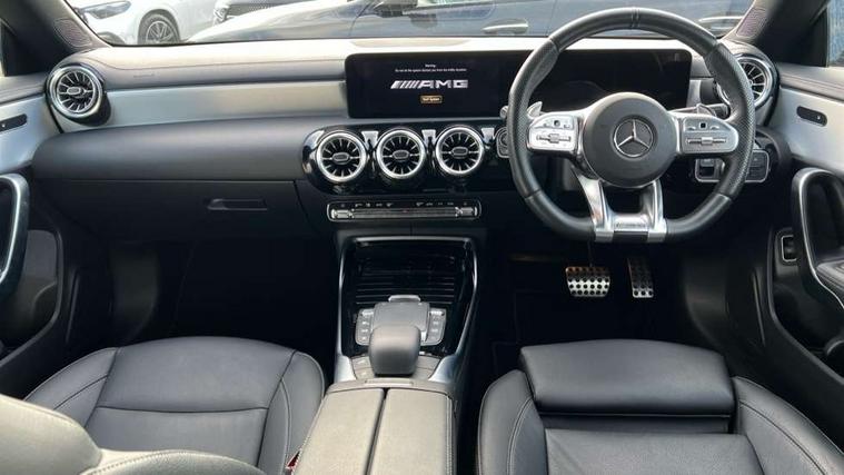 10.25 inch Instrument display with digital cockpit, 10.25 inch touchscreen central media display, Active lane keeping assist, Attention assist - Monitors steering behaviour and long journey fatigue, Bluetooth connection, Car wash mode, Cruise control with limiter, Direct steer system with speed sensitive power steering, DYNAMIC SELECT with driving programs (Slippery, Comfort, Sport, Sport+ and Individual), ECO start/stop function, Fluid level warning indicator for fuel, oil, coolant and washer fluid, Hard-disk navigation, Hey Mercedes Voice activation, Lamp failure indicator, Mercedes me connect including emergency call system, accident recovery, breakdown management and maintenance, Mercedes me remote services, Outside temperature gauge, Owners manual and service booklet in English, Pre-installation of private car share, Preinstallation for Mercedes Benz link, Radio aerial integrated into front and rear windshields, Service indicator (ASSYST), Smartphone integration with Apple CarPlay and Android auto, Speed limit assist, Trip computer in multifunction display with current consumption indicator, AMG suspension, Rear axle multi-link, DAB digital radio tuner, MBUX multimedia system, Mid-range sound system, USB (type C) ports (2) in stowage compartment and 1 in front of centre console, Adaptive brake lights, AMG body styling with AMG front apron and rear apron and visible exhaust tailpipe in chrome trim elements, AMG bodystyling side skirts, AMG Front apron with flics as air deflector elements on the outer air intakes, AMG radiator grille with twin blade lamella and AMG Lettering, AMG Rear apron with specific diffuser look with four vertical fins and two round chrome plated tailpipe trim elements with a diameter of 90 mm, AMG Sports exhaust system with two round tailpipes attached in rear apron, Automatically controlled exhaust flap, Beltline strips in High gloss Black, Body colour bumpers, Body colour door handles, Chrome weather strip, Electric windows, Electrically adjustable and heated door mirrors with integrated LED indicators, Front splitter and trim elements on the louvres in the outer air inlets in silver chrome, Front wings with TURBO 4MATIC lettering, Headlamp assist automatic headlamp activation, Heated glass rear windscreen + timer control, High level LED third brake light, Interior mirror with black reading lamps and frameless, LED high performance headlamps with integrated LED daytime running lights, LED tail lamp, Privacy glass with dark tinting on rear side windows and rear window, Rain sensing windscreen wipers with two sensitivity settings, Rear boot, Rear fog lamp, Rear side wing doors, Variable front intermittent wipers, Window line trim strip in high gloss black, 3 seat bench in 2nd row, 40:20:40 split folding rear seats with backrest, Air conditioning - Two zone thermotronic luxury automatic climate control with display, Air vents with surround in silver chrome, AMG Performance steering wheel in nappa leather, Automatic child seat recognition sensor, Black roof lining, Brushed stainless steel sports pedals with rubber studs, Floor mats with stitched AMG lettering, Front centre armrest with stowage, Heated front seats, Illuminated front door sills with changeable cover, Illuminated glove compartment stowage, Interior lighting - 64 colour Ambient lighting, Luggage net on driver/front passenger seat backrest, Manually adjustable front seats, Manually height and reach adjustable steering column, Rear armrest with two integral cup holders for drinks, Rear head restraints, Silver coloured aluminium gear shift paddles on steering wheel, Single front passenger seat, Sport seats with fixed head restraints, Stowage compartment in centre console with retractable cover, Sunvisors with illuminated vanity mirrors, Touchpad on center console, Twin front cupholders, Two outer rear seat isofix and top tether child seat fixing points, AMG Night package - CLA 35/45, Keyless go comfort pack - CLA, Light and sight pack - CLA, Mirror pack - CLA, Parking package - CLA, Seat comfort pack - CLA, Active bonnet pedestrain safety measure which detects an impact and raises bonnet by 65mm, Active brake assist includes forward collision warning system with autonomous braking, Adaptive brake assist with hold function and hill start assist, Anti lock braking system (ABS) with brake assist, Black seat belts, Bonnet with power domes, Brake pad wear warning indicator, Childproof locks manually operated for rear doors and electrically operated for rear power windows, Crash responsive emergency lighting, Driver and front passenger head and sidebags, Driver and front passenger windowbags, Drivers knee airbag, Dual stage driver and front passenger airbags, Electric parking brake, Electronic stability programme with acceleration skid control, ESP curve dynamic assist, Front and rear seatbelt reminder, Front brake calipers with AMG lettering, Front passenger seat occupancy sensor, Perforated front brake discs, Three point rear seat belts, Tyre pressure monitoring system, Warning triangle and first aid kit, Guard 360 degree guard vehicle protection system with immobiliser and interior protection, Remote central locking and crash sensor with emergency opening function, Light aluminium with longitudinal grain interior trim, 19" AMG multi-spoke high gloss black painted light alloy wheels with high sheen finish, Summer tyres, Tirefit tyre sealant kit, Wheel arches wider for AMG wheels,