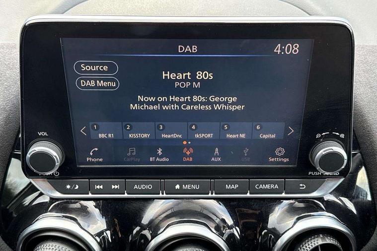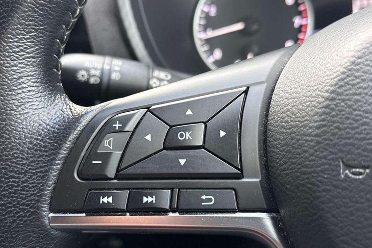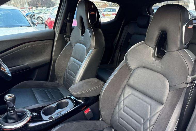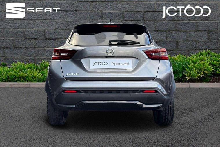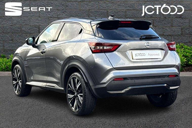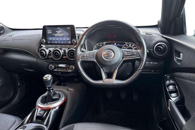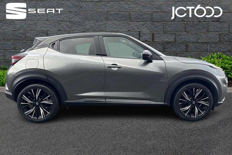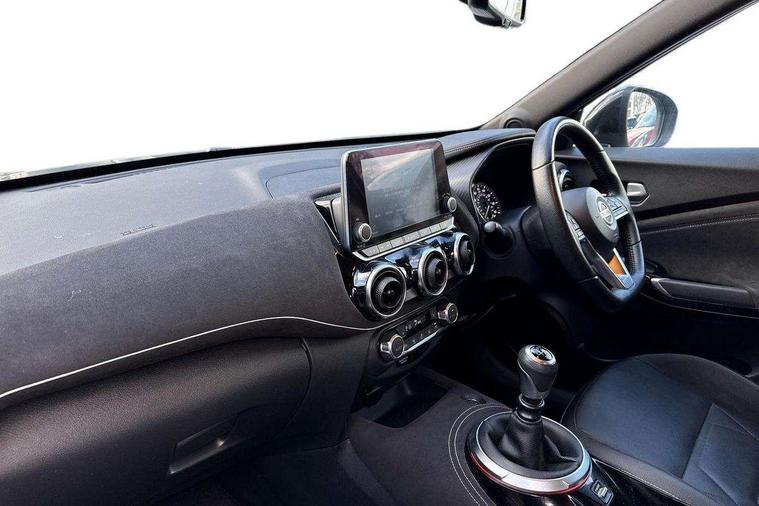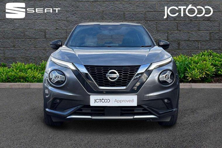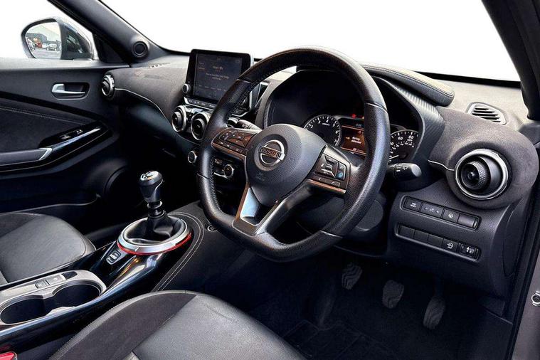 7" full colour TFT screen combimeter, 8" infotainment colour display with touch screen, Apple CarPlay and Google Android auto, Drive modes select (Eco, normal and sport), Emergency and breakdown call, Front parking sensor, Idle start/stop system, Intelligent lane intervention, Lane departure warning system, Nissan connect nav with TomTom traffic, Nissan connect services and Wifi connection, Outside temperature sensor, Power Steering, Rear parking sensor, Traffic sign recognition, Trip computer, Gasoline particulate filter, Bluetooth system, USB, Aux-in and 12V socket, Bose personal plus audio system with 8 speakers(4 speakers and 2 headrest speaker for driver and passenger seats), Bose personal sound stage control, DAB Digital radio, Front lower bumper painted in silver finisher, Rear console USB port, Auto dimming interior rear view mirror, Automatic hazard signal with emergency stop signal, Body colour bumpers, Body colour door handles, Electrically adjustable door mirrors with integrated indicators, Follow me home headlights, Front and rear electric window with one touch driver and passenger window, Heated and auto folding door mirrors, High beam assist, LED daytime running lights, LED front fog lights, LED headlamps, LED rear fog lamp, LED rear lamps, Rain sensor windscreen wipers, Rear privacy glass, Rear spoiler, Rear wiper, Thermaclear heated windscreen, Three blink turn signal, 3 height adjustable rear headrests, 60/40 split folding rear seat, Automatic climate control, Card holder on driver sunvisor, Door ambient lighting, Driver and passenger sliding and reclining seats, Driver seat back pocket, Driver side rear coat hanger, Driver/passenger sunvisors and illuminated vanity mirrors, Front and rear cabin lighting, Front armrest, Front door pockets with bottle holders, Front head restraints, Front passenger isofix child seat anchorage point, Front/rear passenger grab handles, Gear console ambient circle lighting, Grey synthetic leather kneepad, Heated front seats, Height adjustable driver's seat, Height adjustable passenger seat, Internal chrome door handles, Leather gearshift knob, Leather steering wheel, Luggage board, Luggage space lighting, Monoform sporty seats, Multifunction steering wheel, Passenger seat back pocket, Rear door bottle holders, Telescopic steering wheel adjustment, Two cupholders in front centre console, Two rear isofix child seat anchorage points with top tether, Voice recognition switch on steering wheel, Welcome light and console tray ambient lighting, Advanced safety shield pack - Juke, ABS with EBD and brake assist, Active ride control, Active Trace Control, Driver and passenger airbags, Driver and passenger side airbags, Electric handbrake with auto hold function, Electronic Stability Programme (ESP), Front and rear curtain airbags, Height adjustable seatbelts, Hill start assist, Intelligent emergency braking with pedestrian and cyclist recognition, Seatbelt reminder for driver/front passenger and rear seats, Single tone horn, Three 3 point rear seatbelts, Traction control, Tyre pressure monitoring system, VDC Dynamic Vehicle Control, Ventilated rear brake discs, Alarm, Immobiliser, Intelligent Key with push button starter, Remote central locking, 19" Akari alloy wheels,