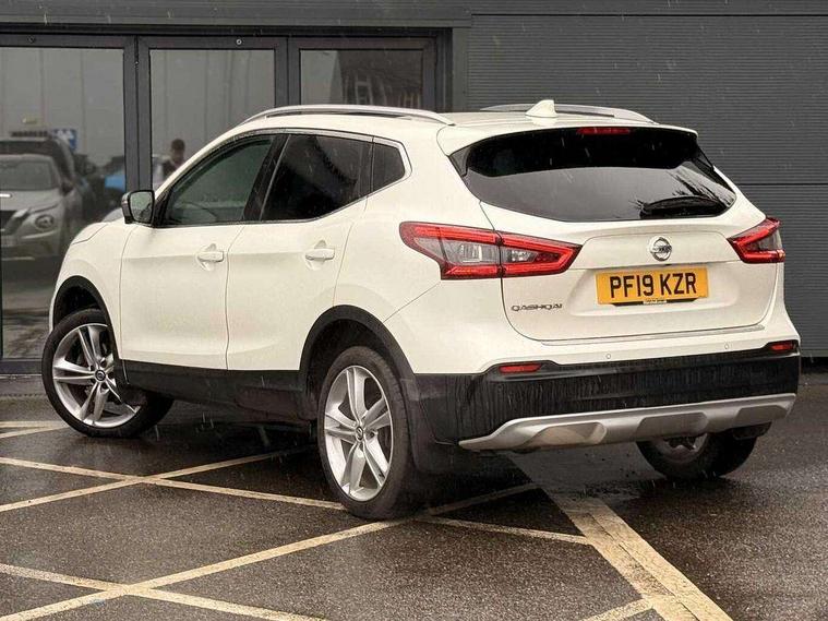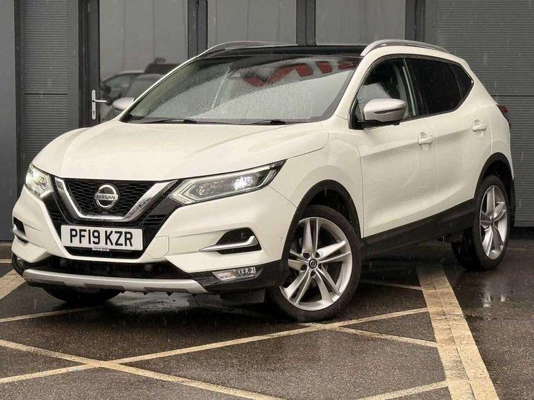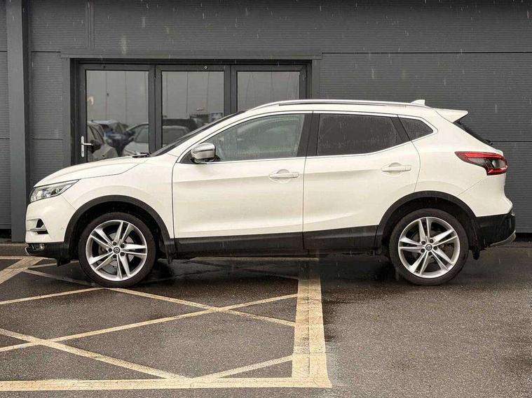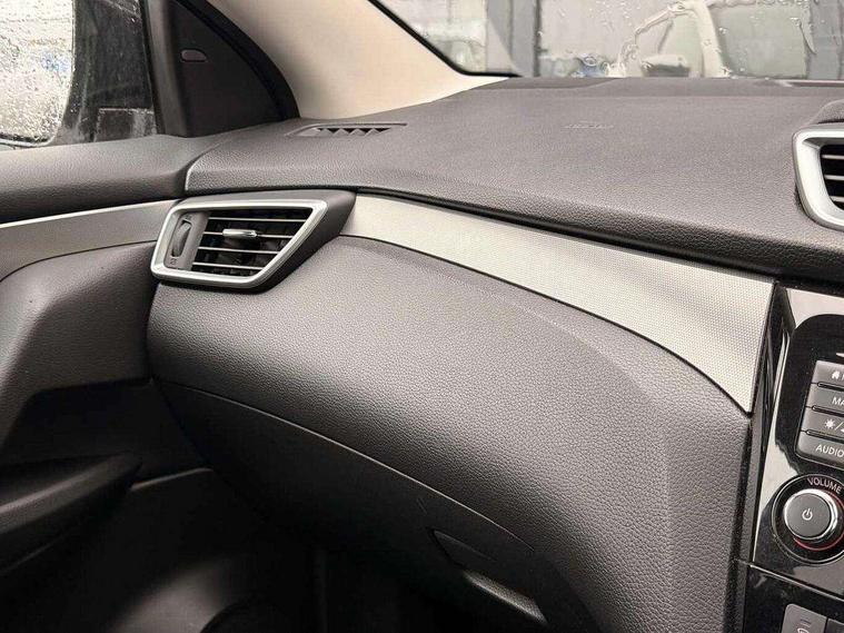 Advanced drive assist display 5'' TFT coloured screen, Android Auto, Apple CarPlay preparation, Bluetooth connectivity, Electric speed sensitive power steering, Front parking sensors, Intelligent around view monitor, Intelligent parking assist, Lane departure warning system, Nissan connect evo 7" touchscreen navigation and entertainment system, Normal or sport selectable steering, Outside temperature sensor, Push button starter, Rear parking sensors, Rear view camera, Service interval indicator, Smartphone integration, Stop/start system, Tomtom connected services, Traffic sign recognition, Trip computer, Voice control system, Nissan chassis control (intelligent ride control, intelligent trace control, intelligent engine brake), 6 speakers, AM/FM radio, CD audio system, Aux-in socket, DAB Digital radio, Steering wheel mounted audio controls, USB port, Anti dazzle rear view mirror, Auto wipers, Body colour bumpers, Body coloured door handles, Chrome window surround, Daytime running lights dip function when turn signal applied, Electric folding door mirrors, Electric front and rear windows with one touch illuminated window controls, Electric front/rear windows, Electrically adjustable door mirrors, Front fog lights, Heated door mirrors, High beam assist, Intelligent auto headlights, LED indicators in door mirrors, Matt silver roof rails, Panoramic opening glass sunroof, Privacy glass, Rear roof spoiler, Rear wiper with reverse link, Shark fin antenna, Underbody vortex generators, 2 X front 12v power sockets, 3 height adjustable rear headrests, 60/40 split folding rear seat, Ambient lighting in centre console, Boot lighting, Centre console storage box/armrest, Chrome interior door handles, Cloth upholstery, Configurable luggage board system, Dual zone climate control, Front and rear door pockets with bottle holders, Front and rear seat belt pre-tensioners with load limiters, Height adjustable front headrests, Individual rear seat reading lights, ISOFIX on outer rear seats, Leather D shaped steering wheel, Leather gear lever, Leather knee pad, Manual height adjustable front passenger seat, Manual lumbar support on passenger seat, Monoform front seats with plastic backboard, One touch electric shade, Parcel shelf stow function under luggage board, Pollen filter, Rear armrest with 2 cupholders, Synthetic leather wrapped door handle with contrasting stitching, Tilt/telescopic adjustable steering wheel, LED pack - Qashqai, Safety shield plus pack - Qashqai, 6 airbags - Driver, front passenger, curtain and side airbags, ABS, ESP, EBD and brake assist, Auto hold function, Child locks on rear doors, Electronic parking brake, Front and rear seat belt warning, Front passenger airbag deactivation, Height adjustable front seatbelts, Hill start assist, Intelligent emergency braking with pedestrian recognition, Three 3 point rear seatbelts, Tyre pressure monitoring system, Anti-theft immobiliser, Intelligent Key, Remote central locking, Thatcham Cat.1 alarm, Carbon graphite dash trim, 19" Ibiscus alloy wheels, Tyre puncture repair kit,