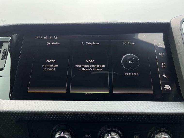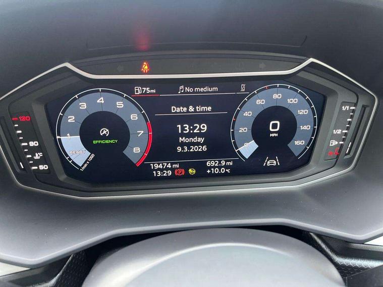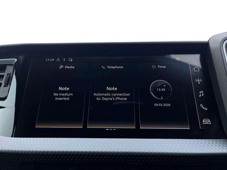 10.25" Digital instrument cluster display classis style instrument dials + speed, odometer, time, outside temperature, telephone menu + fuel level warning, Audi drive select - power steering assistance + engine, Audi smartphone interface with connect compatible smartphone via USB directly MMI display + Nav, music, third party apps controlled via MMI controller, Automatic start/stop system, Bluetooth interface, Cruise control, Driver's information system, Electromechanical power steering, Emergency e-call, Lane departure warning system, Rear parking sensor, Service interval indicator, Speed limiter, Voice control system, Washer fluid level indicator, Dynamic suspension, 2 x USB type C connection points, 6 passive loudspeakers, DAB Digital radio, MMI radio plus with 10.1" colour MMI display screen and MMI touch, Auto dimming rear view mirror, Body coloured bumpers, Body coloured door mirrors, Electric front and rear windows, Electrically adjustable, heated, folding door mirrors with integrated LED side indicator, Front side air inlets in grained matt black and C frame in anthracite black, Heat insulating glass windscreen and side windows, Heated rear windscreen, High level LED brake light, LED headlights with LED rear lights + dynamic rear indicators + headlight adjustment and high beam, turning light + LED daytime running lights, Radiator grille and rear diffuser in matt anthracite black, Radiator protective grille frame in matt aluminium silver, Rain and light sensors, Rear fog lights, Rear side wing doors, Rear wiper, Side front spoiler lips in grained matt black, 12V socket in centre console with two cup holders, 3 rear seats with headrests, 3 seat bench in 2nd row, 3 spoke leather multifunction plus steering wheel, 40:60 Split folding rear seat or folded fully, Black front and rear floor mats, Door sill trims with aluminium inlay, Driver and passenger seat with manual height adjust with forward and backwards adjustment, Front head restraints, Front passenger seat, Grey cloth headlining, Height and reach adjustable steering wheel, ISOFIX child seat mounting for front passenger and outer rear seats including top tether attachment point of outer rear seats, Leather gear knob with aluminium trim, Leather handbrake grip, Luggage compartment light with front and rear reading lights, Manual air conditioning, Manually adjustable lumbar support in front seats, Novum cloth upholstery with front sport seats, Luggage compartment pack - A1, 3x3 point rear seatbelts, Audi pre-sense front with pedestrain and cyclist recognition, Brake assist function, Driver and front passenger airbag with front side and head airbags, Electronic Stability Control including ABS, EBD, ASR and EDL, Front passenger airbag deactivation switch, Hill hold assist, Manual rear child locks, Seatbelt height adjustment for front seats, Seatbelt monitoring, Tyre pressure warning light, Warning triangle and first aid kit, Anti theft alarm, Anti theft wheel bolts and loose wheel warning, Immobiliser, Remote central locking with 2 foldaway keys, Aluminium trim for control switches, air vents and digital instrument cluster, Black dashboard, Silver grey accent areas including air vents, door handle recesses and centre console in diamond paint finish, Slate grey inlays polygon structure in fine paint finish,