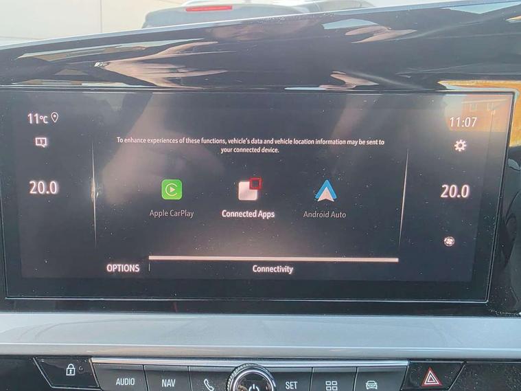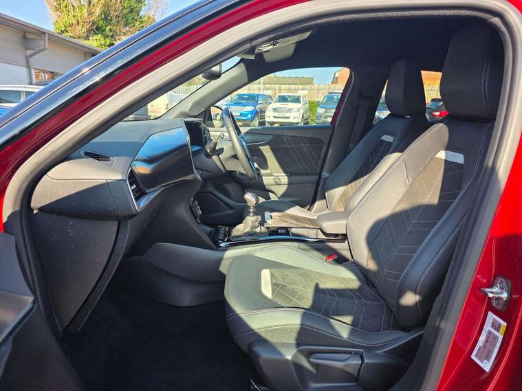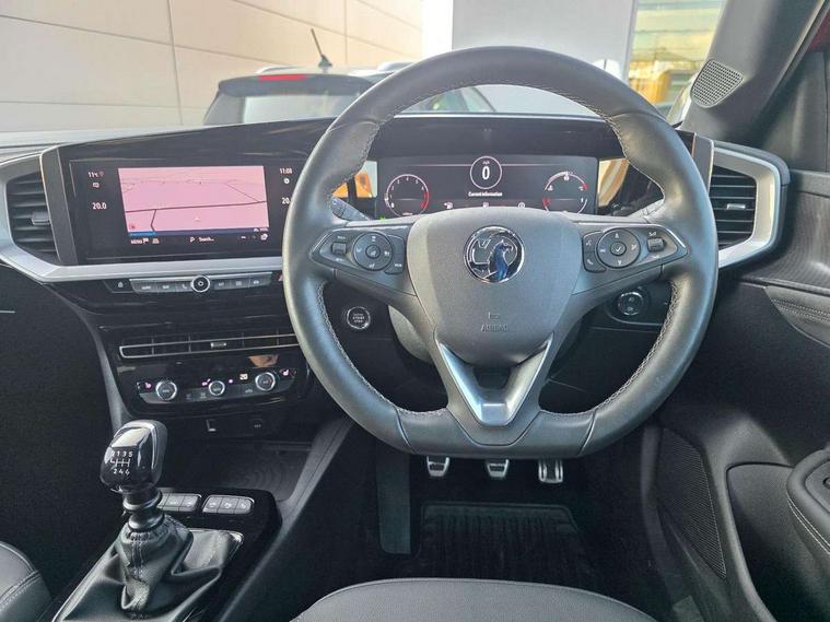 12" digital instrument cluster, Adaptive cruise control with speed limiter, Advanced Park Assist, Digital instrumentation with digital speedometer, rev counter, fuel and water temperature gauge, Driver drowsiness alert system, Driver information display with multi function trip computer, audio info, digital clock and outside air temperature with ice warning function, Engine start/stop button, EV information display, Front and rear parking distance sensors, Front camera and radar system, Gearshift up/down indication light, Lane keep assist system (LAS) with Lane departure warning system (LDWS), Lights on audible warning, Panoramic rear view camera, Power assisted speed sensitive steering, RDS with traffic programme, Side blind spot alert and flank guard, Smartphone integration compatible with Apple CarPlay and Android Auto, Speed sign recognition, Sports switch with engine sound enhancement, Start/stop system, Traffic sign recognition, Vauxhall connect with e-Call, Wireless charging for smartphone, 6 speed manual transmission, 6 speakers, AM/FM stereo radio with 36 station presets, DAB Digital radio, Flexible Roof Mounted Radio Aerial, Front USB connection, Mobile phone portal - bluetooth connect, vehicle microphone, handsfree calls, SMS read out and reply, phone book access, Multimedia Navi Pro with 10" colour touchscreen, Steering wheel mounted controls, Two rear USB sockets, Adaptive brake lights, Automatic headlamp levelling, Automatic lighting control with tunnel detection, Automatically dimming anti dazzle rear view mirror, Black door mirror housings, Black front and rear bumper inserts, Black Griffin logo and vizor frame, Black roof, Black upper window moulding, Body colour door handles, Body colour front and rear bumpers, Dark tinted rear side windows + tailgate window, Electric adjustable/heated/folding door mirrors + puddle lights, Electrically operated front and rear windows with safety auto reverse and one touch up/down facility, Hazard warning lights, Heated rear window+rear wash/wipe, High beam assist with anti glare, Integrated black tailgate spoiler, IntelliLux Matrix LED headlights with adaptive forward lighting, LED 3rd brake light, LED daytime running lights, LED front fog lamps, LED side repeat indicators, LED tail lights, Rear foglight, Rear side wing doors, Reversing light, Solar heat absorbing windscreen and windows, Two speed rain-sensitive windscreen wipers with variable intermittent wipe, Windscreen and side window demist vents, 12V Accessory socket, 3 seat bench in 2nd row, 3 spoke flat bottomed leather steering wheel with satin chrome bezel, 4 speed fan with illuminated controls, 6 way manual adjustable driver fore/aft, up/down with reclining seatback, 6 way manual adjustable front passenger fore/aft, up/down with reclining seatback, 60/40 split folding rear seat, Air recirculation system, Alcantara/leather upholstery, Alloy sports pedals, Black headliner, Cabin particulate filter - removes dust, airborne particles and pollen, Centre console with two cup holders at front and one in rear, Chrome effect interior door handles, Door pockets with two litre capacity, Driver and passenger sun visors with vanity mirror, Driver seat lumbar support and massage function, Electronic climate control (ECC), Four adjustable facia vents, Four load restraint lashing eyes, Front centre armrest with storage, Front head restraints, Front map reading lights, Front seat back storage pockets, Fully carpeted load area, Heated front seats, Heated steering wheel, Interior courtesy light, Interior tailgate handle, Luggage compartment cover, Luggage compartment lighting, Movable boot floor, Reach + rake adjustable steering column, Single front passenger seat, Three height adjustable rear seat head restraints, Twin gas assisted tailgate struts, Black Pack with badge - Mokka, 2x Isofix child seat fitting on outer rear seats, 3x3 point rear seat belts, Anti-lock braking system (ABS), Child proof locks on rear doors, Cornering brake control, Deactivation switch for front passenger front and side impact airbags, Drag torque control, Driver and front passenger airbags, front seat side impact airbags, full size curtain airbags, Electronic brake force distribution, Electronic Stability Programme (ESP), Emergency brake assist, Enhanced automatic emergency braking with pedestrian detection, Forward collision alert at all speed, Hill start assist, Inertia reel lap and diagonal seatbelts for all seats, Seatbelt unfastened audible warning and warning light, Straight line stability control, Traction control, Tyre pressure monitoring system, Electronically protected audio equipment, Engine deadlock immobiliser, Freewheeling door locks, Key left in ignition audible warning, Keyless entry and start, Locking wheel nuts, Remote control central locking, Remote control ultrasonic security alarm system, Visible vehicle identification number, Atlantis black trim inserts of front doors, Black facia with silver trim insert, Instrument panel bar in polar silver, 18" bi colour alloy wheels,