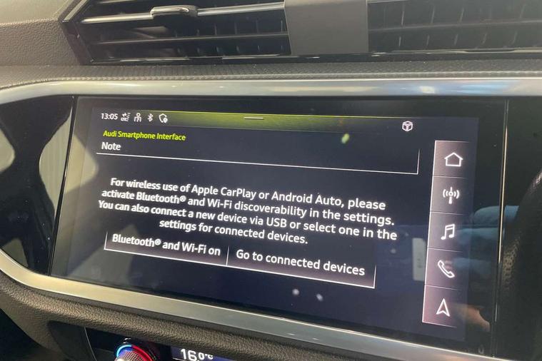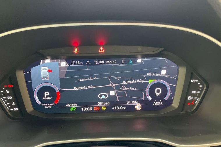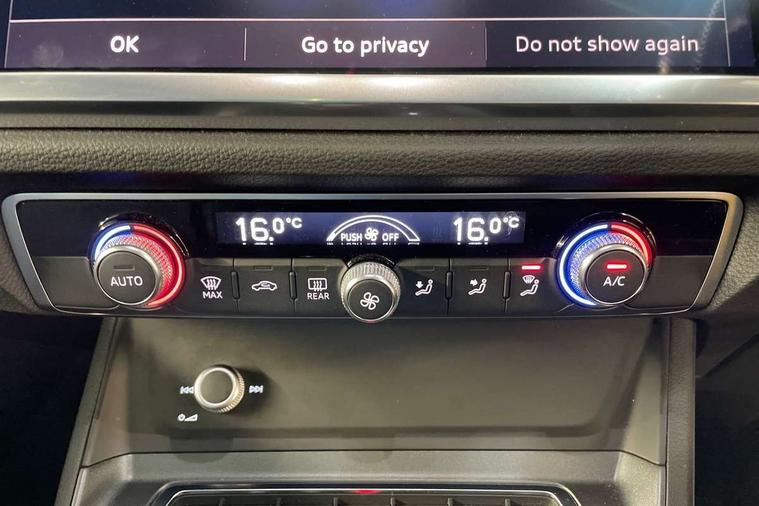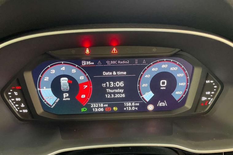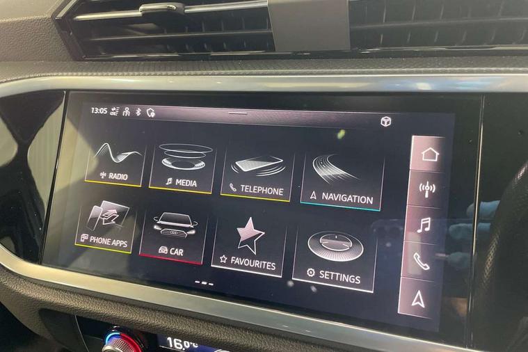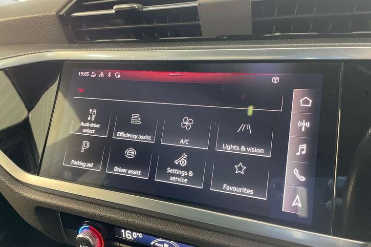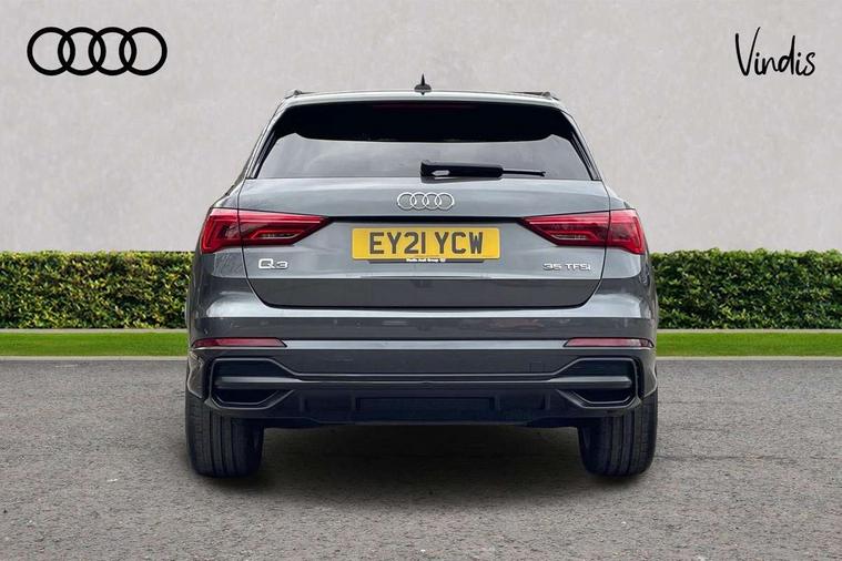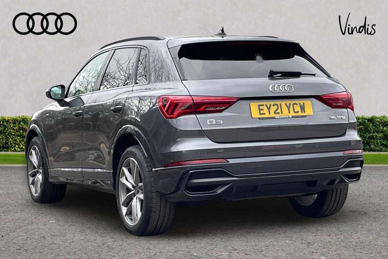 Audi connect safety and service (e-call), Audi drive select, Audi lane departure warning, Audi Virtual Cockpit - 10.25" display, Bluetooth interface, Camera based traffic sign recognition, MMI Navigation Plus with high resolution 10.1 inch touchscreen colour display, Power operated tailgate, Progressive steering, Service interval indicator, Smartphone interface includes wireless Apple carplay/Android Auto, Start stop system with recuperation, Voice control system with natural language interaction, 48V Mild hybrid technology, Sports suspension, 2 USB-C ports with charge and data functions, 6 passive loudspeakers, DAB digital radio module, Acoustic windscreen, Auto dimming frameless rear view mirror, Black roof rails, Electrically folding, adjustable and heated door mirrors with integrated LED side indicators and kerb view function for passenger side, Front and rear electric windows, Front fog lights, High gloss black finish B and C pillars, LED headlights with LED daytime running lights and dynamic rear indicator, LED rear lights, Privacy glass dark tinted rear and rear-side windows (from B-pillar backwards), Rain and light sensors, Rear diffuser strip in matt titanium black, S line bumpers in contrasting Manhattan grey, 12V socket in rear centre console, 40:20:40 folding with manual adjustment for 60:40 forwards/backwards position and backrest angle, Adjustable rear seat bench/backrest with centre armrest and cupholder, Black cloth headlining, Dual zone electronic climate control, Front and rear black floor mats with contrast stitching in rock grey, Front and rear headrests, Front and rear roof module including reading lights, Front centre armrest, Glove compartment lighting, Height and reach adjustable steering wheel, Illuminated door sill trims with S logo, ISOFIX child seat mounting for front passenger with airbag deactivation and outer rear seat including top tether attachment point for outer rear seats, Luggage compartment light, Manual front seats with height adjustment, Perforated leather gearknob, Stainless steel luggage compartment sill finisher, Stainless steel pedals, Black styling pack - Q3, Non smoking pack - Q3, 3x3 point rear seatbelts, 6 airbags - Driver, front passenger, curtain and side windows, Audi pre-sense front with pedestrain and cyclist recognition, Electrically operated child locks on rear doors, Electromechanical parking brake, Electronic stabilisation control including ABS, ASR and EDL, Hill descent control, Hill hold assist, Pre sense basic, Seatbelt monitoring, Tyre pressure warning, Warning triangle and first aid kit, Anti theft alarm, Anti theft wheel bolts, Remote central locking, Detail dashboard around MMI touch colour display in glass look, black with surround in aluminium look, Leatherette door armrest, Piano black inlay, Tool kit, Tyre repair kit,
