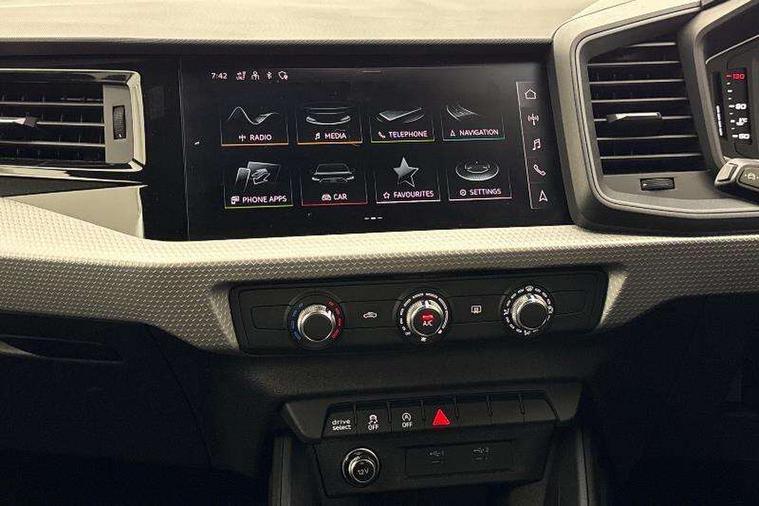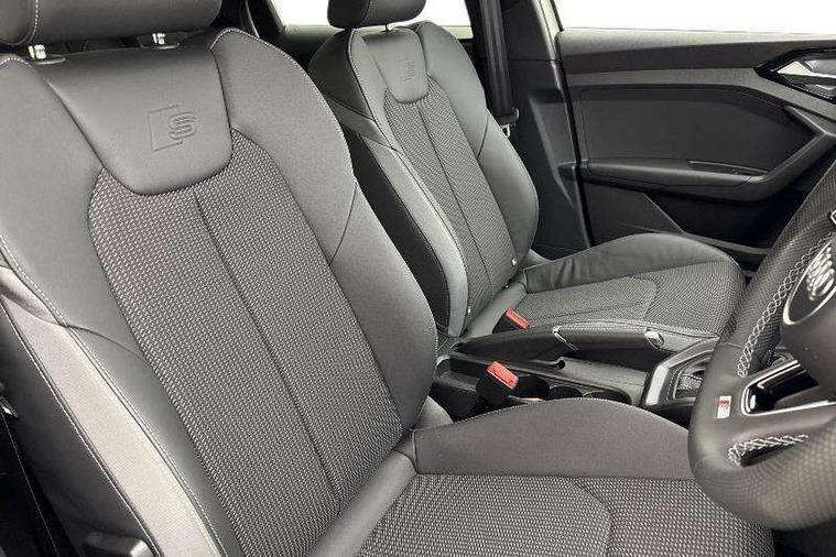 10.25" Digital instrument cluster display classis style instrument dials + speed, odometer, time, outside temperature, telephone menu + fuel level warning, Advanced driver attention and drowsiness monitor, Audi connect emergency call and service, Audi drive select, Audi remote connect and control, Audi smartphone interface, Bluetooth interface, Camera based traffic sign recognition, Cruise control, Driver's information system, Electromechanical power steering, Lane departure warning system, Rear parking sensor, Service interval indicator, Speed limiter, Start stop system with recuperation, Voice control system, Washer fluid level indicator, Sports suspension, 2 x USB type C connection points, 6 loudspeakers, DAB Digital radio, MMI radio plus with 10.1" colour MMI display screen and MMI touch, Auto dimming rear view mirror, Body coloured door mirrors, Door sill trims with aluminium inlays and S line logo in front, Electric front and rear windows, Electrically adjustable, heated, folding door mirrors with integrated LED side indicator, Front side air inlets in grained matt black and C frame in anthracite black, Headlight cleaning system, Heat insulating glass windscreen and side windows, Heated rear windscreen, High level LED brake light, LED daytime running lights, LED headlights with range control LED rear lights + dynamic rear indicators, Light and rain sensors, Privacy glass, Radiator grille and rear diffuser in matt anthracite black, Radiator protective grille frame in matt aluminium silver, Rear fog lights, Rear side wing doors, Rear wiper, S line badges on front wings, Side front spoiler lips in grained matt black, 12V socket in centre console with two cup holders, 3 rear seats with headrests, 3 seat bench in 2nd row, 3 spoke leather multi-function plus steering wheel features S badging and grips in perforated leather with contrast stitching, 40:60 Split folding rear seat or fully collapsed, Black cloth headlining, Front and rear velour black floor mats with contrast stitching in fine silver, Front head restraints, Front passenger seat, Height and reach adjustable steering wheel, Interior lighting includes roof module, front and rear reading lights and right luggage compartment lighting, ISOFIX child seat mounting for front passenger and outer rear seats including top tether attachment point of outer rear seats, Leather gear knob with aluminium trim, Leather handbrake grip, Manual air conditioning, Manual height adjustable for driver and front passenger seat, Manually adjustable lumbar support in front seats, Stainless steel pedals, Ambient lighting package - A1, Luggage compartment pack - A1, S line exterior styling pack - A1 Sportback, 3x3 point rear seatbelts, Audi pre-sense front with pedestrain and cyclist recognition, Brake assist function, Driver and front passenger airbag with front side and head airbags, Electronic Stability Control including ABS, EBD, ASR and EDL, Front passenger airbag deactivation switch, Hill hold assist, Manual rear child locks, Seatbelt height adjustment for front seats, Seatbelt monitoring, Tyre pressure loss indicator, Warning triangle and first aid kit, Anti theft alarm, Anti theft wheel bolts, Immobiliser, Remote control key with safelock, Aluminium trim for control switches, air vents and digital instrument cluster, Black dashboard, Silver grey inlays polygon structure in diamond paint finish, Structured grey accent surfaces insert of air vents, interior door handle recesses and centre console in quartz paint finish,