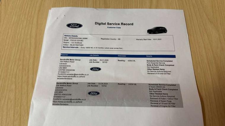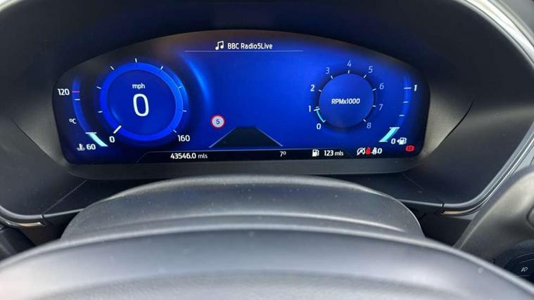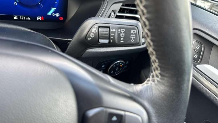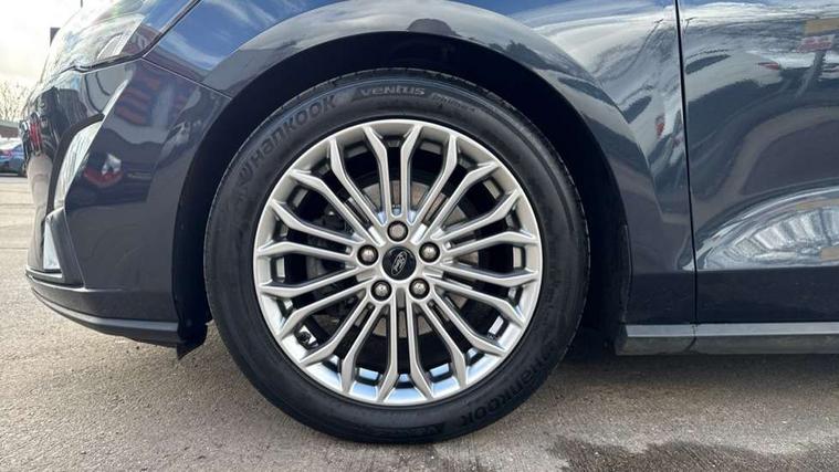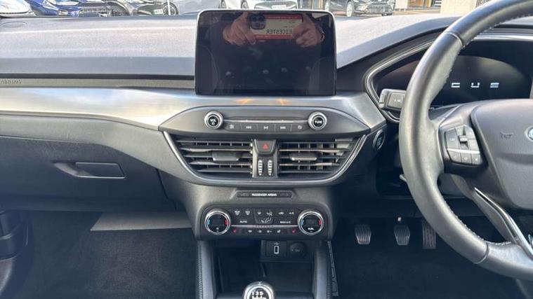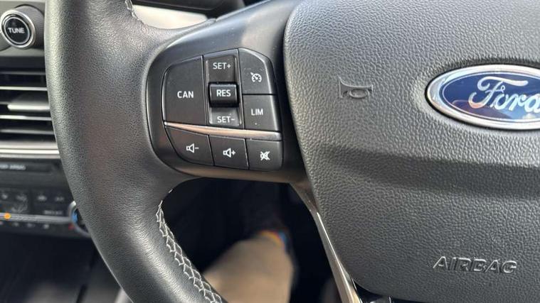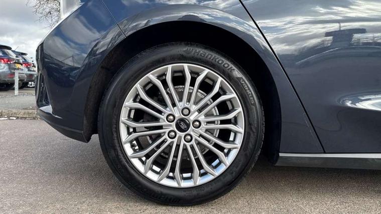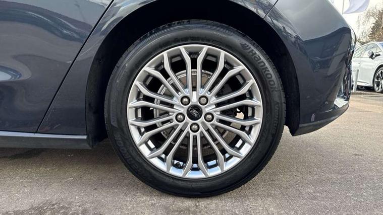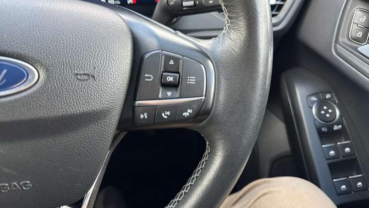 12.3" Digital instrument cluster, Bluetooth system, Digital clock, Easy fuel capless refuelling system, Eco mode, Ford SYNC 3 navigation with 8" TFT touchscreen, DAB radio and app link Android auto/Apple carplay, Intelligent speed assist, Lane keeping system - lane keeping alert and lane keeping aid, PAS, Selectable drive mode, Trip computer, Wireless charging pad, 2 USB ports, Aux input, Auto dimming rear view mirror, Auto headlamps (on/off), Automatic rain sensing wipers, Body coloured bumpers, Body coloured door handles, Body coloured electrically operated and heated door mirrors with side indicators, Electrically operated front and rear windows with one touch opening and closing, Front fog lamps with cornering function, Front variable intermittent wipers with electric wash, Heated rear window, LED daytime running lamp, Power folding door mirrors with puddle lights, Quickclear heated windscreen, Rear privacy glass, Tailgate wash/wipe, Unique door and instrument panel inserts, Upper grille with chrome surround and horizontal bars, 3 spoke leather trimmed steering wheel with integrated audio controls, 6 way power adjustable driver seat, Ambient lighting, Driver's lumbar support, Dual zone electronic air temperature control, Front and rear floor mats with metal grey stitching, Heated driver and front passenger seats, Height adjustable front headrests, Isofix child seat preparation, Leather gear knob, Leather heated steering wheel, Reach + rake adjustable steering column, Rear centre headrest, Sensico partial premium upholstery, Soft console knee pads, 3x3 point rear seatbelts, ABS+Electronic Brake force Distribution, Auto hold function, Driver airbag, Electronic parking brake, Electronic stability control, Front and rear seatbelt reminder, Front inertia reel height adjustable seatbelts with pre-tensioners, Front passenger airbag, Front side airbags, Hill start assist, Passenger airbag deactivate switch, Post collision braking, Power child locks on rear doors, Pre collision assist with autonomous emergency braking and pedestrian/cyclist detection, Side curtain airbags, Three rear inertia reel lap/diagonal seatbelts, Tyre pressure monitoring system, Ford keyfree system with Keyless entry and keyless start/sleep mode key fob, MyKey system, Remote central locking & engine immobiliser, Thatcham category 1 alarm, 17" 10x2 spoke luster nickel alloy wheels, Mini steel spare wheel,