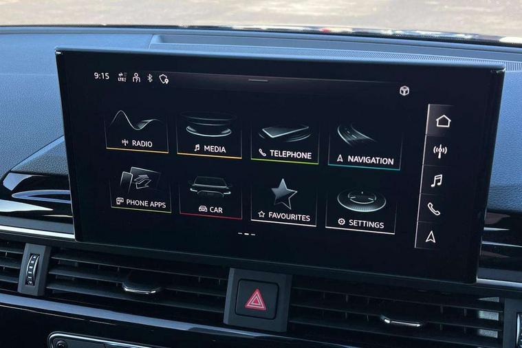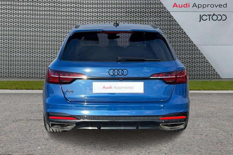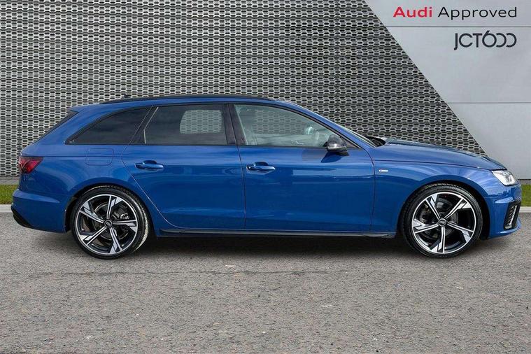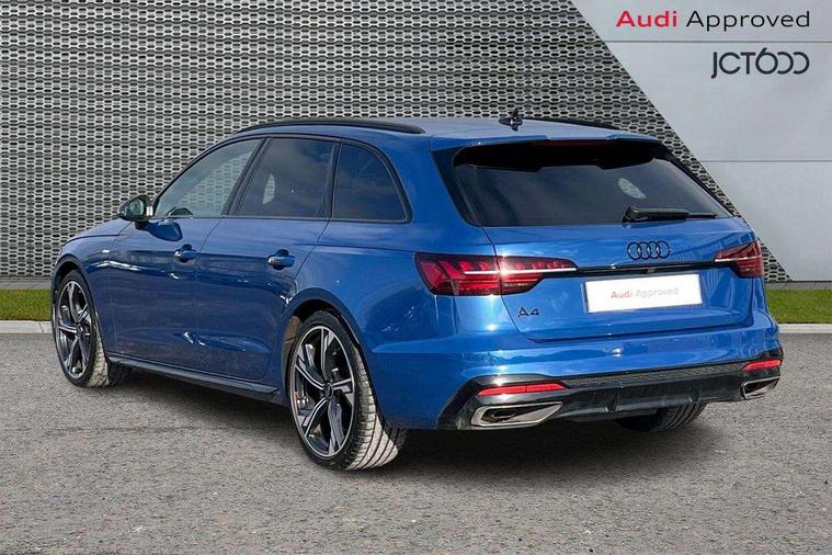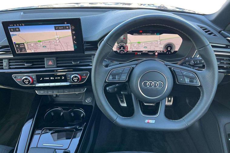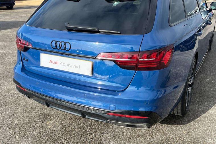 Audi connect safety and service (e-call), Audi drive select, Audi smartphone interface, Audi virtual cockpit, Automatic start-stop system with coasting functionality and efficiency programme, Bluetooth interface, Camera based traffic sign recognition, Electromechanical power steering, Email, calendar and text messages displayed via MMI, Front and rear parking sensors, Lane departure warning, MMI Navigation plus with MMI touch includes 10.1" high resolution colour MMI display, 3D map, Power operated tailgate, Rear view camera, Voice control system, 54 litre fuel tank, Sports suspension lowered by 23mm, 2 USB charging ports, 8 passive loudspeakers, DAB digital radio reception, Audi beam uses LEDs to project the audi logo onto the ground as you exit your A4, Auto dimming rear view mirror, Black Audi rings and black badging (with removed engine badging), Body colour door handles, Body colour front spoiler lip, Body colour side sill trim, Electric adjustable/heated/folding door mirrors with auto dimming, Exhaust tailpipes in dark chrome, Grained matt black side air inlets with matt aluminium silver inlay, High beam assistant, High gloss black B pillar trims and triangular rear door trim, LED headlights with LED rear lights + dynamic rear indicators + headlight adjustment and high beam, turning light + LED daytime running lights, LED third brake light, Privacy glass, Rain and light sensors, Rear diffuser in matt black with trim strip in matt aluminium silver, Rear side wing doors, Rear wiper, RS4 rear spoiler in body colour, S Line roof edge spoiler, Sport front and rear bumpers with side skirts, Variable intermittent front wash/wipe, Windscreen with acoustic glazing, 4 way electric lumbar support for driver and front passenger, 40/20/40 split folding 3 rear seat bench in 3 parts with rear centre armrest, Black carpets, Black cloth headlining, Black perforated leather gearknob, Contrast stitching on seats, steering wheel and gear lever gaiter, Deluxe 3 zone electronic climate control, Electric load area cover, Front and rear head restraints, Front centre armrest, Heated front seats, Illuminated door sill trims with S logo, ISOFIX child seat mounting and top tether, Manual seat adjustment, Single front passenger seat, Stainless steel pedals and foot rest, Black styling pack - A4 Avant, LED Interior light pack - A4/S4, 3 rear seatbelts, 6 airbags - Driver, front passenger, curtain and side windows, Attention and drowsiness assist, Electronic Stabilisation Control (ESC) including ABS, ASR and EDL, Hill hold assist, Multi collision brake assist, Pop-up bonnet for pedestrian protection, Pre sense city, Rear door child safety locks, Seatbelt monitoring, Warning triangle and first aid kit, Anti theft alarm, Anti theft wheel bolts, Central locking, Keyless Go, Piano black finish inlay, Tool kit, Tyre repair kit,