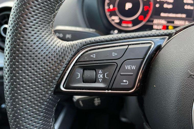 Audi connect navigation and infotainment includes innovative services, Audi connect remote and control connects your vehicle to your smartphone, Audi drive select: S tronic - power steering assistance + engine + gearshift (modes: comfort, auto, dynamic, efficiency, individual), Audi smartphone interface - Apple carplay/Android Auto, USB connect, 2xSDXC card readers, voice control for navi, telephone, music and 3rd party apps, Audi virtual cockpit, Automatic start/stop system with recuperation, Bluetooth interface includes bluetooth audio streaming, Cruise control, E-call, MMI navigation plus with MMI touch, Power operated tailgate, Progressive steering, Rear parking sensors, Sport suspension, 6 passive loudspeakers, DAB Digital radio, Auto dimming rear view mirror, Black window trims, Body colour door mirrors, Electrically adjustable, folding, auto dimming and heated door mirrors with integrated LED side indicators, Front windscreen with grey tinted sunband, LED daytime running lights, LED headlights with dipped beam, high beam, position lights, indicators, LED rear lights, LED third brake light, Privacy glass - dark tinted rear and rear side windows from B-pillar backwards, Rear side wing doors, Rear wiper, S Line badges on the front wings, S Line body styling - front and rear bumpers, side skirts, radiator grille, rear diffuser insert and front air intakes, Variable front intermittent wipers, Wheel arch trims in manhattan grey, 12V socket in front, 3 seat bench in 2nd row, 3 spoke multi-function leather steering wheel with S badging, 4-way electric lumbar support for front seats including manual seat height adjustment for both front seats, 60/40 split folding rear seat bench, Black cloth headlining, Front and rear head restraints, Front centre armrest, Front sport seats, Front/rear floor mats, Height/reach adjust steering wheel, Illuminated door sill trims with S logo, ISOFIX child seat mounting in front passenger and rear outer seats, Manual air conditioning, Single front passenger seat, Stainless steel pedals, 3x3 point rear seatbelts, 6 airbags - Front, curtain and front side airbags, Electromechanical parking brake, Electronic stabilisation control including ABS, ASR and EDL, Front passenger airbag deactivation, Hill hold assist, Pre-sense front with pedestrian recognition, Seatbelt monitoring, Tyre pressure warning light with visual and acoustic warning, Warning triangle and first aid kit, Anti theft alarm, Anti theft wheel bolts, Electronically operated child locks, Remote central door locking, Aluminium interior element, Matt brushed aluminium trim inlays, Tool kit,