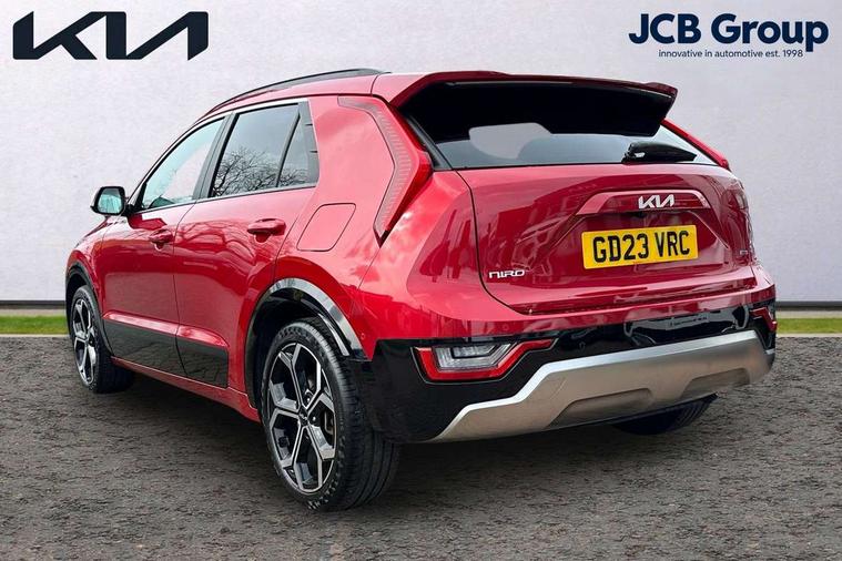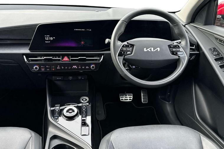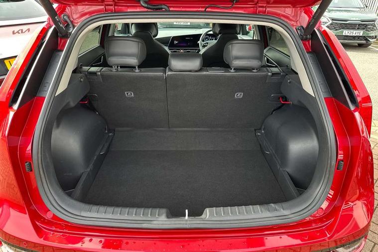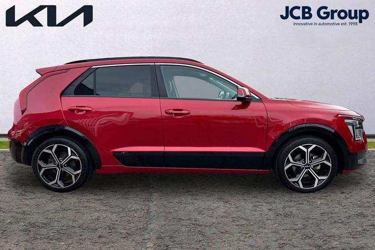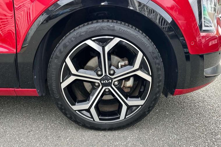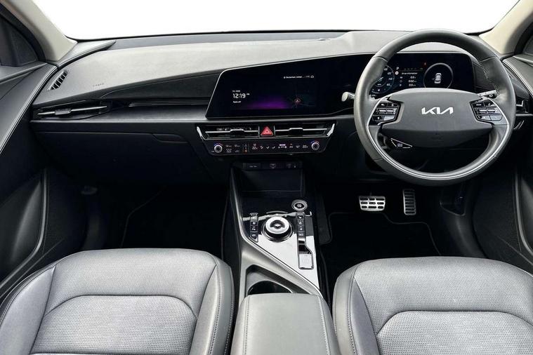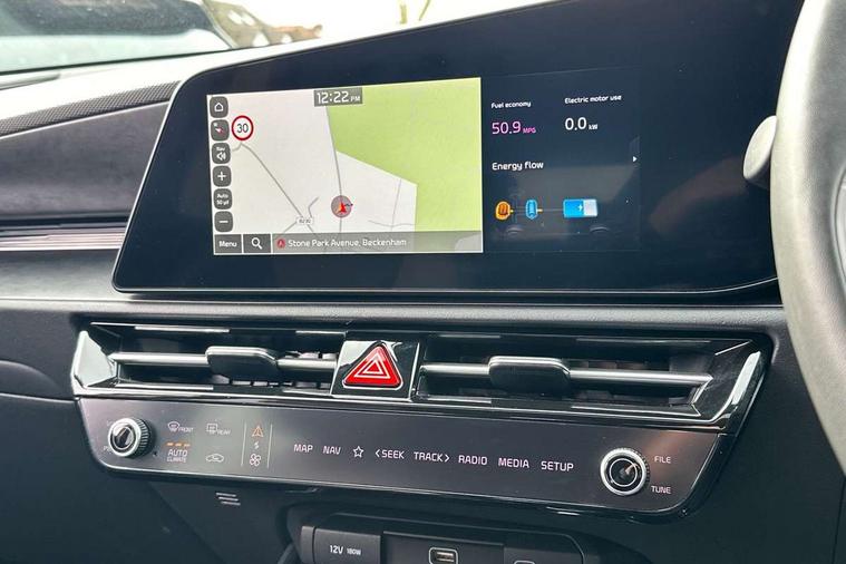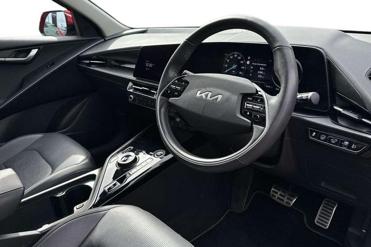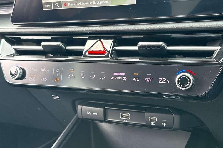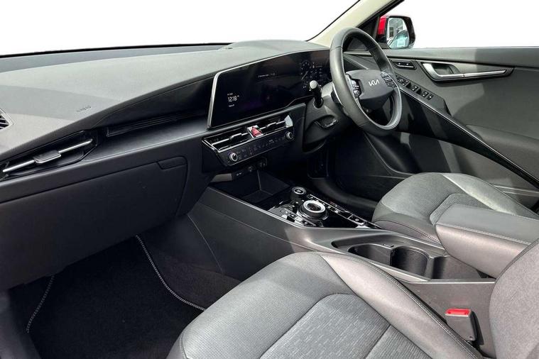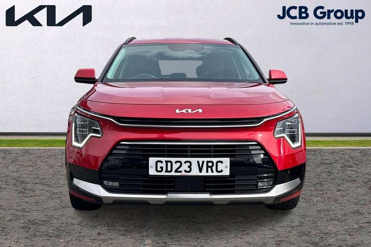 10.25" Supervision colour cluster display, 10.25" touchscreen satellite navigation, Adaptive smart cruise control function (SCC) with stop and go, Apple car play/Android Auto with voice control, Blind spot collision avoidance assist, Drive mode select (Eco, sport), E-call, Emergency stop signalling system, Forward Collision-Avoidance Assist (FCA) 1.5 - City/Pedestrian/Cyclist/Junction turning, Front parking sensors, Head up Display, Highway Driving Assist (HDA), Kia Connect (UVO), Lane Following Assist (LFA), Lane keep assist, Motor driven power steering, Parking collision avoidance assist (PCA), Power opening/closing tailgate, Rear cross traffic alert, Rear parking sensors, Remote smart parking assist, Reversing camera with dynamic guide lines, Safe exit warning (SEW), Speed limit assist, Trip computer with distance/fuel consumption/average speed, Wireless Smartphone charger, 220v AC Inverter, 'Shark fin' mobile antenna, 2 Front USB Charge port (one for C-type/one for USB), 2 type C USB ports on front seats, 6 speakers, Bluetooth with music streaming, DAB Digital radio, Steering wheel mounted controls, Acoustic windshield, All round electric windows with drivers and front passenger auto up/down and safety function, Auto dimming rear view mirror, Automatic defog system, Automatic headlight control system, Black grille with chrome surround, Body colour bumpers, Body colour exterior door handles, Deluxe door scuff plates, Dual LED headlights (low and high projection), Electric heated door mirrors, Electrically folding door mirrors, Front and rear chrome skid plates, Front fog lights, Heated rear window with timer, High gloss black cladding, High gloss black door mirrors, LED daytime running lights, LED rear combination lights, LED third brake light, One touch single tilting/sliding power sunroof, Privacy glass - Rear windows and tailgate, Rain sensing front wipers, Rear fog lights, Rear side wing doors, Rear spoiler, Rear wiper, Roof rails, Solar glass windscreen, Welcome and follow-me home light functionality, Windscreen Washer Level Warning, 12V socket in front, 12V socket in luggage compartment, 3 seat bench in 2nd row, 60:40 split remote folding rear seats, All-round height adjustable headrests, Aluminium pedals, Artificial leather centre console storage box, Artificial leather steering wheel, Centre console cupholder, Chrome coating interior door handles, Driver and front passenger power adjusted seat, Driver power adjusted memory seat, Driver/passenger sunvisors with illuminated vanity mirrors, Drivers seat power lumbar support, Dual zone automatic air conditioning, Front and rear door storage, Heated front seats, Heated outer rear seats, Heated steering wheel, Illuminated glovebox, Interior door lock/unlock function, ISOFIX Child seat top tethers and anchor fixings, LED overhead console, 2nd row and luggage lamp, Luggage area load cover, Luggage board, Paddle shifts, Passenger premium relaxation seat, Power adjustable lumbar support on front passenger seat, Rear armrest, Seatback pocket - driver, Seatback pocket - front passenger, Shift by wire SBW, Single front passenger seat, Tilt/telescopic adjustable steering wheel, Vegan leather upholstery, Ventilated front seats, Ventiliation ducts to rear compartment, Towing pack - Niro, 3 point seatbelts on all seats, ABS, Automatic unlocking of doors in case of impact, Centre side front airbags, Curtain and side airbags, Drivers knee airbag, Dual shell horn, Electric parking brake with auto hold function, Electronic stability control, Front passenger airbag deactivation, Height adjustable front seatbelts, Hill start assist control (HAC), Manual rear child locks, Rear seat alert system, Traction control, Tyre pressure monitoring system, Alarm system and engine immobiliser, Deadlocks, Engine Start/Stop Button with Smart Entry System, Locking wheel nuts, Visible vehicle identification number, Warranty - 7 Years/ 100, 000 miles, Centre fascia chopped carbon, 18" Alloy wheels, Tyre mobility kit,