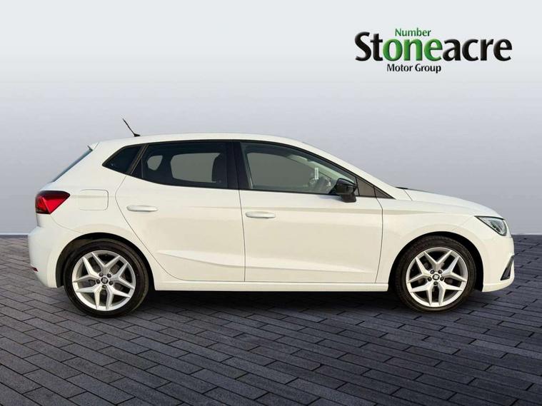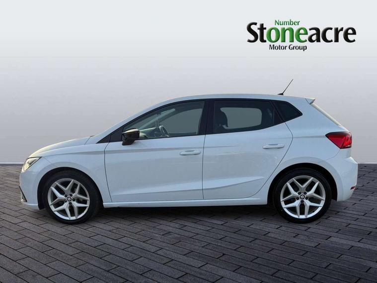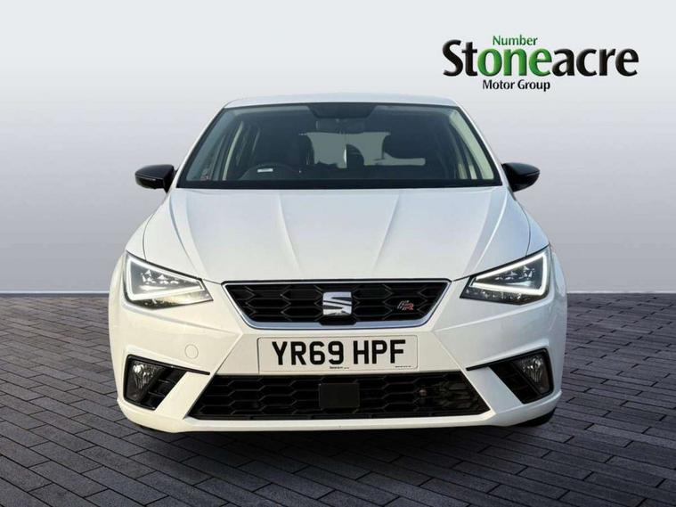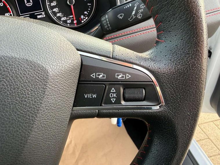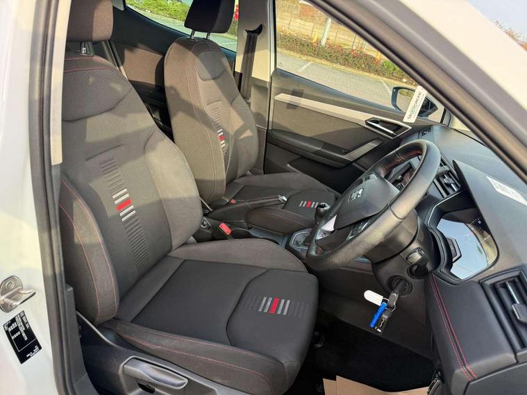 'Lights On' Reminder warning buzzer, Bluetooth Handsfree Phone Connection, Cruise control, Digital clock, Full Link Smartphone Integration with Mirror Link, Apple Car Play, Google Android Auto, Low fuel warning light, Outside temperature gauge, Power Steering, Satellite navigation system with 3D mapping, 8" touch screen, voice control and additional USB port, SEAT Drive profile, SEAT logo boot release, Trip computer, Sports suspension, 6 speakers, Auxiliary input socket, CD player, Digital Audio Broadcast (DAB) Tuner, Radio/MP3 player, SD card slot, SEAT USB media cable, Steering wheel mounted controls, USB port, Anti theft roof antenna, Auto dimming rear view mirror, Automatic headlights, Automatic rain sensing wipers, Body colour bumpers, Body colour door handles, Brilliant black door mirrors, Chrome front grille frame, Chrome grille, Coming/leaving home lighting function, Cornering front fog lights, Dark tinted rear windows, Electric folding door mirrors, Electric front windows, Electric headlight adjustment, Electrically adjustable and heated door mirrors, Exclusive FR rear bumper, Full LED headlights, LED daytime running lights, LED tail lights, Rear fog lights, Twin exhaust pipes, 3 rear headrests, 60/40 split folding rear seat, Air conditioning, Door and steering wheel ice metal decorative inserts, Driver's sunvisor with ticket holder/vanity mirror, Dust/pollen filter, Flat bottomed perforated leather steering wheel with red stitching and FR logo, Front courtesy lights, Front cupholders x 2, Front reading lights, Gear shift indicator, Glovebox, Height adjustable driver's seat, Height adjustable front/rear head restraints, Height adjustable passenger seat, Height/reach adjust steering wheel, Illuminated boot, Instrument lighting with brightness control, Leather dashboard, Leather handbrake, Multi-colour ambient interior lighting, Nora cloth upholstery, Passenger sunvisor, Rear top tether child seat ISOFIX attachment, Sports seats, Full LED headlight pack - Ibiza, 3 point seatbelts on all 3 rear seats, ABS, Active front headrests, Child locks on rear doors, Curtain airbags, Driver/Front Passenger airbags, ESP+EBA, Front assist (AEB), Front passenger airbag deactivation, Front side airbags, Hill hold control, Multi-Collision braking, Seatbelt warning, Tiredness recognition system, Tyre pressure monitoring system, Electronic engine immobiliser, Locking wheel bolts, Remote central locking + deadlocks, Volumetric alarm with back up horn, 17" Dynamic alloy wheels,