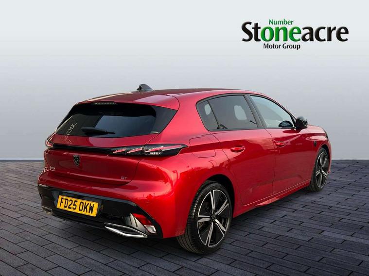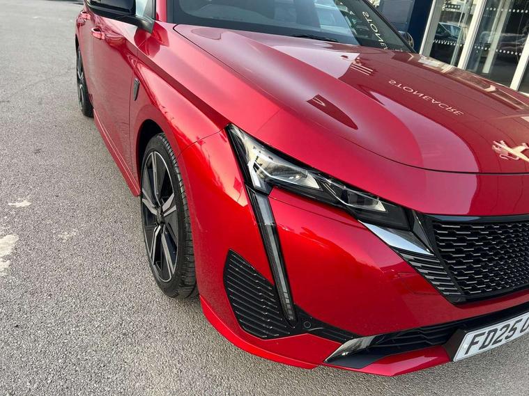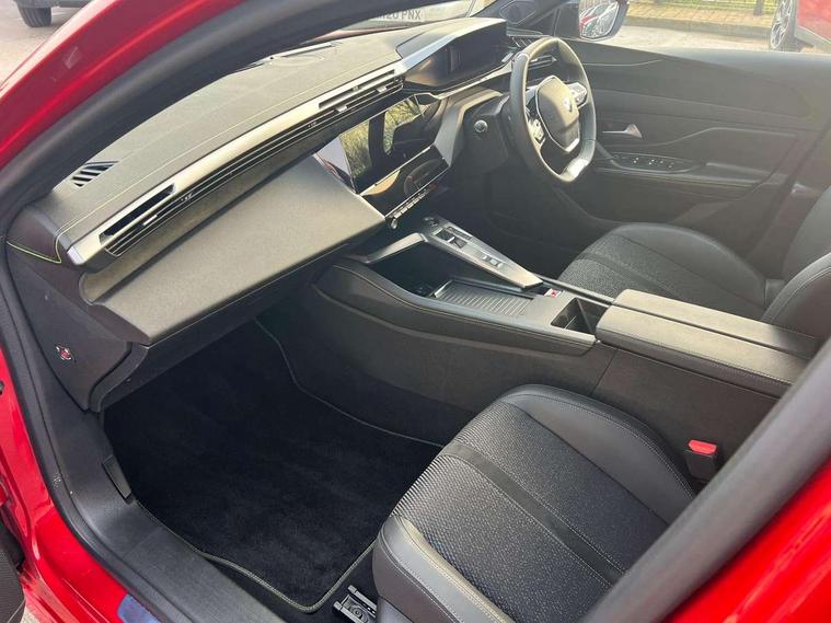 Bluetooth telephone facility, Compact drive selector, Driver attention warning, Emergency call service, Exterior temperature indicator with ice warning, Front and rear parking sensors, Intelligent speed adaptation, Lane keep assist, Mirror screen with wireless apple carplay and android auto, Multi driving mode selector - Eco / Normal / Sport mode selector, Multi function trip computer, Peugeot connect advanced with connected 3D navigation, PEUGEOT i-Cockpit - compact steering wheel, 10" HD colour touchscreen with configurable 3D headup instrument panel, Service interval indicator, Speed limit recognition and recommendation, Sport pedals with foot rest, DAB Digital radio, Peugeot customisable iToggles, Voice recognition for radio, navigation and telephony features, 2 X LED rear number plate lights, Acoustic and tinted windscreen, Acoustic laminated front side windows, Automatic hazard light activation upon heavy brake application, Automatic triggered rear windscreen wiper in reverse gear, Body colour door handles, Body colour rear roof spoiler, Dark chrome chequered radiator grille, Dark tinted rear side and tailgate windows, Electric operated/heated door mirrors, Extended lower body sills to the front and side, Framed electrochromatic rear view mirror, Front and rear electric windows with one touch/anti pinch, Full LED matrix headlights with automatic adjustment, Gloss black finish B pillar, Gloss black rear cluster connecting strip, GT model designation badging on tailgate, High beam assist, LED 3rd brake light, LED side indicator lights integrated into door mirrors, Lion emblem badging on front wings, Model designation badges on front and rear, Nera black door mirrors, Peugeot aluminium door sills, Peugeot signature LED daytime running lights, Power folding door mirrors, Rear full LED 3D Peugeot new claw effect lights with sequential welcome sequence upon unlocking the vehicle, Rear lower bumper gloss black diffuser effect trim, Rear reversing lights, Rear side wing doors, Tailgate with heated rear windscreen and wiper blade, Twin exhaust pipes with chrome surround, 1/3 to 2/3 split folding rear seats, 12V socket, 2 front USB socket including 1 USB type c, 3 seat bench in 2nd row, 8 Colour personalisable ambient lighting, Automatic air conditioning with AQS 3, Belomka tri-material woven cloth with Isabella leather effect upholstery, Carpet mats, Central front armrest with storage compartment, Dynamic front seats, Electric power steering with reach and rake adjustable steering column, Front central console with two cup holders, LED Glovebox light, Manual driving mode - change gear manually via steering mounted paddles, Multifunction full grain leather steering wheel with admite green stitching & GT badging, Piano keys gloss black plated toggle switches to access main functions of the vehicle, Roof lining - Mistral black, Seatbelt unfastened on the move audible and visual alert for front and rear seats, Single front passenger seat, Ski hatch with central rear armrest with cup holder, Sunvisor with concealable mirrors and LED lighting, Twin USB charging ports in the rear (Type C), Driver sport pack with sports power steering - 308, Visibility pack with automatic magic wash windscreen wipers - 308, 2x Isofix child seat fitting on outer rear seats, 3x Rear three-point retractable seatbelts with force limiters in the outer rear seats, ABS + EBD + EBA, Active safety brake with night function/cyclists/pedestrians, Adaptive driver and front passenger airbags with passenger airbag deactivation function, Automatic post collision braking, Child locks on rear doors, Driver/front passenger side airbags, Electronic parking brake, ESP, Front and rear curtain airbags, Front optimised safety headrests and rear retractable headrests (x3), height adjustable, Front three point retractable seatbelts with force limiters, Front/rear disc brakes, Hill start assist, Tyre pressure sensor, Automatic door locking when moving off, Deadlocking system, Electronic code immobiliser, Locking wheel nuts, PEUGEOT Open and Go keyless entry system, Thatcham cat. 1 alarm with anti lift sensor,
