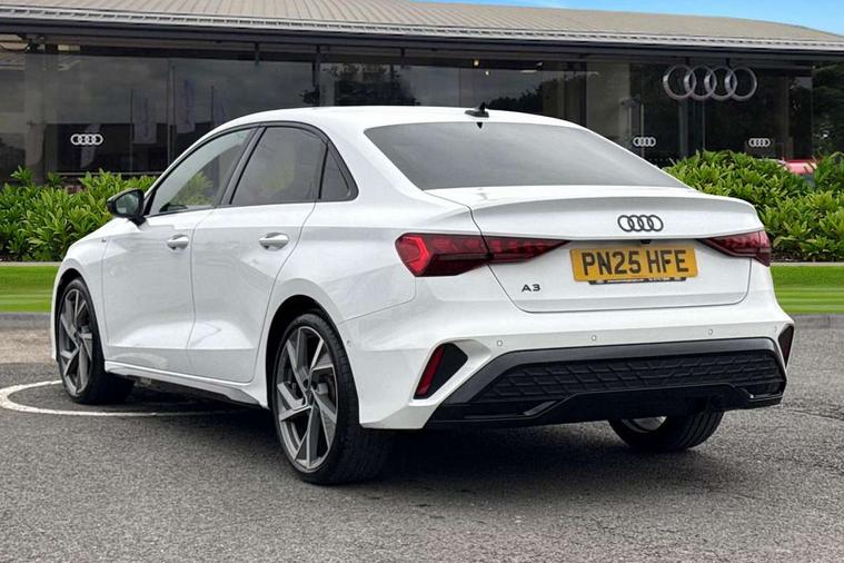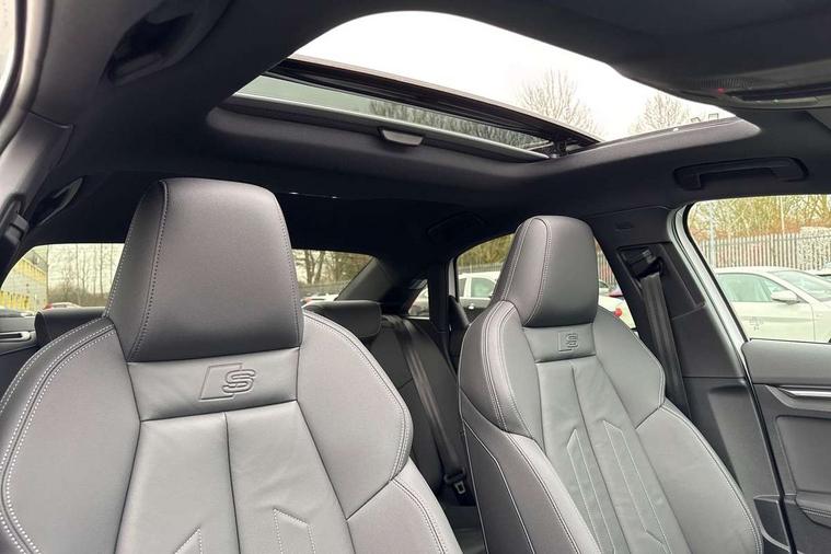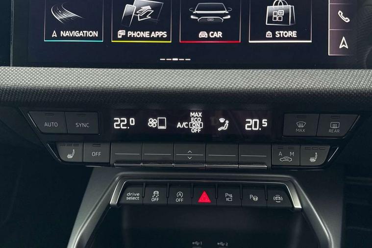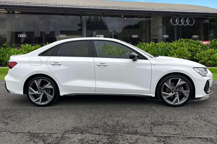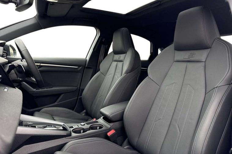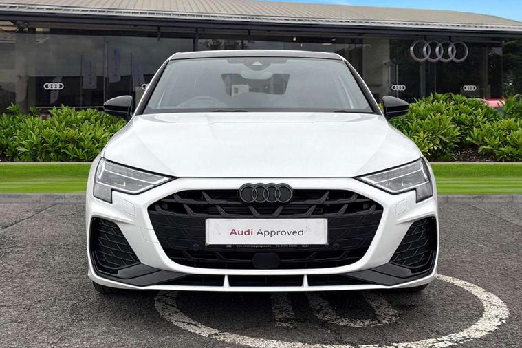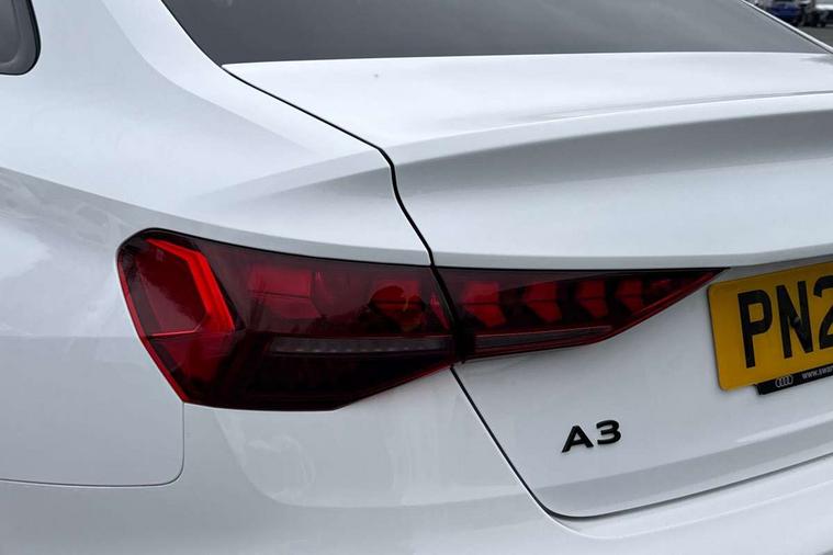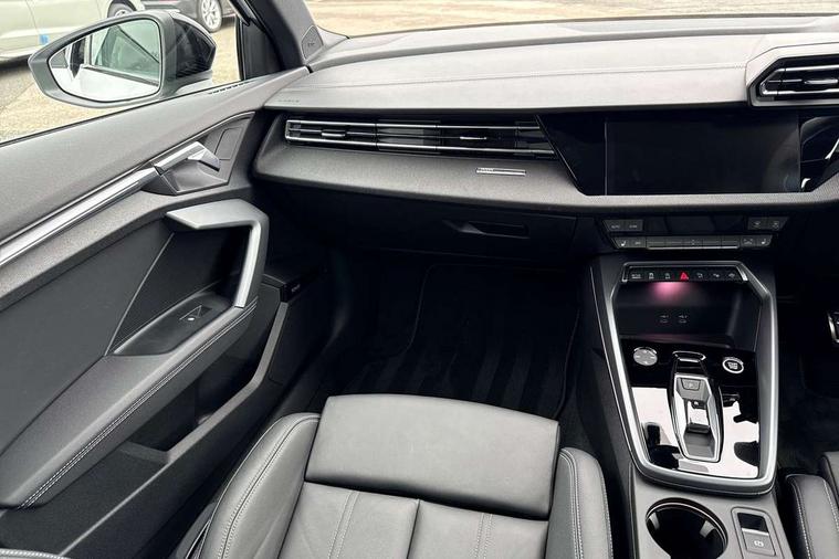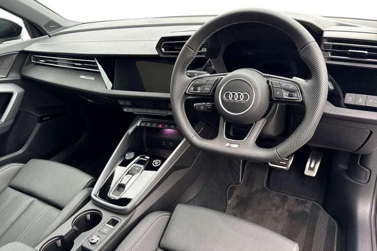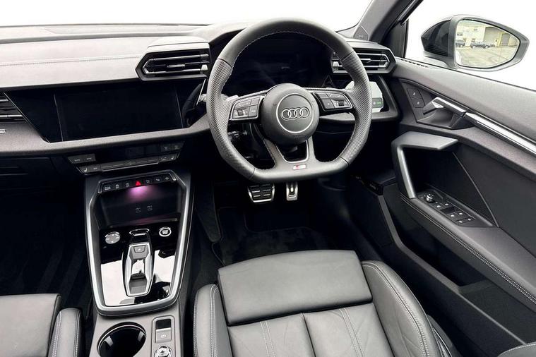 Adjustable speed limiter, Audi drive select, Audi smartphone interface with app store includes wireless Apple carplay, Android auto and Amazon alexa integration, Audi virtual cockpit plus - 12.3" full HD resolution dynamic digital instrument cluster, Automatic start/stop system with recuperation, Bluetooth interface, Camera based traffic sign recognition, Collision avoidance assistant, Cruise control, Distraction and Fatigue warning, e-Call (emergency call), Electromechanical power speed sensitive steering, Lane departure warning system, MMI Navigation Plus with high resolution 10.1" colour touch screen display, Park Assist with parking system Plus, Service indicator, Trip computer, Voice control system with natural language interaction, Sports suspension, Audi Phonebox light with wireless charging, Audi sound system - 10 loudspeakers including centre loudspeaker and subwoofer, DAB Digital radio, USB ports with charging function in the rear, Acoustic glass windscreen, Anthracite grey Audi rings (front and rear), Audi beam uses LEDs to project the Audi logo onto the ground as you exit your A3, Auto dimming frameless rear view mirror, Black accents front and rear bumpers, Black accents in the area of the Audi single frame grille, Black accents window trims strips, Electrically adjustable/heated/folding/auto dimming door mirrors with integrated LED indications + kerb view function for passenger side, Exterior model badging, Front electric windows, Heat insulating glass windscreen, Illuminated door sills with aluminium inserts at the front with S logo, LED 3rd brake light, LED daytime running lights, LED headlights with LED rear lights and dynamic rear indicators, Light and rain sensors, Privacy glass - dark tinted rear window, rear door and side windows, Rear boot, Rear electric windows, Rear side wing doors, 12V socket and storage compartment in front centre console, 3 seat bench in 2nd row, 3 spoke flat bottomed leather multifunction sport steering wheel with gear shift paddles, 3-zone deluxe automatic air conditioning, 4 way electrically adjustable lumbar support for driver and front passenger, 40/20/40 split folding rear seat bench, Black cloth headlining, Front and rear centre armrest in artificial leather, Front and rear centre armrest in artificial leather with contrasting stitching on armrests and instrument panel, Front and rear headrests, Front/rear floor mats, Heated front seats, Height and reach adjustable steering wheel, Manual boot compartment lid, Manually adjustable front seats, Rear cup holders, S badging on the steering wheel, Seat side bolsters, Single front passenger seat, Stainless steel pedals and front footrest in black, Twin leather upholstery with front sports seats S embossed logo, Aluminium interior elements pack - A3, Multi-coloured LED interior lighting package - A3 Black Edition, 3x3 point rear seat belts, Driver and front passenger airbag with passenger airbag deactivation, Electronic Stabilisation Control (ESC) including ABS, ASR and EDL, First aid kit with warning triangle and 2 safety vests, Front side airbags with head airbags and interaction airbag, Hill hold assist, Pre-sense front with pedestrian and cyclist detection, Seatbelt monitoring, Tyre pressure loss indicator, Anti theft alarm, Anti-theft wheel bolts, Electronically operated child locks, Immobiliser, Remote central locking with safelock, Inlays in black Impressum woven textile,