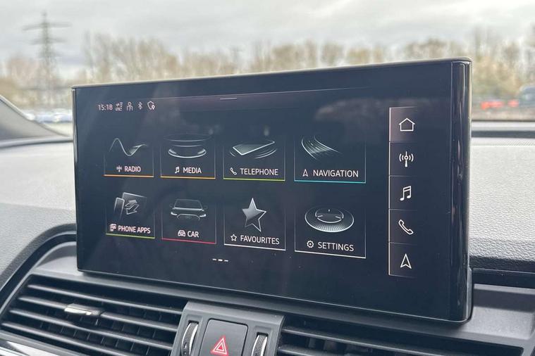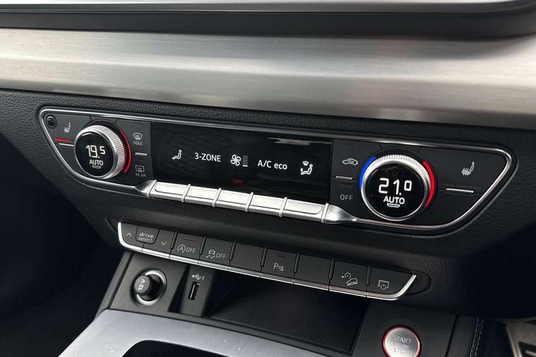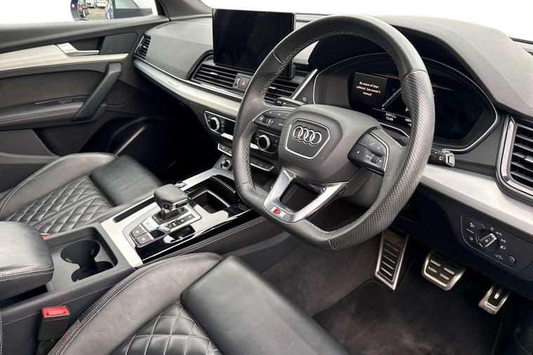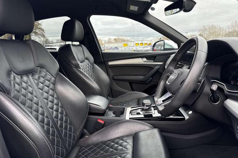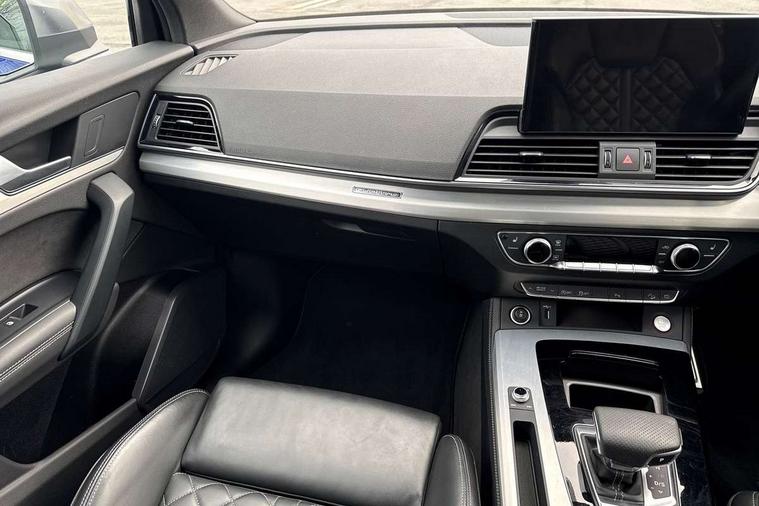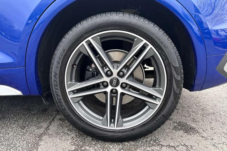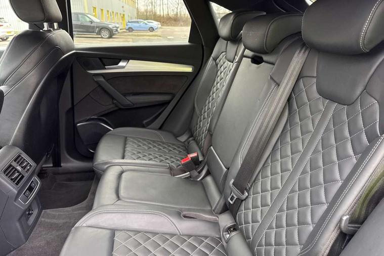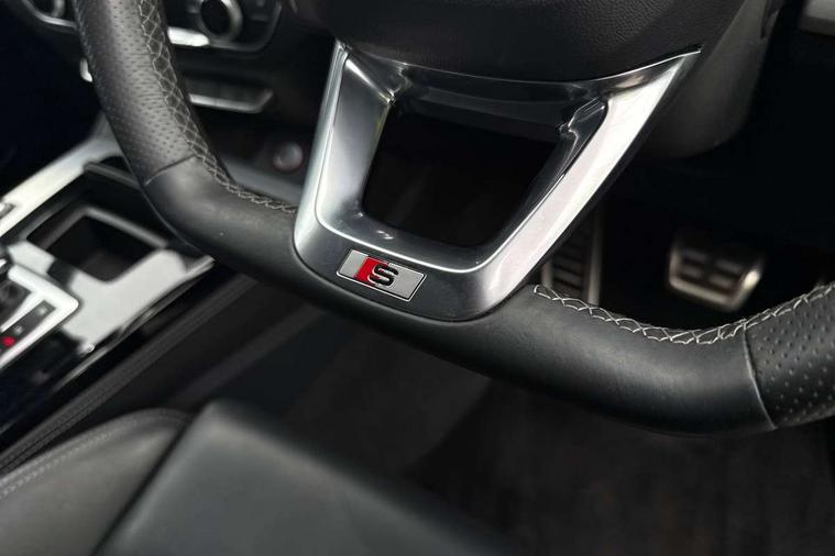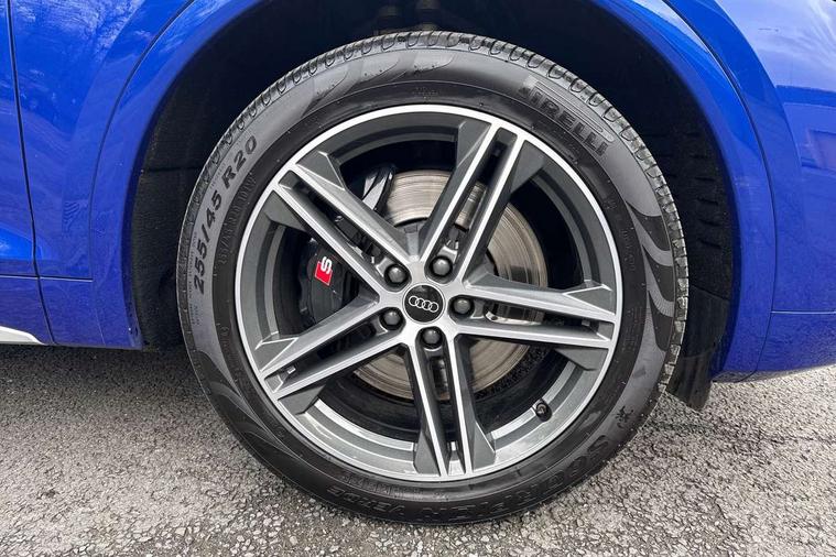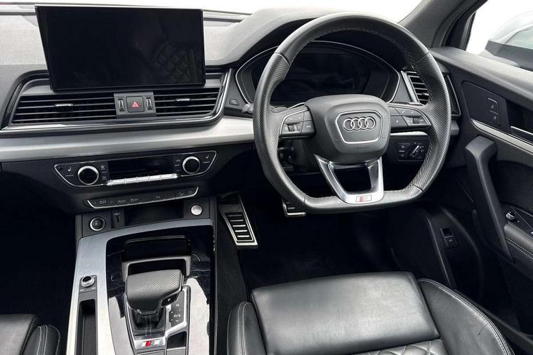 Acoustic front and rear parking sensor, Audi connect safety and service (e-call), Audi connect with Amazon Alexa Integration, Audi drive select, Audi virtual cockpit plus with 12.3" screen and three different layout designs, Audi wireless smartphone interface, Automatic start-stop system with coasting functionality and efficiency programme, Bluetooth interface, Electro - mechanical power assisted steering, MMI navigation plus with 10.1" touch screen, Power tailgate, Reversing camera, Service interval indicator, Voice control system with Audi hotword activation "Hey Audi", 70 litre fuel tank and 24 litre AdBlue tank, Diesel particulate filter, Quattro on demand, S sport suspension with damper control, 2 x USB charging port with aux input socket, Audi sound system, DAB Digital radio, Acoustic windscreen, Aluminium roof rails, Audi beam, Audi matrix LED headlights with dynamic front and rear indicators, Auto dimming door mirrors, Auto dimming frameless rear view mirror, Automatic headlight adjustment, Automatic headlights and windscreen wipers, Body colour bumpers, Body colour underbody protection, Chrome plated exhaust trims, Daytime running lights, Door sills in Selenite silver, Electric adjustable/heated/folding door mirrors, Front air inlet surrounds in aluminium, Front and rear electric windows, Front radiator grille in honeycomb design, Headlight washers, High level LED brake light, Rear chrome trim strip below lights, Rear privacy glass and rear side windows, Rear side wing doors, Rear spoiler, Rear wiper, Roof bars, S front and rear bumpers, S Line side skirts, S rear diffuser in body colour, 3 rear headrests, 4 way electric lumbar support for driver and front passenger, 40:20:40 split folding 3 rear bench seat in 2nd row with rear centre armrest, Black cloth headlining, Comfort front centre armrest, Contrast stitching on seats, steering wheel and gear lever gaiter, Deluxe 3 zone electronic climate control, Fine Nappa leather upholstery with diamond pattern contrast stitching + front sport seats with S embossed logo, Front head restraints, Front/rear floor mats, Fully electrically adjustable seats, Gear lever in black leather, Heated front seats, Height/reach adjustable steering column, Illuminated door sill trims with S logo, Massage function for front seats, Rear seat bench plus-adjust for forwards/backwards position/backrest angle, cupholders in the armrest, load through hatch and remote backrest release, Removable luggage compartment floor, Single front passenger seat, Stainless steel pedals, Sunvisors with vanity mirrors, Trunk roller cover, Extended interior upholstery pack - Q5, High gloss pack - Q5, LED interior light pack - Q5, 3 point seatbelts on all seats, 6 airbags - Driver, front passenger, curtain and side airbags, Electrically operated child locks on rear doors, Electromechanical parking brake, Electronic stabilisation control including ABS, ASR and EDL, First aid kit with warning triangle and vests, Front passenger airbag deactivation, Hill descent control, Hill hold assist, ISOFIX child seat mounting for front passenger seat and ISOFIX child seat mounting with Top Tether for outer rear seats, Multi collision brake assist, Pop-up bonnet for pedestrian protection, Pre sense city, Seat belt force limiter, Seatbelt monitoring, Tyre pressure warning, Anti theft alarm, Anti-theft wheel bolts, Keyless Go access/ignition system, Remote central locking, Air vents inserts and centre console in gloss black, 20'' 5 twin star spoke design alloy wheels in gloss graphite grey,