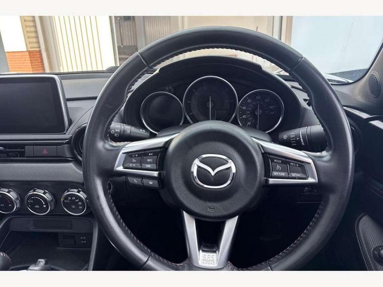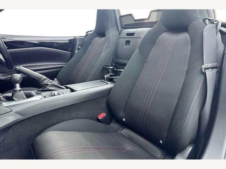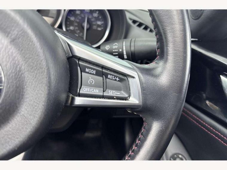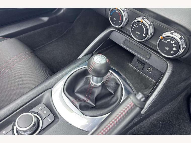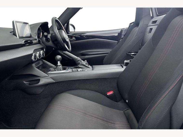7" touchscreen with multimedia commander, Cruise control + speed limiter, Engine start/stop button, Integrated bluetooth with steering wheel mounted controls, PAS, Remote boot release, Satellite navigation system, Trip computer, Water temperature gauge, 6 speakers, Auxiliary input socket, DAB Digital radio, MP3 compatible radio/single CD player, USB/iPod connection, Automatic headlamp levelling, Body colour bumpers, Body coloured door mirrors, Coming/leaving home lighting function, Dual exhaust pipes, Electric front windows/one touch facility, Electrically heated door mirrors, Front intermittent wipers, LED daytime running lights, LED Headlights, Premium cloth soft top with integrated heated glass window and soft top cover, 12V socket, Black cloth trim with red stitching, Body coloured inner door trims, Centre console storage box, Climate control air conditioning, Cupholders, Front centre armrest, Front head restraints, Height adjustable front seats, ISOFIX front passenger seat child seat compliance, Leather gear knob, Leather handbrake lever, Leather steering wheel, Lockable rear storage box, Sports seats, Tilt/slide reclining front seats, Windblocker, 3 point ELR front seatbelts with pretensioners, ABS+Electronic Brake force Distribution, DSTC-Dynamic Stability and Traction Control, Dual front airbags, Fasten seatbelt reminder, Hill hold assist, Manual passenger airbag deactivation function, Side airbags, Tyre pressure monitor, Alarm with interior movement sensor, Immobiliser, Remote central door locking, Remote keyless entry, Superlocking, 16" Silver alloy wheels, Tyre puncture repair kit,