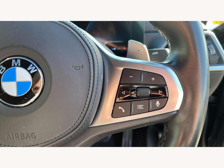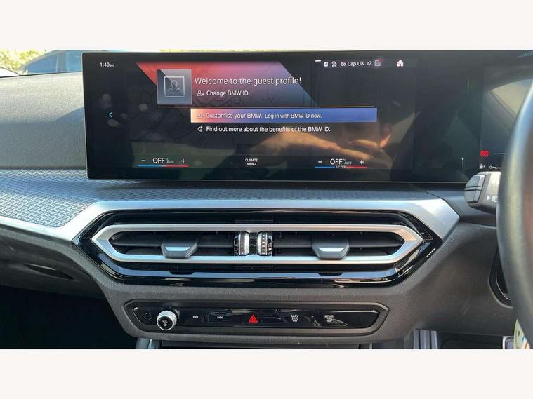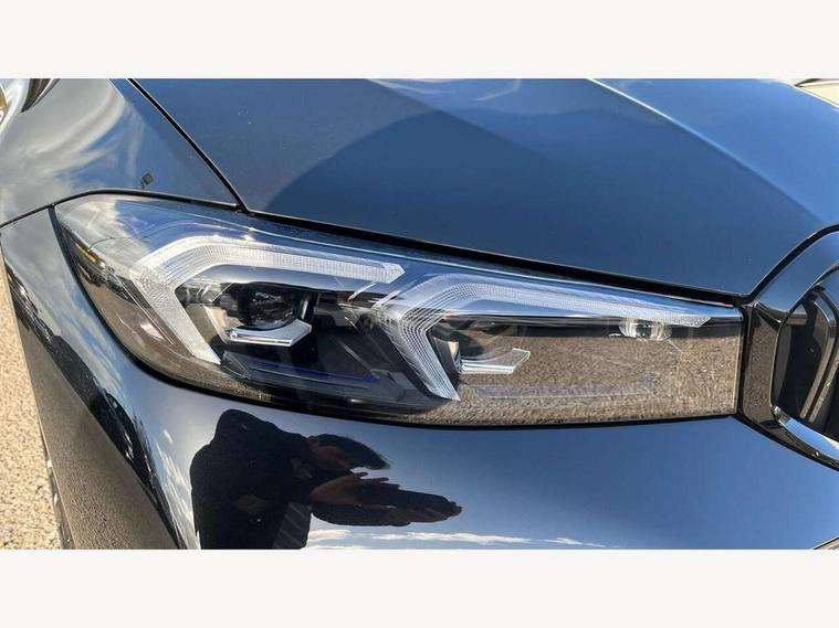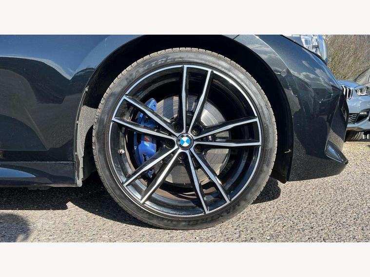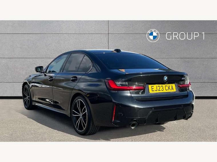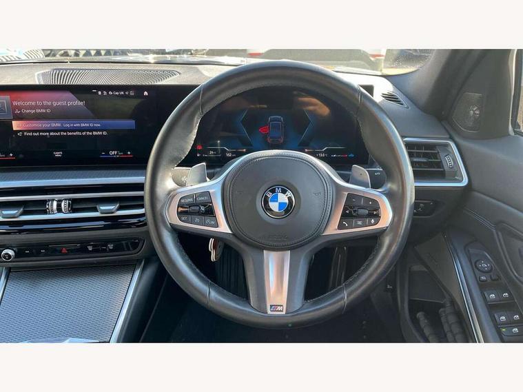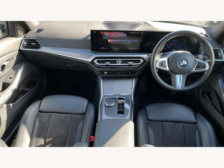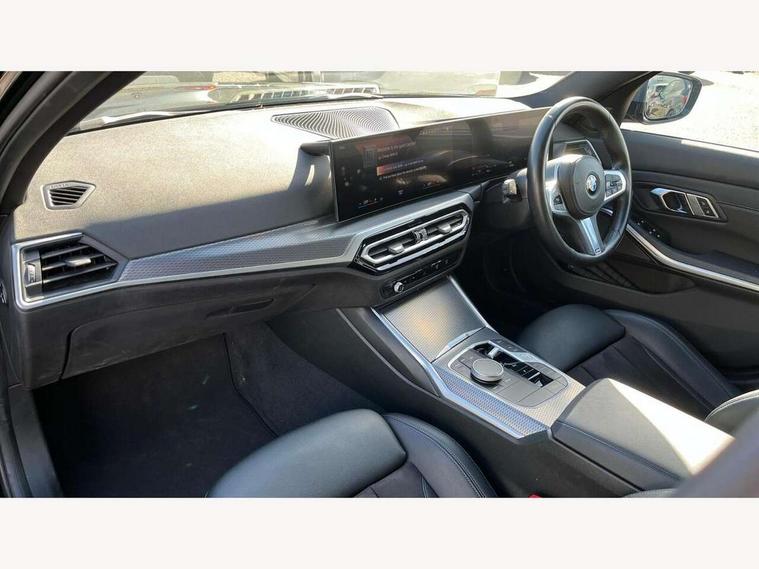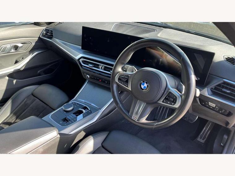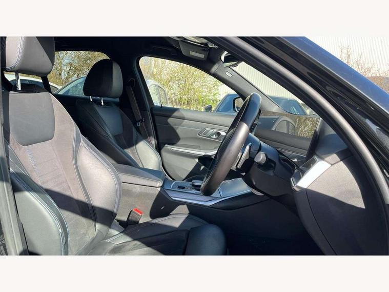 Active guard plus, Attentiveness assist, Automatic Start/stop button, BMW iDrive, BMW Teleservices, Condition based service, ConnectedDrive Services, Driving experience switch, Live cockpit plus with Navigation + 12.3" instrument display + 14.9" display, Intelligent voice assist, 2 USB, 4G LTE connect, Oil sensor for level and grade, Preparation for driver assistance, Shifting point display, Variable sport steering, Double joint spring strut front axle, Electronic differential lock control (EDLC), Fuel tank breather system, M sport suspension, Sport automatic transmission with steering-wheel mounted gearshift paddles and launch control, DAB tuner, 3rd brake light, Acoustic glazing, Automatic headlight beam throw control with load dependent regulating reaction, dynamic compensation of braking dive and acceleration squat, BMW emblem, engine compartment lid and tailgate, Body colour roof fin, Door sill strips, Electric windows - front and rear, with open/close fingertip control, anti-trap facility and comfort closing, Follow me home headlight function, Front and rear bumper system with replaceable deformation elements, Front apron plastic in body colour, Fuel filler flap - right rear in body colour, Heated washer jets, High gloss shadow line exterior trim, Illuminated bow type door handles in body colour drivers side with door lock, Interior rear view electrochromatic mirror with automatic anti dazzle function, LED headlights with LED daytime running lights and LED turn indicator, LED rear lights, Licence plate panel integrated into front bumper and tailgate, Matt black B-pillar finsher, Matt black window recess cover, Model designation on right side of tailgate, One piece front bumper cover including towing eye cover in body colour, Rain sensor with automatic headlight activation, Rear boot, Rear side wing doors, Reversing lights, Side frame decorative moulding black matt, Visible exhaust tailpipe finisher, Welcome lights in interior and door handle area, 12V power socket in front storage compartment, 2 front cupholder in centre console with clamping elements and matt black inlay, 3 seat bench in 2nd row, 3 zone automatic air conditioning, 40:20:40 split folding rear seat with loading system, Ambient inside door handle light, Ambient light design projected onto the left and right entering and exiting area, Ambient lighting front and rear with 9 selectable colours, Ambient storage compartment lighting in the centre console, Anthracite headlining, Armrest integrated in front and rear door trim + front centre console armrest, BMW ID, Contour lighting in instrument panel and door trim panel, Cruise control operation in steering wheel, Driver backrest width adjustment, Folding rear centre armrest with 2 cupholders, Front and rear ambient footwell lighting, Front and rear door exit lighting (left / right), Front and rear headrests, Front and rear reading lights, Front and rear velour floor mats, Front sport seats, Heated front seats, Height adjustable mechanically and infinitely variable steering column, Illuminated armrest storage compartment, Illuminated glove compartment, Illuminated luggage compartment, Lashing eyelets in luggage compartment, M Sport multifunction leather steering wheel, Make-up mirror lights, Single front passenger seat, Standard seat for driver and passenger with manual adjustment, Sunvisors with vanity mirrors and ticket pocket, Toolkit located in luggage compartment, Connected pack professional - 3 Series Saloon/Touring, Interior and exterior mirror pack - 3 Series Touring/Saloon, M Aerodynamics package - 3 Series Saloon/Touring, M sport exterior styling pack - 3 Series Saloon/Touring, Storage compartment pack - 3 Series Saloon/Touring, 3x3 point rear seatbelts, BMW emergency call, Child locks on rear doors, Crash sensor activating of airbags, Unlocking doors, hazard warning lights, interior light, safety battery terminal, Driver and front passenger with seat occupancy detection for driver's and passenger side, Driver and passenger side airbags, body protection at side and airbags deploy from seat backrests, Dynamic brake control, Dynamic stability control + (DSC+) - Anti-lock Braking System (ABS) with brake assist and cornering brake control + Automatic Stability Control (ASC), Dynamic Traction Control - DTC, Electric parking brake including automatic hold function and automatic release of the parking brake when driving off, Head airbags in 1st and 2nd row, head protection at side, curtain airbags open from headliner above 1st and 2nd row, Plastic fuel tank, Side impact protection, Tyre pressure monitoring with three level warning strategy, Ventilated front and rear disc brakes, Warning triangle and first aid kit, Alarm system, Centre lock switch, Closing system with central locking, Electronic vehicle immobiliser,