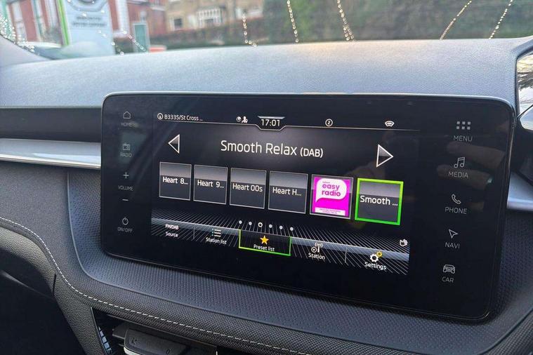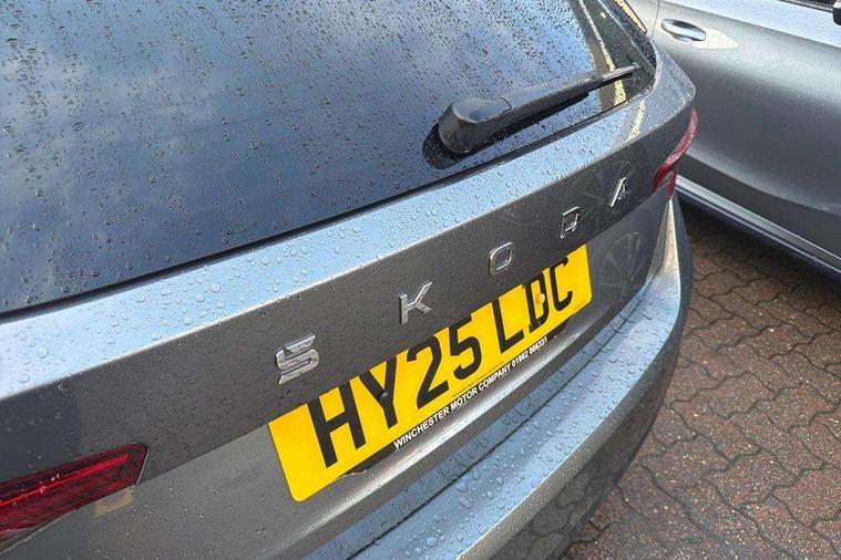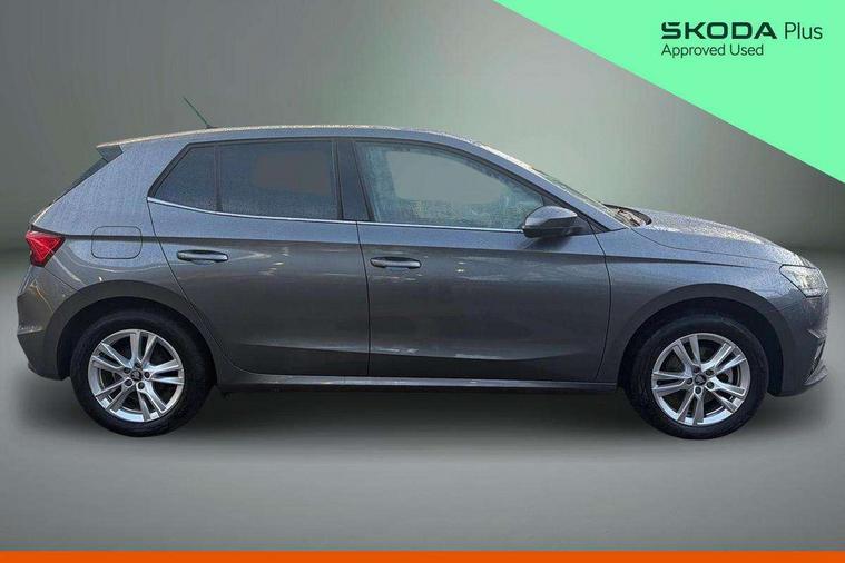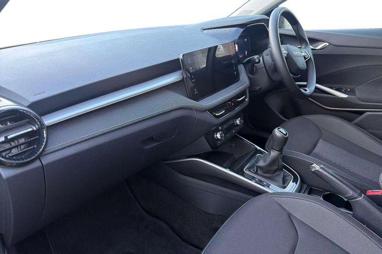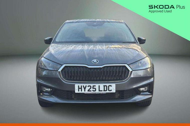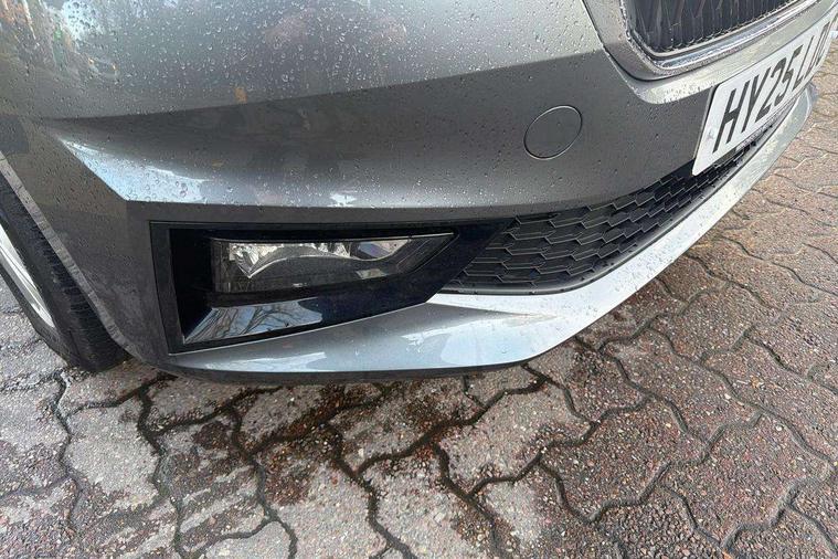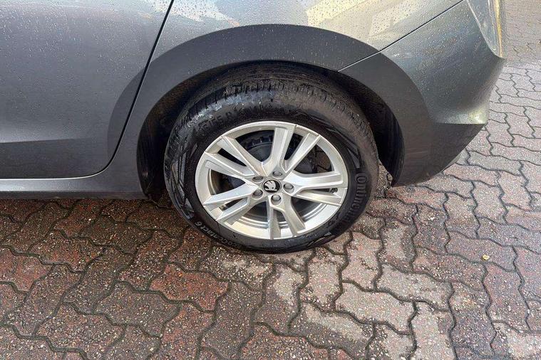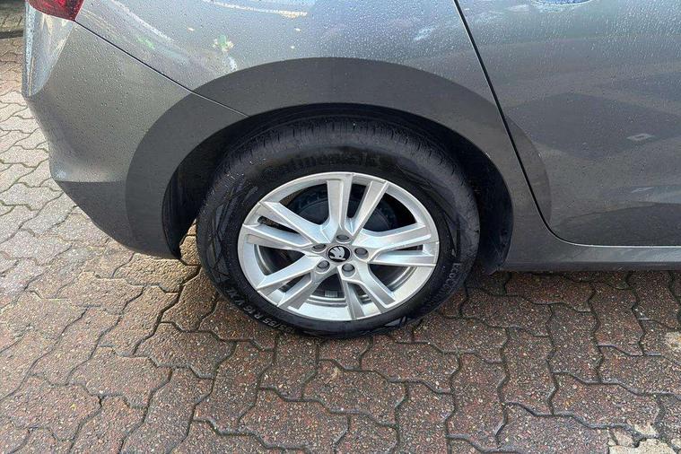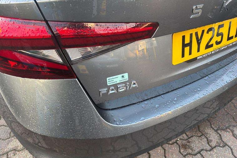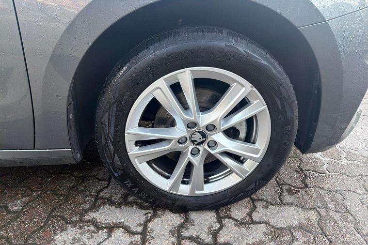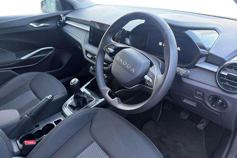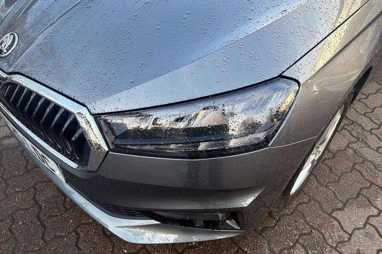 Advanced driver attention and drowsiness monitor, Bluetooth connection, Electromechanical power steering, Exterior temperature gauge, Service interval indicator, Traffic sign recognition, Virtual cockpit with 10.25" colour display, Wireless SmartLink for Apple CarPlay and Android Auto, 6 Speakers (4 in front and 2 in rear), 9.2" colour display skoda navigation system with voice control and web radio, Auxiliary socket for external MP3 player, DAB digital radio reception, Auto dimming rear view mirror, Body colour door mirrors, Body coloured bumpers, Chrome window surround, Door mirror integrated indicators, Front and rear electric windows, Front window wiper intermittent control, Headlight range control - Automatic, Ice scraper in fuel cap, LED 3rd brake light, LED daytime running lights with coming and leaving home feature, LED rear lights, Privacy glass, Rear LED fog light, Rear side wing doors, Rear window wiper with washing nozzles, Roof mounted spoiler, SKODA tailgate lettering in chrome, Unique dark chrome design logo on alloy wheels, 2 LED reading lights in front and rear, 3 rear headrests, Backrest split and folding, Central console with removable cup holder and storage box, Chrome handbrake release button, Comfort seats, Door sills with fabia badging, Dual zone air conditioning with climatronic electronic control, Fabric upholstery, Front centre armrest, Gearshift knob/handle in leather, Hand brake lever handle in leather, Height adjustable front headrests, Height adjustable front seats, Height adjustable steering wheel, ISOFIX and TopTether anchorage points to the outer rear seats, ISOFIX and TopTether on the front passenger seat, Luggage compartment lighting, Manually adjustable lumbar support in front seats, Metallic grey interior door handles, Pollen filter, Rear seat bench unsplit, Single front passenger seat, Skoda lettering on steering wheel, Storm grey headlining, Sun visors with mirror and airbag label on passenger side, Textile floor mats, Ticket holder, Umbrella in drivers door, 3-point height adjustable front seats belts with pretensioner and force limiter, Automatic warning lights in case of crash, Driver and passengers airbag with switch off function, e-Call+, ESC including ABS, MSR, ASR, EDS, HBA and XDS, Front and rear seat belt warning, FRONT ASSIST (AEB City and AEB Inter Urban), Front side airbags, Head airbags, One tone horn, Pedestrian protection, Three rear 3-points safety seat belts with pretensioner and force limiter including stop function for outer rear seat belts, Tyre pressure monitoring system, Anti-theft alarm system including immobiliser, interior monitoring, backup horn, and towing protection, Central locking with radio remote control, interior controls, SAFE function and 2 foldable keys, Black painted air vents, Metallic grey central console cover, Metallic grey upper decorative trim, Satin black door and side trim panel in front, Textile microsuede grey lower decorative trim with art grey stitching, Anti-theft wheel bolts protection, Super-low rolling resistance tyres,