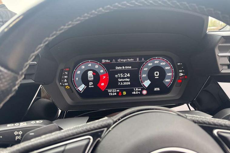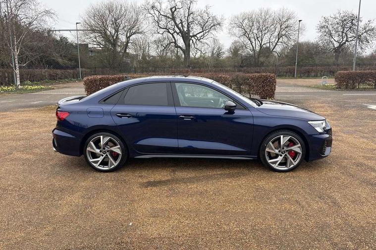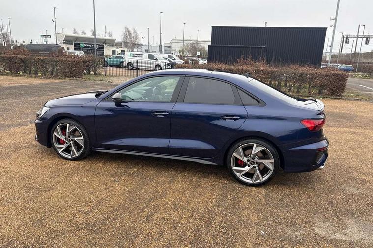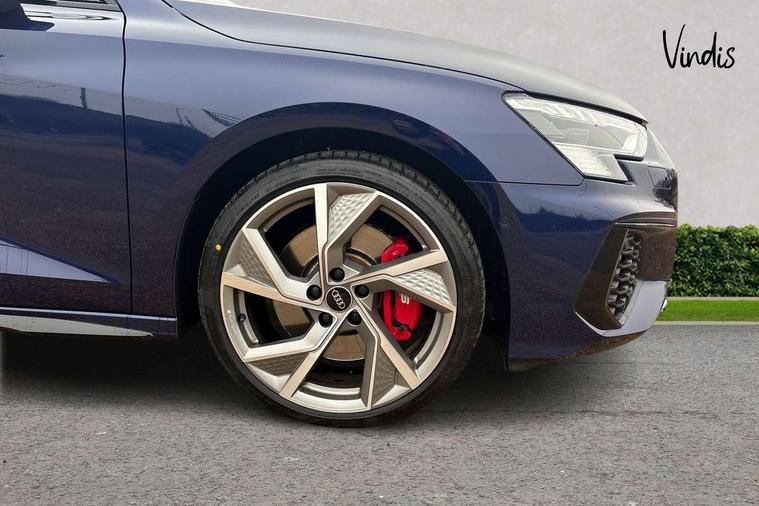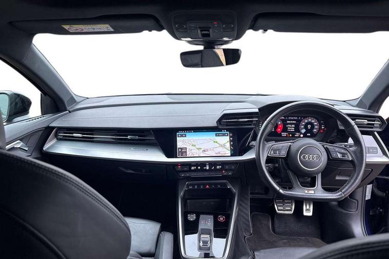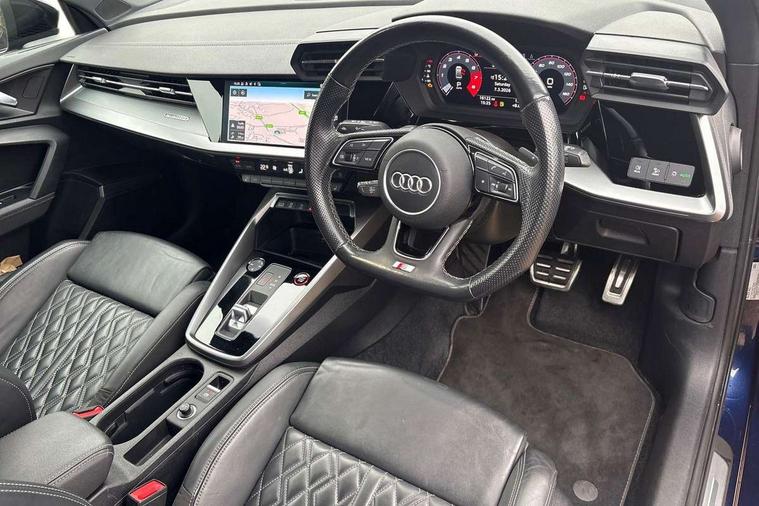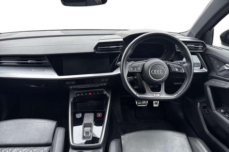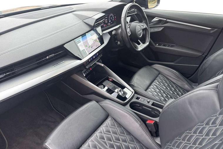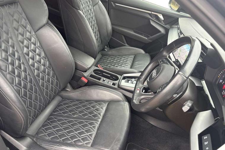 Audi drive select (Auto, Comfort, Dynamic, Efficiency and Individual), Audi smartphone interface, Audi Virtual Cockpit - 10.25" digital and colour instrument cluster, Automatic start/stop system with recuperation, Bluetooth interface, Camera based traffic sign recognition, Collision avoidance assistant, e-Call (emergency call), Lane departure warning system, MMI Navigation Plus with high resolution 10.1" colour touch screen display, Progressive steering, Service indicator, Trip computer, Voice control system with natural language interaction, Quattro permanent all wheel drive, S sport suspension with spring damper adjustment and lowering by 15mm, 2xUSB-C connection with data and charging functions, CD player, DAB Digital radio, 3rd brake light, Acoustic glass windscreen, Audi Beam uses LEDs to project the Audi logo onto the ground as you exit your S3, Auto dimming frameless rear view mirror, Dual branch oval twin tailpipes in chrome plated finish, Electrically adjustable/heated/folding/auto dimming door mirrors with integrated LED indications + kerb view function for passenger side, Front electric windows, Headlight washers, Illuminated door sills with aluminium inserts at the front with S logo, LED daytime running lights, LED headlights with LED rear lights and dynamic rear indicators, Light and rain sensors, Model and engine designation badges at rear, Privacy glass - dark tinted rear window, rear door and side windows, Rear boot, Rear electric windows, Rear side wing doors, 12V socket and storage compartment in front centre console, 3 seat bench in 2nd row, 3 spoke flat bottomed leather multifunction sport steering wheel with gear shift paddles, 4 way electrically adjustable lumbar support for driver and front passenger, 60/40 split folding rear seat bench, Black cloth headlining, Dual zone electronic climate control, Fine Nappa leather upholstery with front sports seats S embossed logo, Front and rear centre armrest in artificial leather, Front and rear headrests, Front/rear floor mats, Height and reach adjustable steering wheel, Interior lighting - glove compartment light and right hand side, Luggage compartment floor covering, Manual boot compartment lid, Manually adjustable front seats, Single front passenger seat, Stainless steel pedals and front footrest in black, Aluminium interior elements pack - A3, Black styling pack - A3 Saloon/S3, Body styling design pack - S3, Extended ambient lighting pack - A3/S3 Saloon, Storage pack - A3/S3 Saloon, Technology pack with parking assist - A3 Saloon, 3x3 point rear seat belts, Driver and front passenger airbag with passenger airbag deactivation, Electronic Stabilisation Control (ESC) including ABS, ASR and EDL, First aid kit with warning triangle and 2 safety vests, Front side airbags with head airbags and interaction airbag, Pre-sense front with pedestrian and cyclist detection, Seatbelt monitoring, Tyre pressure loss indicator, Anti theft alarm, Anti-theft wheel bolts, Electronically operated child locks, Immobiliser, Remote control central locking, Aluminium air vent surrounds, Dark spectrum aluminium inlays, accent surfaces in the dashboard and centre console in platinum grey silk effect paint finish,