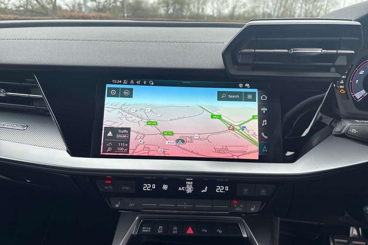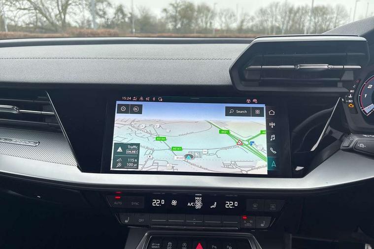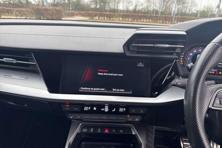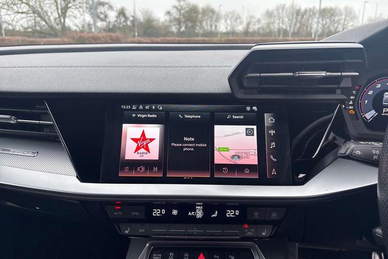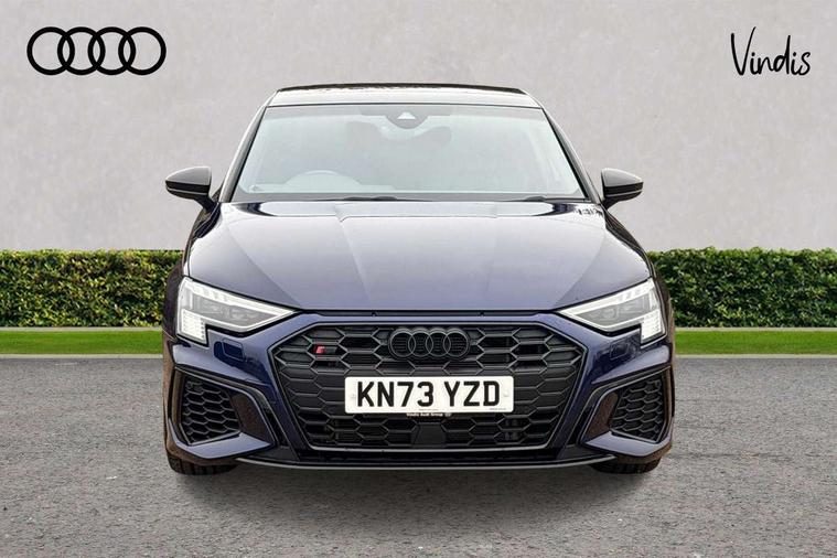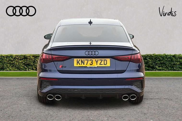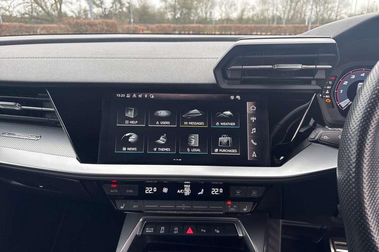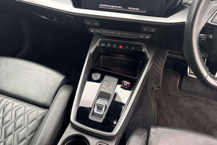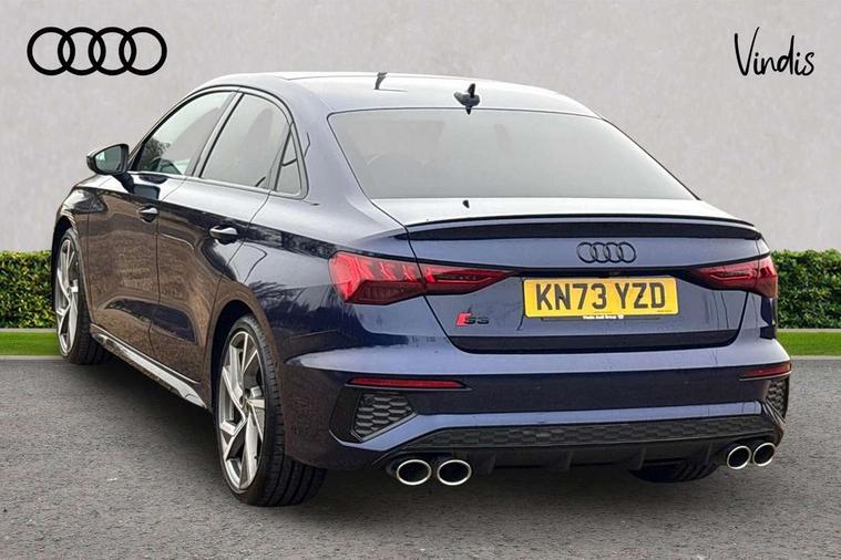 Audi drive select (Auto, Comfort, Dynamic, Efficiency and Individual), Audi smartphone interface, Audi Virtual Cockpit - 10.25" digital and colour instrument cluster, Automatic start/stop system with recuperation, Bluetooth interface, Camera based traffic sign recognition, Collision avoidance assistant, e-Call (emergency call), Lane departure warning system, MMI Navigation Plus with high resolution 10.1" colour touch screen display, Progressive steering, Service indicator, Trip computer, Voice control system with natural language interaction, Quattro permanent all wheel drive, S sport suspension with spring damper adjustment and lowering by 15mm, 2xUSB-C connection with data and charging functions, CD player, DAB Digital radio, 3rd brake light, Acoustic glass windscreen, Audi Beam uses LEDs to project the Audi logo onto the ground as you exit your S3, Auto dimming frameless rear view mirror, Dual branch oval twin tailpipes in chrome plated finish, Electrically adjustable/heated/folding/auto dimming door mirrors with integrated LED indications + kerb view function for passenger side, Front electric windows, Headlight washers, Illuminated door sills with aluminium inserts at the front with S logo, LED daytime running lights, LED headlights with LED rear lights and dynamic rear indicators, Light and rain sensors, Model and engine designation badges at rear, Privacy glass - dark tinted rear window, rear door and side windows, Rear boot, Rear electric windows, Rear side wing doors, 12V socket and storage compartment in front centre console, 3 seat bench in 2nd row, 3 spoke flat bottomed leather multifunction sport steering wheel with gear shift paddles, 4 way electrically adjustable lumbar support for driver and front passenger, 60/40 split folding rear seat bench, Black cloth headlining, Dual zone electronic climate control, Fine Nappa leather upholstery with front sports seats S embossed logo, Front and rear centre armrest in artificial leather, Front and rear headrests, Front/rear floor mats, Height and reach adjustable steering wheel, Interior lighting - glove compartment light and right hand side, Luggage compartment floor covering, Manual boot compartment lid, Manually adjustable front seats, Single front passenger seat, Stainless steel pedals and front footrest in black, Aluminium interior elements pack - A3, Black styling pack - A3 Saloon/S3, Body styling design pack - S3, Extended ambient lighting pack - A3/S3 Saloon, Storage pack - A3/S3 Saloon, Technology pack with parking assist - A3 Saloon, 3x3 point rear seat belts, Driver and front passenger airbag with passenger airbag deactivation, Electronic Stabilisation Control (ESC) including ABS, ASR and EDL, First aid kit with warning triangle and 2 safety vests, Front side airbags with head airbags and interaction airbag, Pre-sense front with pedestrian and cyclist detection, Seatbelt monitoring, Tyre pressure loss indicator, Anti theft alarm, Anti-theft wheel bolts, Electronically operated child locks, Immobiliser, Remote control central locking, Aluminium air vent surrounds, Dark spectrum aluminium inlays, accent surfaces in the dashboard and centre console in platinum grey silk effect paint finish,