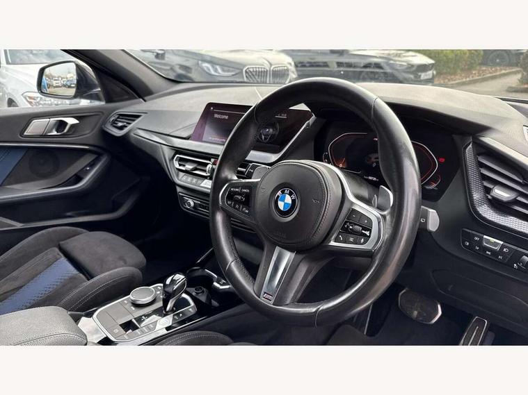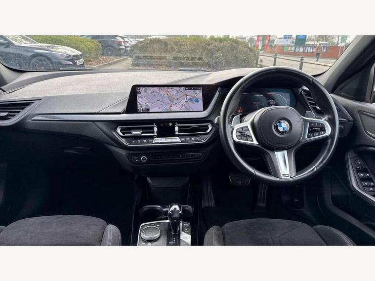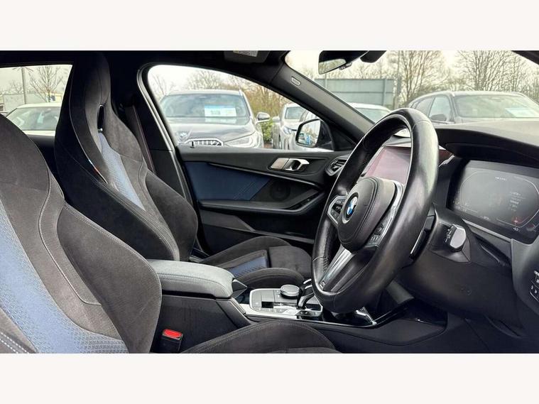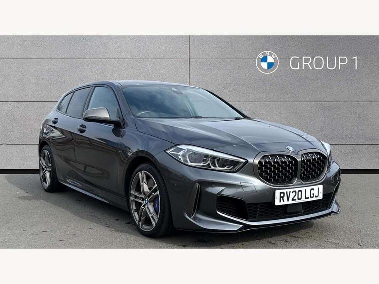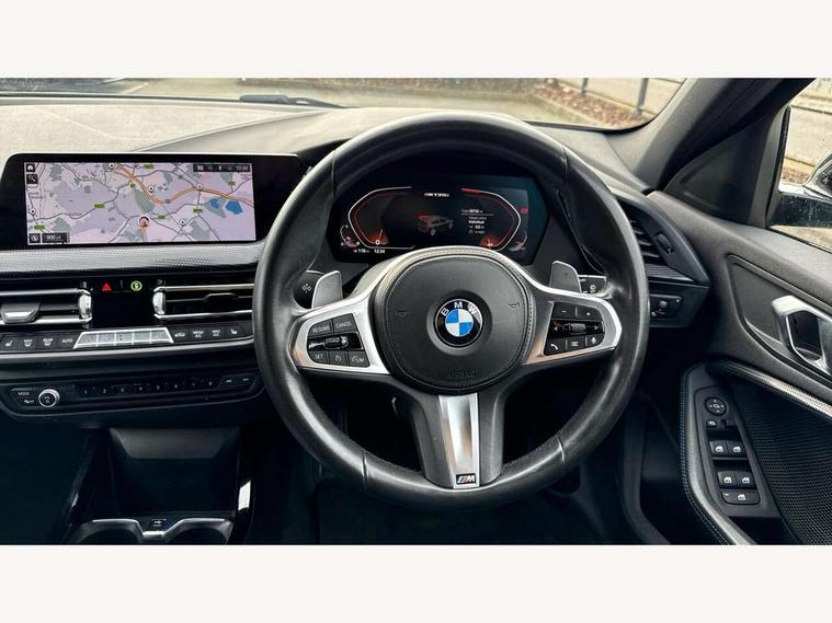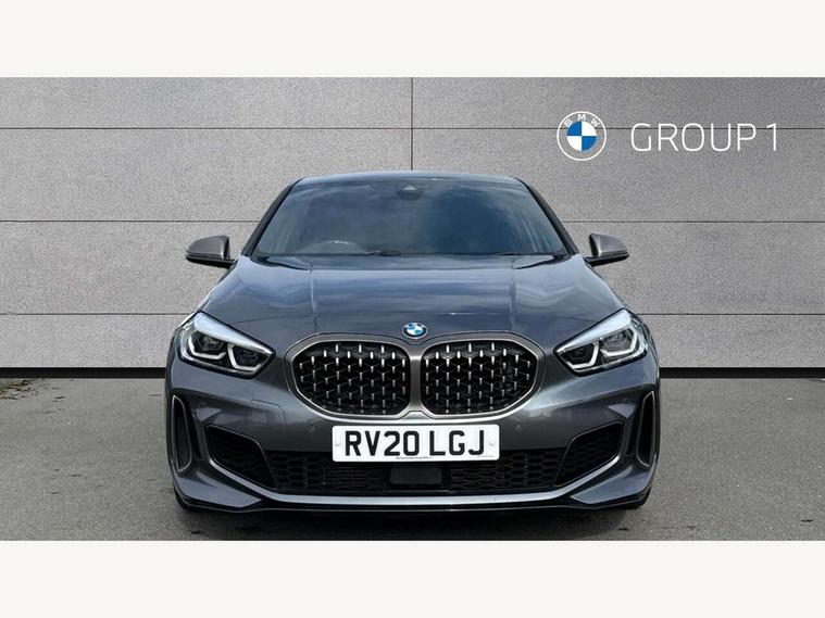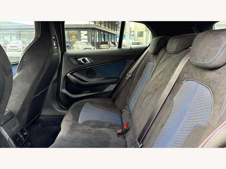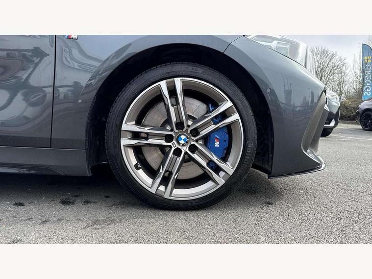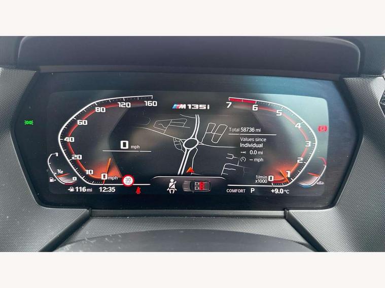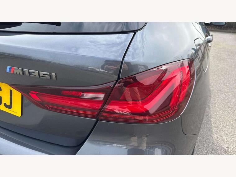 Active guard plus, Attentiveness assist, BMW Live Cockpit Professional sat nav system including 10.25" high resolution display and Intelligent Voice Assistant, BMW Online services, BMW Teleservices, Check Control warning system for monitoring of lights and door/luggage compartment open warning, Eco pro mode, Gearshift time display in manual mode, Integrated owners handbook, M Sports steering, Oil sensor for level and grade, On board computer, Optimum shift indicator, Personal Profile, Pull away assistant, Speed limiter, Sporty fast gear shifting in sport mode, Aluminium lightweight construction, Anti roll bar front and rear, Balancer shaft, Double VANOS, Drive Performance Control, Eight speed sport automatic transmission with electronic selector lever, Electronic differential lock, Engine cover with M performance designation, High precision injection, Larger fuel tank capacity (50 litres), Launch control, Petrol Particulate Filter, VALVETRONIC engine management, Bluetooth audio streaming, DAB Digital radio, Auto dimming rear view mirror, Automatic headlight beam throw control, Body colour door handles, Cerium grey exterior mirror caps, Direction indicator side lights in exterior mirrors, Electric folding and anti dazzle exterior mirrors, Fading support, Follow me home headlights, Front and rear electric windows with open and close fingertip control, anti trap facility and comfort closing, Front door sill finishers with M135i designation, Green tinted heat protection glazing, Heated, electrically adjustable exterior mirror aspheric on driver side, convex on passenger side, High gloss shadow line exterior trim, High gloss shadowline window frame, Recess cover mirror frames and B/C pillar embelisher trim, High level third brake light, Kidney grille frame in Cerium Grey with Mesh design, LED daytime running lights, LED eyebrow turn indicators, Lightweight engineering, M logo designation side in cerium grey, M performance exhaust system, M rear spoiler, Matt black air guide grilles, Model designation on right side of tailgate, Nearside reverse light in rear light cluster, Rain sensor including auto headlights activation, Rear fog lights, Rear window wiper, Round exhaust system with twin cerium grey tailpipes in left and right split, Shark fin antenna, Visible VIN plate, Welcome lighting, Windscreen wipers with integrated washing jets, 12V power socket in centre console, 2 cupholders in front centre console, 3 rear seat head restraints, 3 spoke M sports design leather steering wheel finished in nappa leather with specific M badge, Anthracite headlining, Anthracite Velour floor mats, Child seat ISOFIX attachment for two outer rear seats and front passenger seat with anchorage points, Conditioned based service, Driver and front passenger seat heating, Driver side folding compartment in instrument panel, Folding rear clothes hook, Folding rear seats, Four grab handles integrated in roof lining, Front and rear door pockets, Front and rear side armrest integrated into door trim, Front armrest foldable with integrated storage compartment, Front M seats, Glove compartment, Height adjustable front head restraints, Manual adjust steering wheel, Multi-function controls for steering wheel, Rear seat backrest with manual 60:40 split folding with 3 top tether clips integrated on rear of seat panels, Storage compartment in centre console, Sun visors with vanity mirrors and insert tab, Two zone automatic air conditioning, Connected pack professional - 1 Series, Extended Lighting pack - 1 Series M135i, Extended storage pack - 1 Series, Interior lights pack - 1 Series, Luggage compartment pack - 1 Series, M Sport exterior styling aerodynamics pack - 1 Series 135i, 2 tone horn, 3 point seatbelts on all seats, front pyrotechnic belt tensioners, stopper and belt force limiters, rear coded belt buckles, Airbags - Front driver and passenger, front and rear head, front side, curtain head protection, Anti lock braking system (ABS) with brake assist, BMW emergency call, Brake drying, Braking readiness, Crash sensor activating central locking release, hazard warning lights, fuel cut off, interior lighting + activation of safety battery terminal clamp, Driver and front passenger seat belt security check, Dynamic stability control + (DSC+), Dynamic Traction Control - DTC, Electrically operated hand brake, Front and rear disc brakes, Front passenger manual airbag deactivation, M Sport braking system, M sport seatbelt, Rear child proof door locks, Seatbelt warning, Side impact protection, Torsen mechanical limited slip differential, Tyre pressure monitoring system, Warning triangle and first aid kit, Automatic drive away locking facility, Central locking switch for all doors, fuel filler cap and luggage compartment, Deadlocking function system to all doors, Locking wheel bolts, Remote control with integrated key with High-gloss Black inlay and M designation and 1 button for open/ close lock, window, open luggage compartment, Start/stop button with comfort go keyless engine start and auto start stop deactivation button, Thatcham Cat.1 alarm and immobiliser, Contrast stitching on instrument panel, 18" Burnished M double spoke Bi-colour alloy wheels finished in Cerium grey matt - style 556M, BMW mobility system, Reduced rolling resistance tyres,