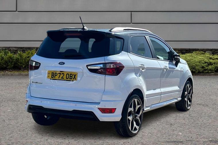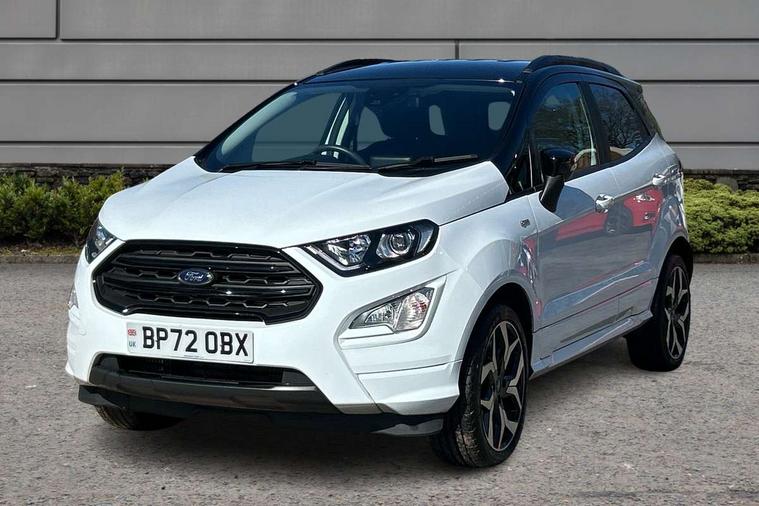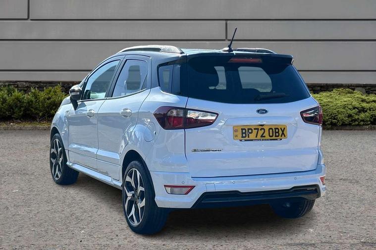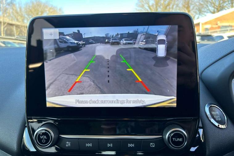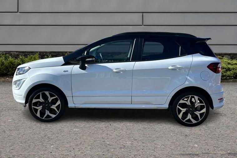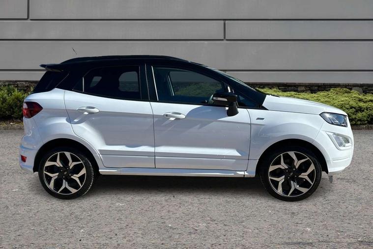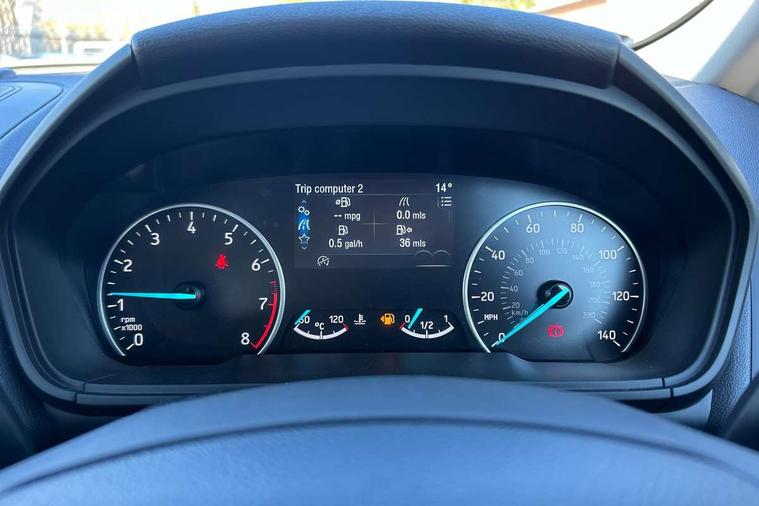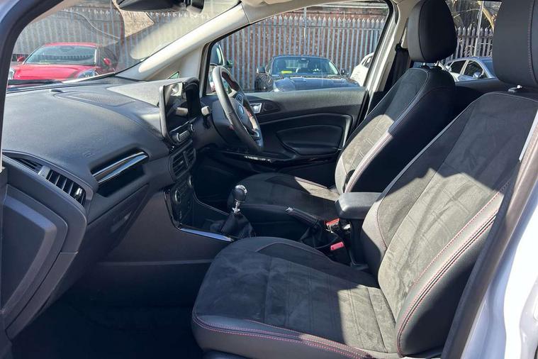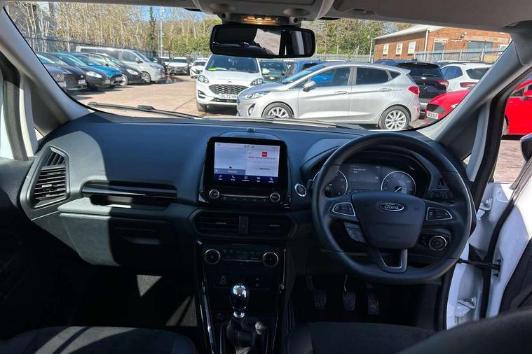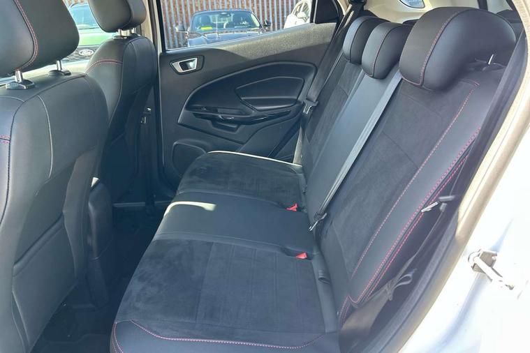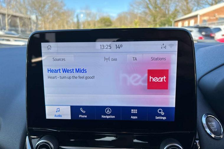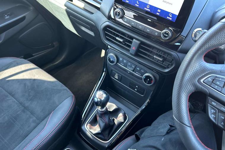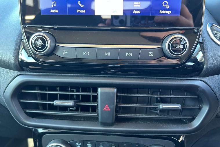 Cruise control, e-Call (emergency call), Easy fuel capless refuelling system, Ford SYNC 3 nav system with DAB radio, 8" screen, emergency assistance, Apple car play/Android auto, 2x USB, 6 speakers, Ford pass connect, Intelligent speed limiter, PAS, Rear parking sensors, Rear view camera, Traffic sign recognition, Trip computer, Sports suspension, Steering wheel mounted audio controls, Auto dimming rear view mirror, Automatic front wipers, Automatic headlights, Black roof rails, Body colour door handles, Body coloured bumpers, Chrome lower window surround, Electrically adjustable and heated door mirrors, Front fog lights, Front grille bars and surround in black, Headlight levelling control, Large rear spoiler, LED day running lights, LED third brake light, Power front and rear windows, Puddle lights, Quickclear' heated windscreen, Rear side wing doors, Rear wiper, ST Line body styling kit - Black headlamp bezel, front and rear sport bumpers, body colour lower door claddings, 12V socket in front and rear, 3 seat bench in 2nd row, 60/40 split rear seats, Ambient lighting, Centre console with sliding front armrest, Cooled glovebox, Courtesy lights with map reading light, Driver seat height/lumbar adjust, Driver's side glovebox, Driver/passenger sunvisors and lidded vanity mirrors, EATC - Electronic Auto Temperature control, Folding grab handles, Front head restraints, Front seat back map pockets, Illuminated glovebox, Illuminated luggage compartment, Isofix system on outer rear seats, Luggage compartment carpet, Neosuede/Partial sensico leather upholstery, Overhead console with sunglasses holder, Rake adjustable rear seats, Reach + rake adjustable steering column, Rear headrests, Sensico trimmed steering wheel, handbrake and gearshift gaiter with red stitching, Single front passenger seat, ST-Line Front floor mats with red stitching, Stainless steel sports pedals, Storage drawers under front seats, Tie down hooks, Variable boot floor, 3x3 point rear seatbelts, ABS, Autonomous emergency braking, Child locks on rear doors, Curtain airbags, Driver airbag, Drivers knee airbag, Electronic Stability Programme with hill launch assist, Front passenger airbag deactivation, Front side airbags, Passenger airbag, Pre collision assist system with AEB, Seatbelt reminder for driver and front passenger, Traction control, Tyre pressure monitoring system, Immobiliser, MyKey system, Remote central locking, Thatcham 1 volume sensing alarm, Low rolling resistance tyres, Tyre inflation kit,