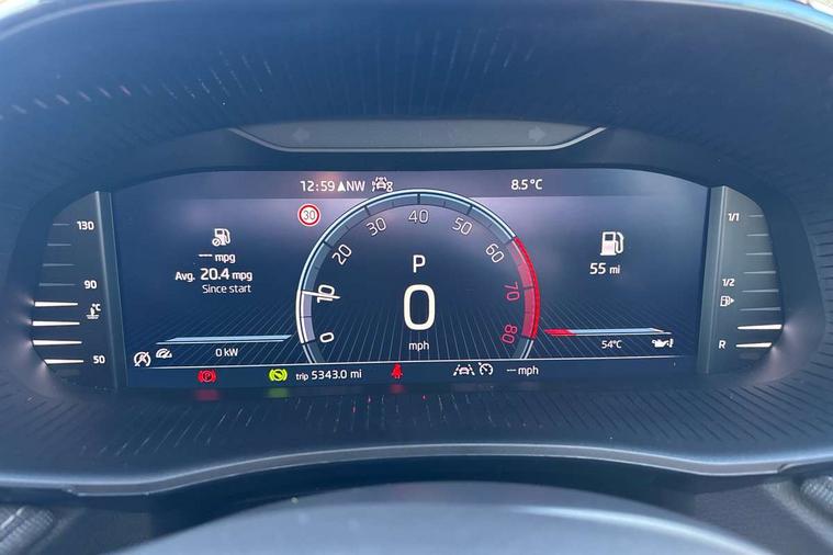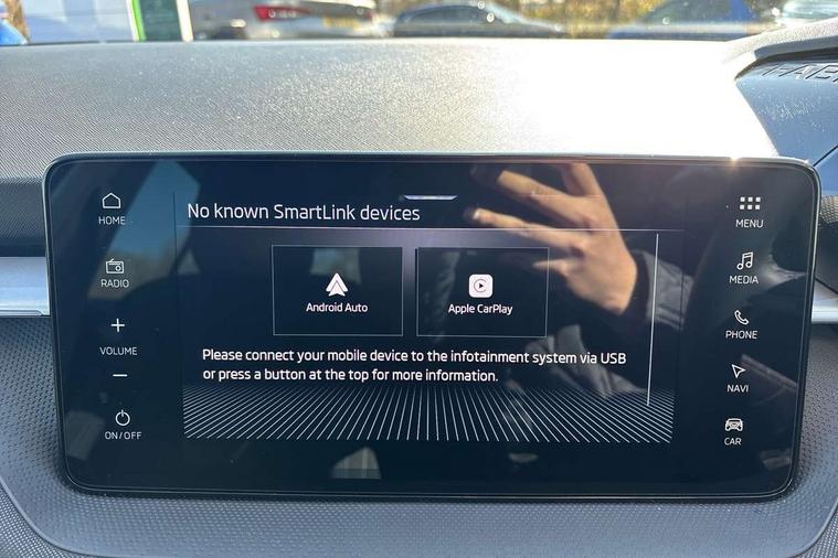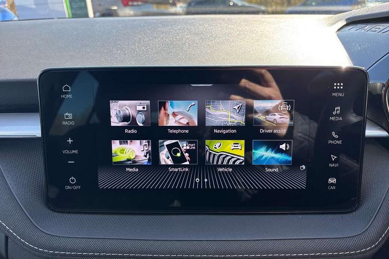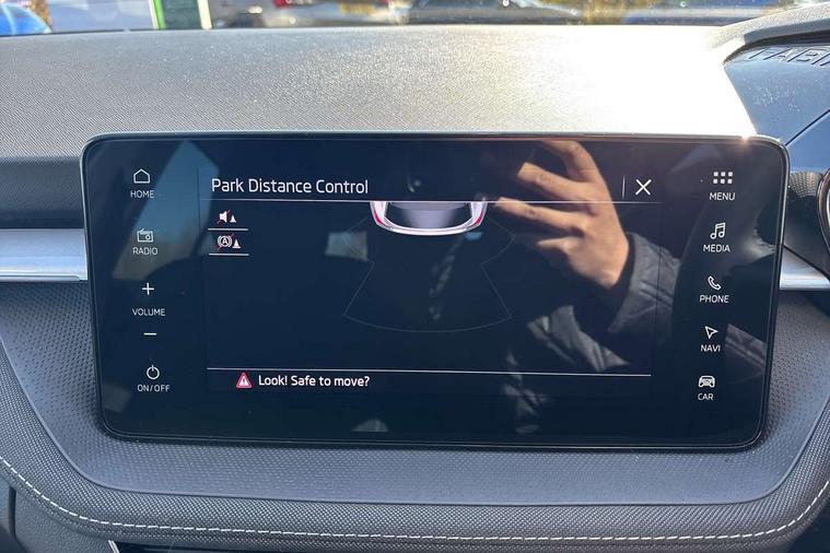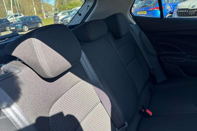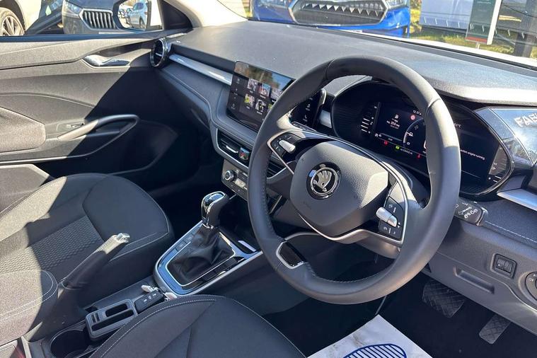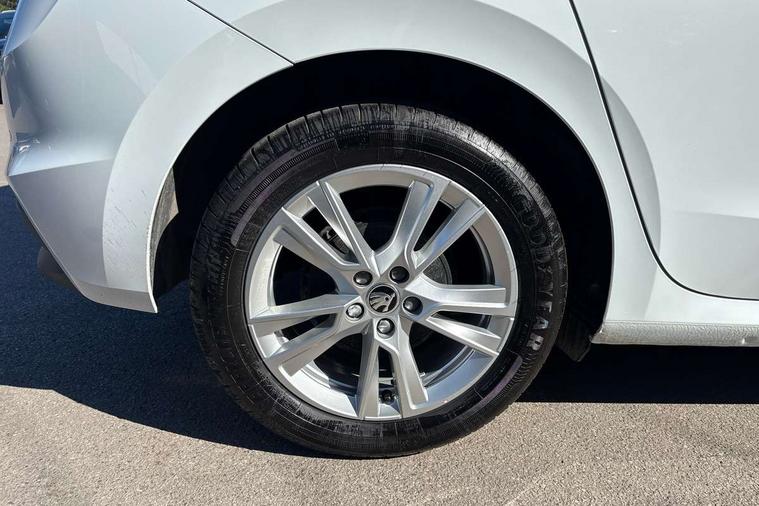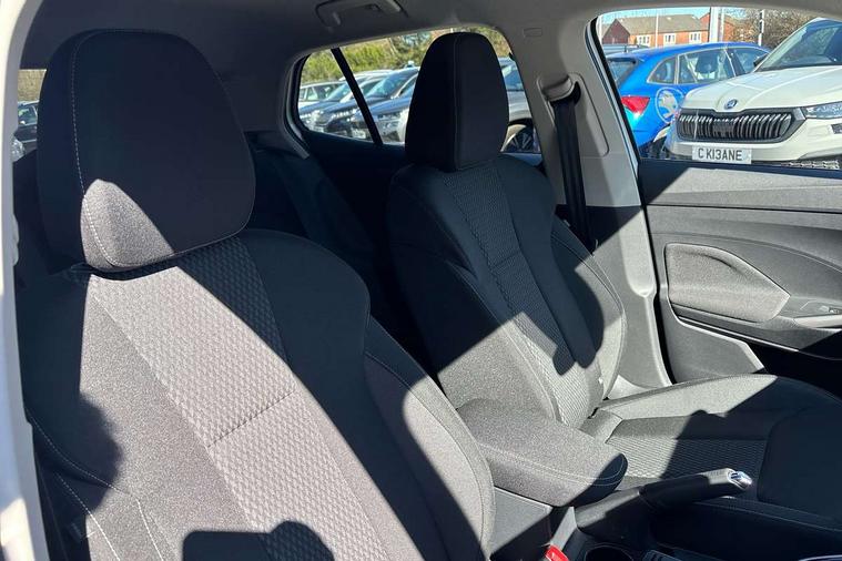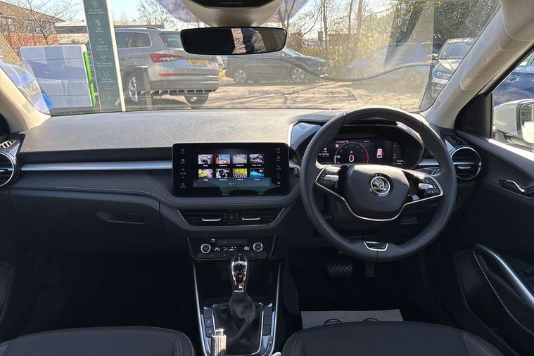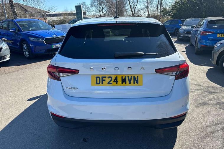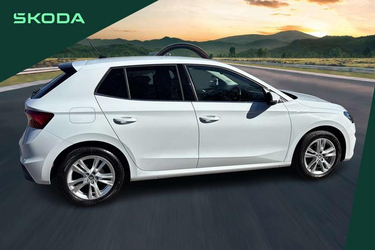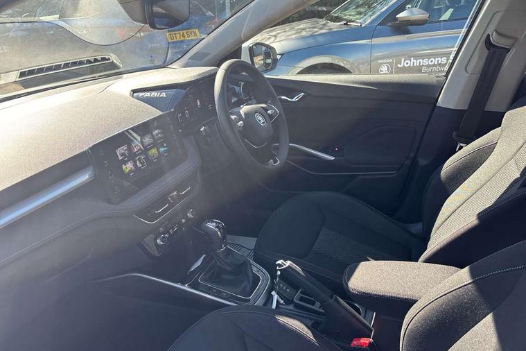Advanced driver attention and drowsiness monitor, Bluetooth connection, Electromechanical power steering, Exterior temperature gauge, Service interval indicator, Traffic sign recognition, Virtual cockpit with 10.25" colour display, Wireless SmartLink for Apple CarPlay and Android Auto, 6 Speakers (4 in front and 2 in rear), 9.2" colour display skoda navigation system with voice control and web radio, Auxiliary socket for external MP3 player, DAB digital radio reception, Auto dimming rear view mirror, Body colour door mirrors, Body coloured bumpers, Chrome window surround, Door mirror integrated indicators, Front and rear electric windows, Front window wiper intermittent control, Headlight range control - Automatic, Ice scraper in fuel cap, LED daytime running lights with coming and leaving home feature, LED rear lights, Privacy glass, Rear LED fog light, Rear side wing doors, Rear window wiper with washing nozzles, Roof mounted spoiler, SKODA tailgate lettering in chrome, Third brake light, 2 reading lights in front and 2 reading lights in rear, 3 rear headrests, Backrest split and folding, Central console with removable cup holder and storage box, Chrome handbrake release button, Comfort seats, Door sills with fabia badging, Dual zone air conditioning with climatronic electronic control, Fabric upholstery, Front centre armrest, Gearshift knob/handle in leather, Hand brake lever handle in leather, Height adjustable front headrests, Height adjustable front seats, Height adjustable steering wheel, ISOFIX and TopTether anchorage points to the outer rear seats, ISOFIX and TopTether on the front passenger seat, Luggage compartment lighting, Manually adjustable lumbar support in front seats, Metallic grey interior door handles, Pollen filter, Rear seat bench unsplit, Single front passenger seat, Storm grey headlining, Sun visors with mirror and airbag label on passenger side, Textile floor mats, Ticket holder, Umbrella in drivers door, 3-point height adjustable front seats belts with pretensioner and force limiter, Automatic warning lights in case of crash, Driver and passengers airbag with switch off function, e-Call+, ESC including ABS, MSR, ASR, EDS, HBA and XDS, Front and rear seat belt warning, FRONT ASSIST (AEB City and AEB Inter Urban), Front side airbags, Head airbags, Hill hold control, One tone horn, Pedestrian protection, Three rear 3-points safety seat belts with pretensioner and force limiter including stop function for outer rear seat belts, Tyre pressure monitoring system, Anti-theft alarm system including immobiliser, interior monitoring, backup horn, and towing protection, Central locking with radio remote control, interior controls, SAFE function and 2 foldable keys, Chrome edged air vents, Metallic grey central console cover, Metallic grey upper decorative trim, Satin black door and side trim panel in front, Textile microsuede grey lower decorative trim with art grey stitching, Anti-theft wheel bolts protection, Super-low rolling resistance tyres,