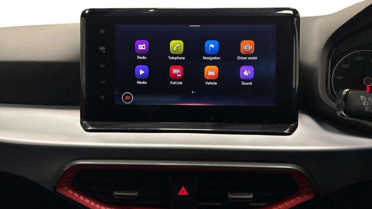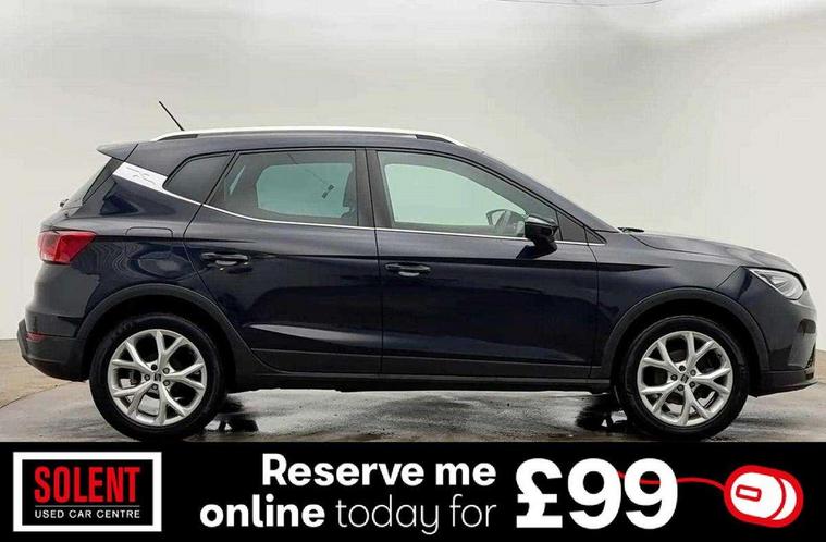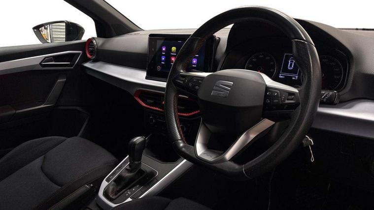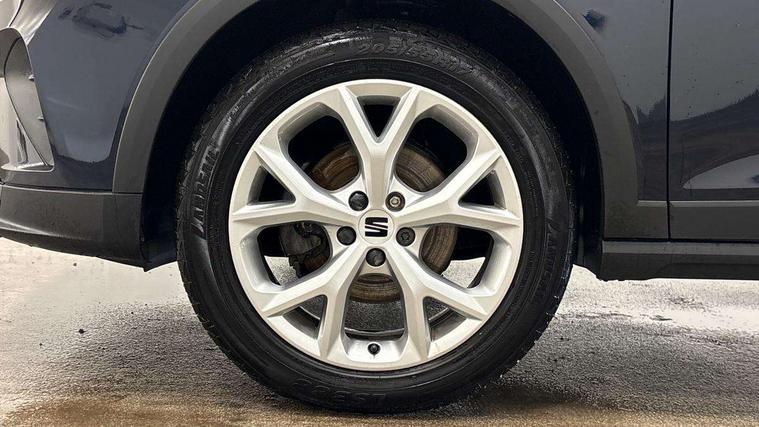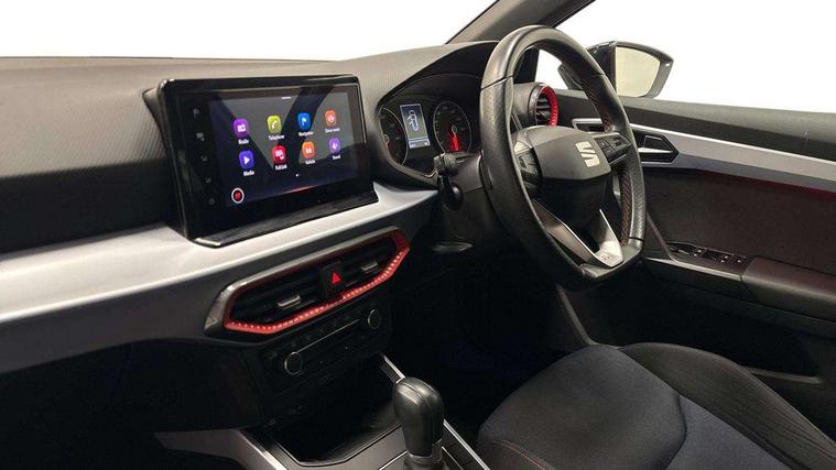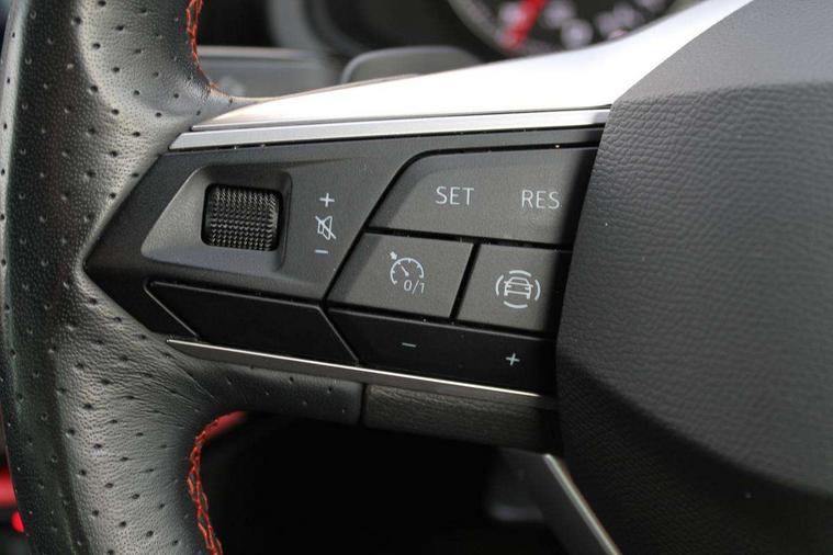 'Lights On' Reminder warning buzzer, 8" Digital cockpit, Digital clock, E-call, Electric speed sensitive power steering, Full Link Smartphone Integration with Mirror Link, Apple Car Play, Google Android Auto with USB Type C cable for Apple and Android compatibility, Lane keeping system, Low fuel warning light, Outside temperature display, Rear parking sensor, RPM counter, Seat connect with safety, service, remote and online, SEAT Drive profile - Four different models normal-sport-eco-individual, steering response, throttle response and gear shifts mode, Trip computer, Bluetooth interface for hands free and audio streaming, DAB digital radio and AM/FM radio, Steering wheel mounted audio controls, Anti theft roof antenna, Auto dimming interior rear view mirror, Automatic activation of hazard warning lights, Body coloured bumpers, Body coloured door handle inserts, Chrome roof rails and window surrounds, Dark tinted rear windows, Electric front/rear windows, Electrically adjustable, heated and folding door mirrors, Front fog lights with cornering function and rear fog light, FULL LED automatic headlights with dynamic headlight range control, coming and leaving home, LED daytime running lights, LED rear tail lights and licence plate lights, Protective side mouldings, Rain sensing wipers, Rear side wing doors, Rear spoiler, Rear window wash/wipe, Roof colour door mirrors, Third brake light, Twin exhaust pipe styling hidden exhaust pipe, Visible VIN plate, Windshield wiper with intermittent control and potentiometer, 2 cupholders, 3 seat bench in 2nd row, 60/40 split folding rear seat, Aircare filter, Black interior roof, Cloth upholstery, Double boot floor, Driver sunvisor with covered mirror + card holder, Dual zone climate control, Front courtesy light with 2x front and 2x rear reading lights, Front sport seats, Gear shift indicator, Height adjustable front seats, Height/reach adjustable steering column, Illuminated boot, Instrument lighting with brightness control, Interior ambient lighting, Interior light in footwell, central console and door panel, ISOFIX points in outer rear seats with top tether anchorage points, Passenger sunvisor with vanity mirror, Perforated flat bottomed leather steering wheel/gear knob/handbrake with red stitching and FR logo, Single front passenger seat, Steering wheel mounted gearshift paddles, Two front and three rear height adjustable headrests, Connectivity pack plus - Arona, Interior chrome pack - Arona, 3 point seatbelts on all rear seats, ABS, Active front headrests, Child locks on rear doors, Driver and front passenger airbags with front passenger airbag de activation, front side and curtain airbags, Electronic stability control, Emergency Brake Assist (EBA) and front assist, Front and rear seatbelt reminder, Hill hold control, Multi-Collision braking, Tiredness recognition system, Traction control, Tyre pressure monitoring system, Alarm with back-up horn, Electronic engine immobiliser, Locking wheel bolts, Remote central locking + deadlocks, Tow away protection, Titan black dashboard, 17" Dynamic alloy wheels,