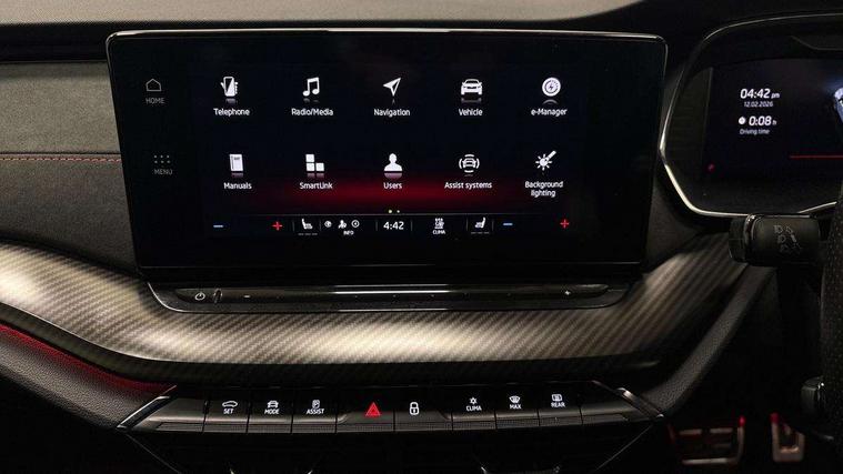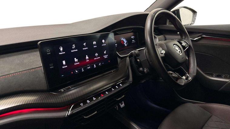 1x USB Type C port in rear view mirror (charging only), 2x USB Type C ports in rear of front centre armrest (charging only), Bluetooth system, Columbus satellite navigation with 10" touchscreen display, E mode button for electric/hybrid drive, eCall emergency system, Front and rear parking sensors with manoeuvre assist, Front assist system, Progressive dynamic steering, Smartlink (includes android auto and mirrorlink), Speed limiter, Turn Assist, Unique iV instrument panel, Virtual Cockpit - 10.25" digital display, Voice control system, Wireless SmartLink for Apple Car Play, 10 amp mains UK 3 pin charge cable mode 2, 16 amp AC charge cable for wallbox/charge points mode 3, E-noise generator for electric drive with noise emitted upto speed of 50km/h, Front and rear stabilizers, 2x USB Type C ports (for charging and data transfer), 8 Speakers, DAB Digital radio, Aero front windscreen wipers with intermittent function, Auto dimming rear view mirror, Black roof rails, Body colour door handles, Chrome exhaust tailpipes, Door sills with vRS logo, Electric front and rear windows, Exterior gloss black sports styling including front grille, side strip, window surrounds, door mirror and badging, Full LED Matrix headlights with AFS and cornering front fog lights, Headlight washers, Heated rear windscreen, High level third brake light, Ice scraper in fuel cap, LED daytime running lights, Rain and light sensors, Rear fog light on one side, Rear privacy glass, Rear side wing doors, Rear spoiler, Rear window wiper, Unique iV badge on tailgate, 3 seat bench in 2nd row, 4 foldable roof handles, Aluminium pedals, Black headlining, Black microsuede padded dash panel with red contrast stitching, Charging socket cover on front left fender, Chrome inner door handles, Front centre armrest, Front head restraints, Heated front seats, Illuminated air conditioned glovebox, Leather trimmed gearshift lever, Luggage compartment lighting with two side lamps, Mechanical rear seat release, Parcel shelf - rolling, Single front passenger seat, Sport button for hybrid drive delivering maximum system performance, Storage compartment for charging cables under the luggage compartment mat, Sunglasses storage, Textile floor mat set, Three spoke leather sports multifunction steering wheel with paddles, Ticket holder, Umbrella in door panel, Unsplit rear bench seat and split folding backrest, LED interior light pack - Octavia, 3 point front/outer rear seatbelts+pre-tensioners, Alarm with interior monitoring, tilt sensor and back up horn, Automatic door unlocking in case of crash, Automatic fuel cut off in case of crash, Automatic warning lights in case of emergency braking, Curtain airbags and front side airbags, Driver and front passenger airbags, Drivers knee airbag, Electronic parking brake, Emergency call and proactive services, ESC including ABS, EBV, MSR, ASR, EDS, HBA, DSR, Front and rear disc brakes, Hill hold control, Hill start assist, ISOFIX on front passenger seat and outer rear seats, Manual rear child locks, Passenger airbag deactivate switch, Red brake calipers, Two tone horn, Tyre pressure monitor, Visual and acoustic seat belt reminder, Warning reflectors in front door, Door locks with immobiliser, Keyless entry and start/stop including rear doors, Remote central locking, Carbon optic decorative inserts, Gloss black air vent surrounds, Unique decorative door sills front and rear, 19" Altair anthracite alloy wheels, Tyre repair kit,