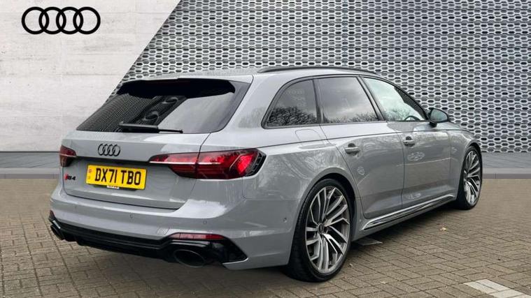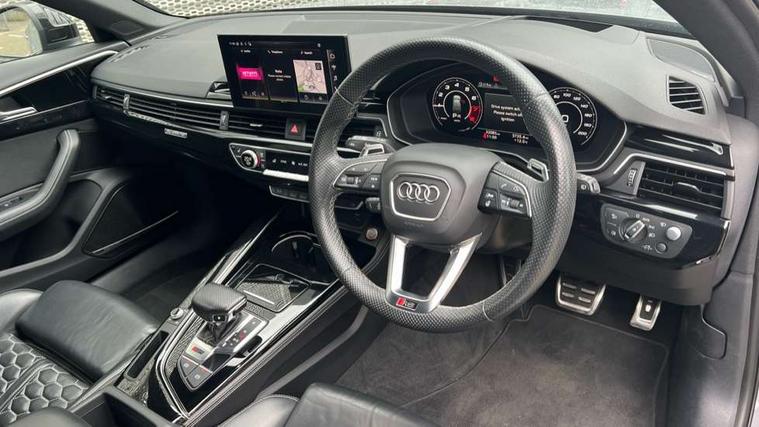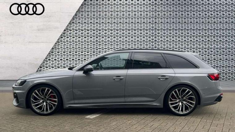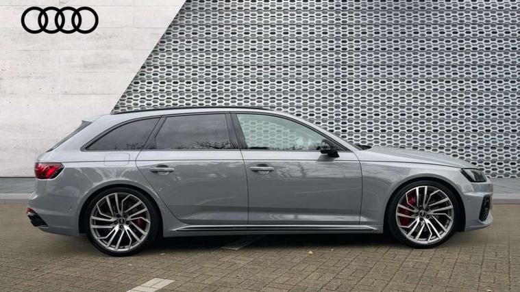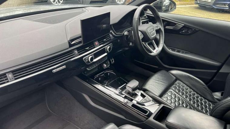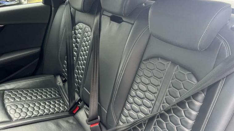 360 degree camera, 7" Colour driver information system, Advanced key with electric hands free boot opening system, Amazon alexa Integration, Audi connect safety and service (e-call), Audi drive select, Audi smartphone interface, Audi virtual cockpit with RS specific display, Automatic start-stop system with coasting functionality and efficiency programme, Bluetooth interface, Dynamic steering, Email, calendar and text messages displayed via MMI, Head up Display, MMI Navigation plus with MMI touch includes 10.1" high resolution colour MMI display, 3D map, Power opening/closing tailgate, Service interval indicator, Voice control system, 58 Litre fuel tank, Increased top speed to 174mph, Quattro sports differential, RS sport suspension plus with dynamic ride control, 2 USB charging ports, Bang + Olufsen 3D sound system, DAB digital radio module, Two additional USB ports for rear passenger in rear centre console, 3rd brake light, Acoustic windscreen, Audi matrix LED headlights with LED rear lights + dynamic front and rear indicators, Audi rings and lettering glossy black, Auto dimming rear view mirror, Automatic headlights + automatic windscreen wipers, Black roof rails, Blue tinted glass, Body colour door handles, Electric front windows, Electric rear windows, Electrically folding auto dimming/adjustable/heated door mirrors with memory function, LED side indicators and kerb view function for passenger side, Flared front and rear wheel arches, Front bumper with enlarged air inlets, Headlight range control, High beam assistant, High gloss black door mirror housing, High gloss black triangular aperture at rear door, Honeycomb design grille with quattro logo, Lateral air inlets next to front headlights, LED daytime running lights, LED indicators in door mirrors, Panoramic glass sunroof, Privacy glass with rear acoustic glazing, Rain and light sensors, Rear side wing doors, Rear wiper, Roof spoiler, RS 4 badges on grille, the front wing panels and rear, RS sport exhaust system, RS4 dual branch chrome tailpipes with left and right oval pipes, Side sill extensions in body colour with high gloss black inserts, Towbar preparation, 3 seat bench in 2nd row, 3 spoke multifunction plus leather steering wheel with heating and RS badging, 40/20/40 split folding rear seats with rear centre armrest, Black cloth headlining, Deluxe 3 zone electronic climate control, Electric load area cover, Electrically adjustable front seats, Fine nappa leather with contrast honey comb stitching + super sports seats with pneumatic massage function, Front centre armrest, Front headrests, Front/rear floor mats, Heated front and outer rear seats, Height and reach adjustable steering wheel with full size airbag, Illuminated door sill trims with RS4 logo, ISOFIX child seat mounting and top tether, Leather door armrests and knee pad, Luggage compartment carpet, Rear headrests, Retractable load area cover, RS Specific perforated leather gear lever knob with contrast stitching, Single front passenger seat, Stainless steel pedals, Sunvisors with vanity mirrors, Black styling pack - RS4, Driver assistance pack - RS4, Extended LED Interior multi-coloured lighting pack - RS4, Non Smokers pack, Parking assistance advanced pack - RS4, 3 point seatbelts on all rear seats, Adaptive driver and front passenger airbags, Electromechanical parking brake, Electronic stabilisation control including ABS, ASR and EDL, Enhanced braking system, Front head airbags, Front seatbelt pretensioners + load limiters, Front side airbags, Hill hold assist, Manual child lock in rear doors, Multi-Collision braking, Pop-up bonnet for pedestrian protection, Pre sense city, Rear side airbags, Seatbelt monitoring, Traction control, Tyre pressure warning, Variable restraint system, Warning triangle and first aid kit, Anti theft alarm, Anti-theft wheel bolts, Immobiliser, Keyless Go, Remote central locking, Remote control key with RS emblem, Piano black finish inlay, 20" 5 segment spoke evo design matt titanium sport alloy wheels with high sheen finish, Tool kit, Tyre repair kit,