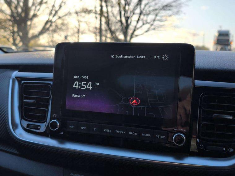 4.2" supervision colour cluster display, 8" touchscreen navigation, Apple car play/Android Auto with voice control, Blind spot collision avoidance assist, Blind spot collision warning, Drive mode selector, Electric power steering, Emergency call service, Emergency stop signalling system, External temperature display, Forward Collision-Avoidance Assist (FCA) - City/Pedestrian/Cyclist/Junction, Front parking sensors, Intelligent speed limit assist, Intelligent speed limit warning, Lane follow assist, Lane keeping assist system (LKAS), Driver attention warning (DAW) and High beam assist (HBA), Rear parking sensor, Reversing camera system, Smart cruise control with stop and go functionality, Speed limiter, Trip computer, Intelligent Stop and Go, Audio system with 6 speakers, Bluetooth with music streaming, Front USB port, Steering wheel mounted controls, All round electric windows with drivers auto up/down function, Auto dimming rear view mirror, Automatic defog system, Automatic headlights control, Black rear roof spoiler with high mounted LED braking light, Black side sill, door garnish and wheel arch trims, Black/body colour bumpers, Body coloured exterior door handles, Chrome side window trim, Electrically adjustable/heated/folding door mirrors with LED indicators, Front and rear silver skid plates, Gloss black door mirrors with matt black lower housing, GT-Line body kit, Headlight levelling device, Heated rear window, High gloss black radiator grille, LED Bi-function projection headlights with static bending, LED daytime running lights, LED front fog lights, LED position light, LED rear combination lights, Privacy glass - Rear windows and tailgate, Rain sensing front wipers, Rear fog lights, Rear side wing doors, Rear wash/wipe, Roof rails, Shark fin antenna, Solar windshield glass, Speed variable front wipers, Tinted glass, Welcome and follow-me home light functionality, Windscreen Washer Level Warning, 12V power point front, 3 seat bench in 2nd row, 60/40 split folding rear seat, Air filter, All-round height adjustable headrests, Alloy pedals, Aluminium pedals, Automatic air conditioning, Centre armrest storage box, Centre console with cupholders, Cloth and artificial leather upholstery, D-Cut perforated leather trimmed steering wheel, Dash illumination dimmer switch, Driver's seat height adjuster, Front and centre cabin lights, Front and rear door map pockets with bottle holder, Front and rear door storage, Gear shift indicator, Glovebox illumination, GT-Line Interior Styling, Heated front seats, Heated steering wheel, ISOFIX Child seat top tethers and anchor fixings outer rear seats, Leather trimmed gearshift, Luggage area light, Luggage area parcel shelf, Luggage net with hooks, Overhead console lamp, Overhead console with sunglasses cases, Passenger front seatback pockets, Passenger seat height adjuster, Rear USB charging port, Satin chrome interior door handles, Single front passenger seat, Sunvisors with vanity mirror illumination (Driver and front passenger), Tilt/telescopic adjustable steering wheel, ABS with Electronic Brakeforce Distribution (EBD) and Brake Assist System (BAS), All round 3-point seatbelts, Electronic stability control (ESC) and vehicle stability management (VSM), Front passenger airbag cut-off switch, Front seatbelt pretensioners + load limiters, Height adjustable front seatbelts, Hill start assist control (HAC), Impact sensing auto door unlocking, Manual child lock in rear doors, Rear airbags, Rear seat Occupancy alert, Seatbelt reminder warning, Twin curtain airbags, Twin front airbags, Twin front side airbags, Tyre pressure monitoring system, Alarm system, Customisable automatic door unlocking, Door deadlocks, Engine immobiliser, Locking wheel nuts, Smart key with engine start/stop button, Speed sensitive auto door locking, Visible vehicle identification number, High gloss black centre fascia, 17" GT-Line alloy wheels, Tyre mobility kit,