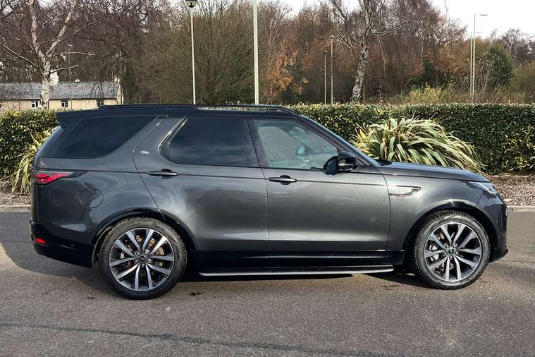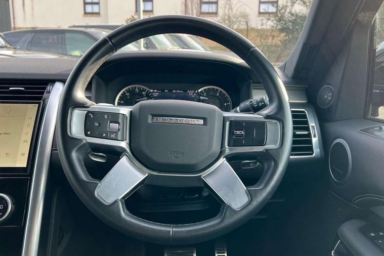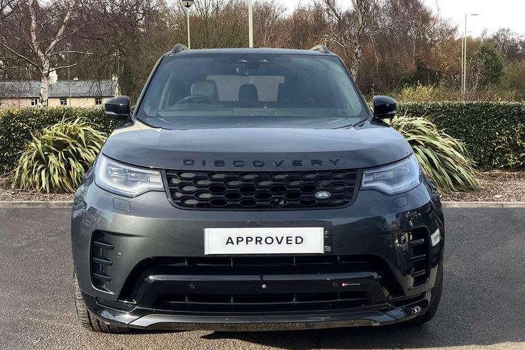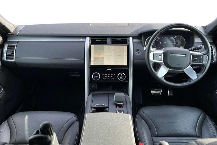 11.4" touchscreen, 3D surround camera, Adaptive cruise control, Android Auto, Apple car play, Blind spot assist, Driver condition monitor, Electric power assisted steering (EPAS), Emergency services call system, Front and rear parking aid, Lane keep assist, Power inner tailgate, Push button start, Rear collision monitor, Rear traffic monitor, Remote, Remote boot release, Service interval indicator, Speed proportional steering, Sportshift selector, Stop/start system, Traffic sign recognition with adaptive speed limiter, Trip computer, Wade Sensing, Adaptive dynamics, Dynamic stability control, Electronic air suspension, Front axle open differential, Digital Audio Broadcast radio-DAB, Dynamic volume control, Pivi pro connected, USB/aux input socket, Acoustic laminated windscreen, Animated directional indicators, Auto dimming interior rear view mirror, Automatic headlight levelling, Automatic headlights, Body colour bumpers, Body colour door handles, Centre high mounted stop light, D300 badge, Electric heated/power fold memory door mirrors with approach lights and auto dimming driver side, Electric windows with one touch open/close and anti-trap, Heated rear window, Heated windscreen, LED darkend tail lights, Metal treadplates with R-Dynamic branding, Narvik black Discovery script, Privacy glass, Puddle lights, Rain sensing windscreen wipers, Rear fog lights, Rear side wing doors, Rear wash/wipe, Trailer stability assist, Variable intermittent wiper, 12V power sockets, 12V USB charging socket in loadspace, 2 seat bench in 3rd row, 3 seat bench in 2nd row, Central hinged twin lidded storage, Ebony morzine headlining, First and second row door bins, Footwell lights, Front and rear 12V with front USB, Front passenger seat isofix location point, In-facia storage, Isofix child seat preparation for front passenger seat, Loadspace cover, Loadspace Hook, Loadspace light, Lockable glovebox, Lower centre console storage, Luggage tie downs in loadspace, Multi function steering wheel, Overhead lighting console, Premium carpet mats, Rear ISOFIX, Shopping bag hook, Single front passenger seat, Storage glovebox, Sunvisors with illuminated vanity mirrors, Third row storage, Twin front cupholders with cover, USB with 12V socket in centre console, Online pack with data plan - Discovery, R-Dynamic black exterior pack - Discovery, 3x3 point rear seatbelts, Anti-lock braking system (ABS), Brake pre-fill technology, Cornering brake control, Curtain airbags, Customer configurable autolock, Driver and passenger airbags, EBD - Electronic brakeforce distribution, Electronic traction control, Emergency brake assist, Emergency braking, ESP, Front side airbags, Gradient acceleration control, Hill descent control, Hill launch assist, Power operated child locks, Rear airbags, Roll stability control, Seat belt reminder, Torque vectoring brake, Tyre pressure monitoring system, Immobiliser, Intrusion sensor, Keyless entry, Locking wheel nuts, Remote central locking, All terrain tyres,