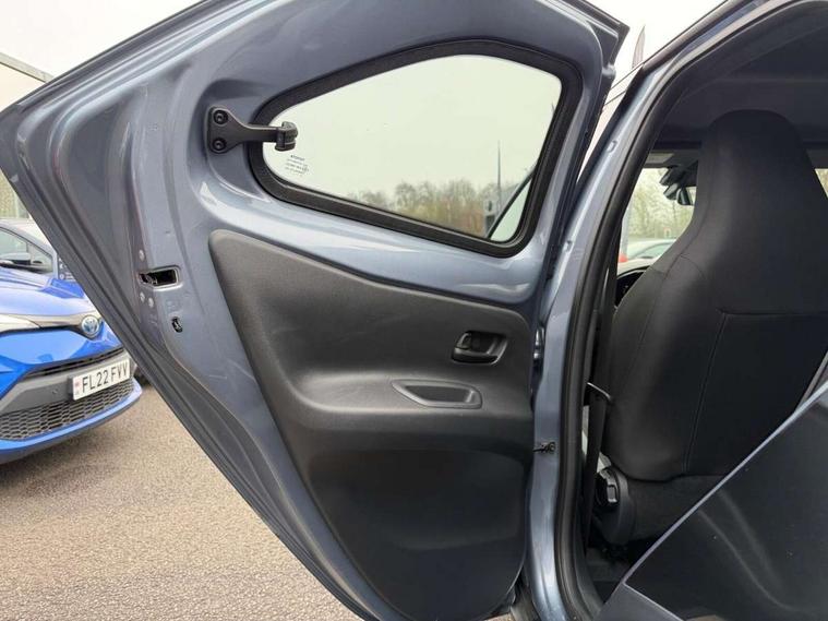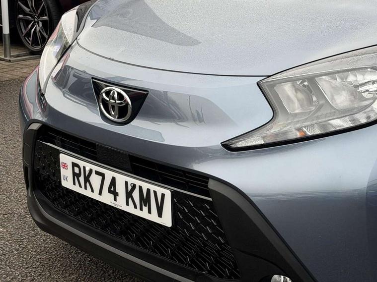 4.2" TFT colour screen, Adjustable speed limiter, Analogue speedometer, Bluetooth connectivity, Digital tachograph, Driver attention alert system, eCall emergency call system, ECO-driving indicator, Electric power steering, Intersection turn assist, Key reminder warning, Noise reduction kit, Pre collision system with emergency steering assist, Reversing camera with static guide lines, Smart phone integration with Apple car play/Android Auto, Speed limit display, Start and stop, Vehicle Stability Control (VSC), 4 speakers, 9" HD multimedia display touch screen with Toyota smart connect, DAB digital audio broadcast, USB connector, Auto headlights, Auto wipers, Automatic headlights cut-off, Bicycle towing hook, Black contrast roof, Black side protection mouldings, Black wheel arch mouldings, Body colour door handles, Body coloured front bumper, Boot door scuff plate, Eclipse black rear bumper, Electric heated door mirrors, Follow me home headlights, Front fog lights, Front power windows, Gloss black door mirrors, Gloss black upper front grille, Headlight cut-off reminder, LED daytime running lights, LED front light guide, LED High mounted stop lamp, Manual day/night rear view mirror, Manual headlight levelling, Pagoda roof, Power adjustable door mirrors, Power back door, Privacy glass, Projector halogen headlights, Rain sensor, Rear combination lights LED bulb type, Rear side wing doors, Rear windscreen defogger, Rear windscreen wiper, Short antenna, Variable intermittent windscreen wipers, 12v power outlet - front, 2 seat bench in 2nd row, 3 spoke leather steering wheel, 50/50 split folding rear seat, Adhesive roof headlining, Adjustable speed limiter switch on steering wheel, Audio and telephone switches on steering wheel, Auto air conditioning, Black insert on steering wheel, Black roof lining, Boot light, Centre room light, Chrome interior door handles, Chrome surround on air conditioning buttons, Clean air filter, Console box storage in body color, Fabric upholstery, Floor mats, Front and rear cup holders, Front head rest deco art, Front head restraints, Gear shift indicator, Height adjustable driver seat, Intelligent adaptive cruise control switch on steering wheel, ISOFIX child restraint system on rear seats, Lane departure alert switch on steering wheel, Leather gearshift knob, Manual tilt steering wheel, Manually reclining and sliding driver seat, Manually reclining and sliding front passenger seat, Multimedia switches on steering wheel, Pollen filter, Rear door pockets, Rear head restraints, Satin silver insert on gear shift knob, Single compartment glovebox with lights, Single front passenger seat, Soft tonneau cover, Sun visors with mirror on driver and passenger side, Voice recognition switch on steering wheel, Toyota safety sense pack - Aygo X, Anti lock braking system + Electronic brake force distribution, Child safety door lock, Emergency brake light signal (EBS), Hill start assist control (HAC), Passenger airbag on/off switch, Seat belt reminder for front and rear seats, Supplement restraints system (SRS) - 6 airbags, Traction control, Tyre pressure warning system, Immobiliser, Remote power door locks, Black wheel centre caps, Tyre repair kit,