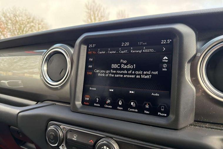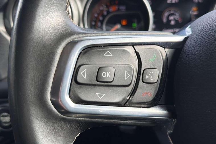 Active speed limiting device, Apple car play/Android Auto, Emergency response assistance system, Exterior temperature gauge, Instrument cluster with 7" colour TFT Display, Parksense rear park assist system, Parkview rear backup camera, Power Steering, Trip computer, Uconnect 8.4" with navigation with DAB+ Radio, Uconnect live - Europe, Vehicle information centre, Alpine premium audio system with subwoofer + 9 speakers, Steering wheel mounted audio controls, USB port, Auto dimming rear view mirror, Automatic headlights, Black door mirrors, Body colour fender flares, Body colour front grille, Daytime running lamp system, Deep tint sunscreen glass, Headlamp levelling, Headlamp off time delay, LED fog lights, LED tail lamp, Power adjustable heated door mirrors, Power front windows with one touch, Premium LED headlamps, Tow hooks, Tubular side steps, Windshield wipers with intermittent and variable, 12V auxiliary power outlet in centre console, 12V auxiliary power outlet in rear, 2 way manual adjustable drivers lumbar support, 4 way manually adjustable passenger seat with height, reach, tilt, backrest and headrest, 6 way manually adjustable drivers seat, 60/40 split folding rear seat, Cargo compartment floor mat, Centre console storage, Climate control, Cloth upholstery with bucket seats + jeep logo, Front centre armrest, Front headrests, Illuminated front cupholders, Isofix child seat preparation, Leather wrapped steering wheel with shift knob, LED ambient lighting, Lockable glovebox, Rear compartment storage system, Rear headrests, Rear luggage cover, Reclining front seats, Storage nets, Storage trays, Sunvisors with illuminated vanity mirrors, Tilt adjustable steering column, 3x3 point rear seatbelts, ABS, Driver / front passenger multi stage airbags, Electronic stability control, Front side airbags, Hill descent control, Hill start assist, Traction control, Tyre pressure monitoring warning lamp, Keyless entry, Keyless go with 'push to start' button, Locking fuel filler cap, Locking wheel nuts, Premium security alarm, 18" Machine faced diamond alloy wheels with grey spokes, Full size spare wheel, Vinyl spare wheel Cover,